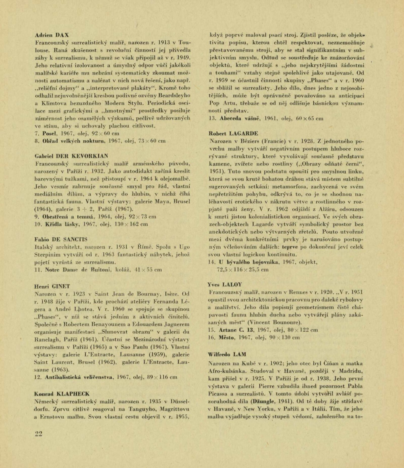 Benoit, Jorge Camacho, Dax, Gabriel Der Kevorkian, Konrad Klapheck, Wifredo Lam, Roberto Matta, Joan Miró, Perentová, Jean-Claude Silbermann, Hervé Télémaque, Terrosian, Toyen