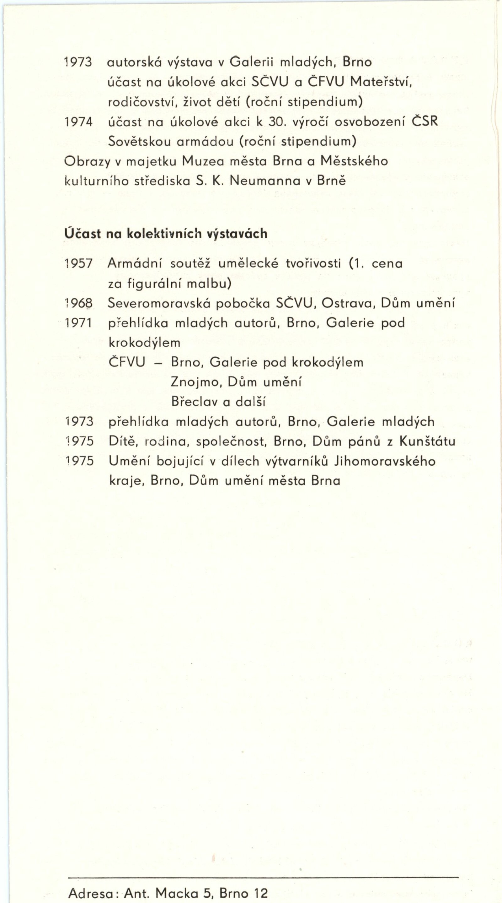 pozvánka, katalog, seznam vystavených děl, recenze v tisku