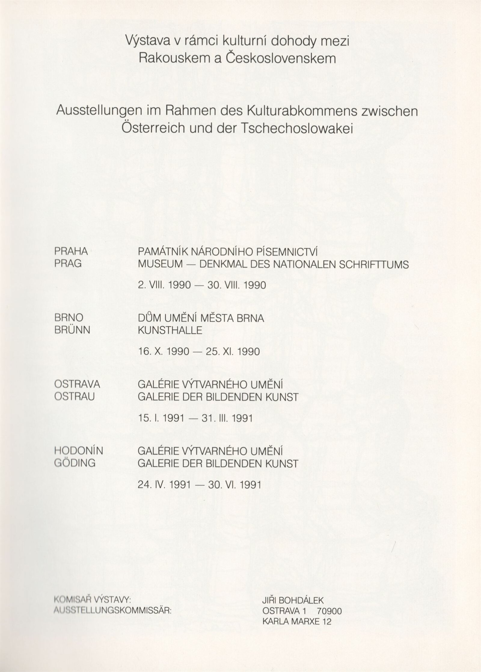 pozvánka, katalog, plakát, podklady a strojopis pro katalog, fotografie výstavy, seznam vystavených děl, pojistný seznam, provozní a institucionální korespondence, objednávky, reverzy, recenze v tisku, pozvánka a katalog převzaté výstavy