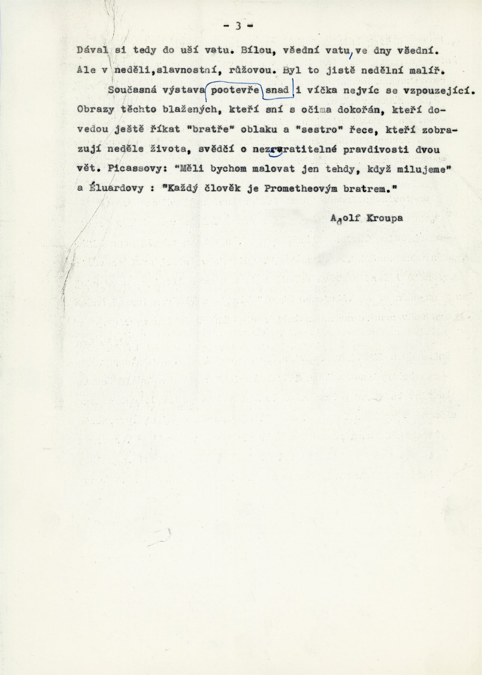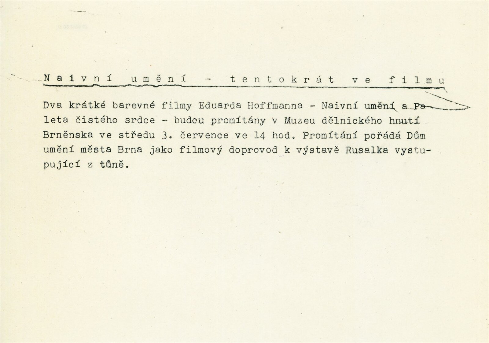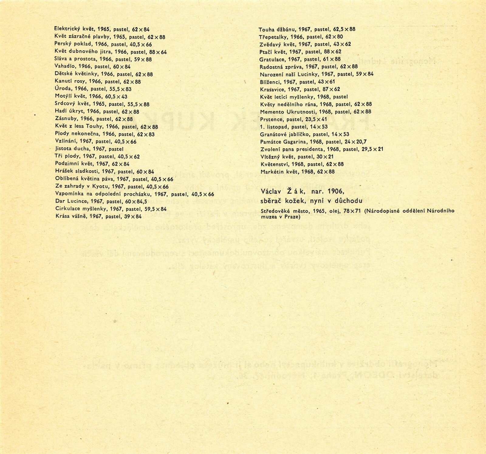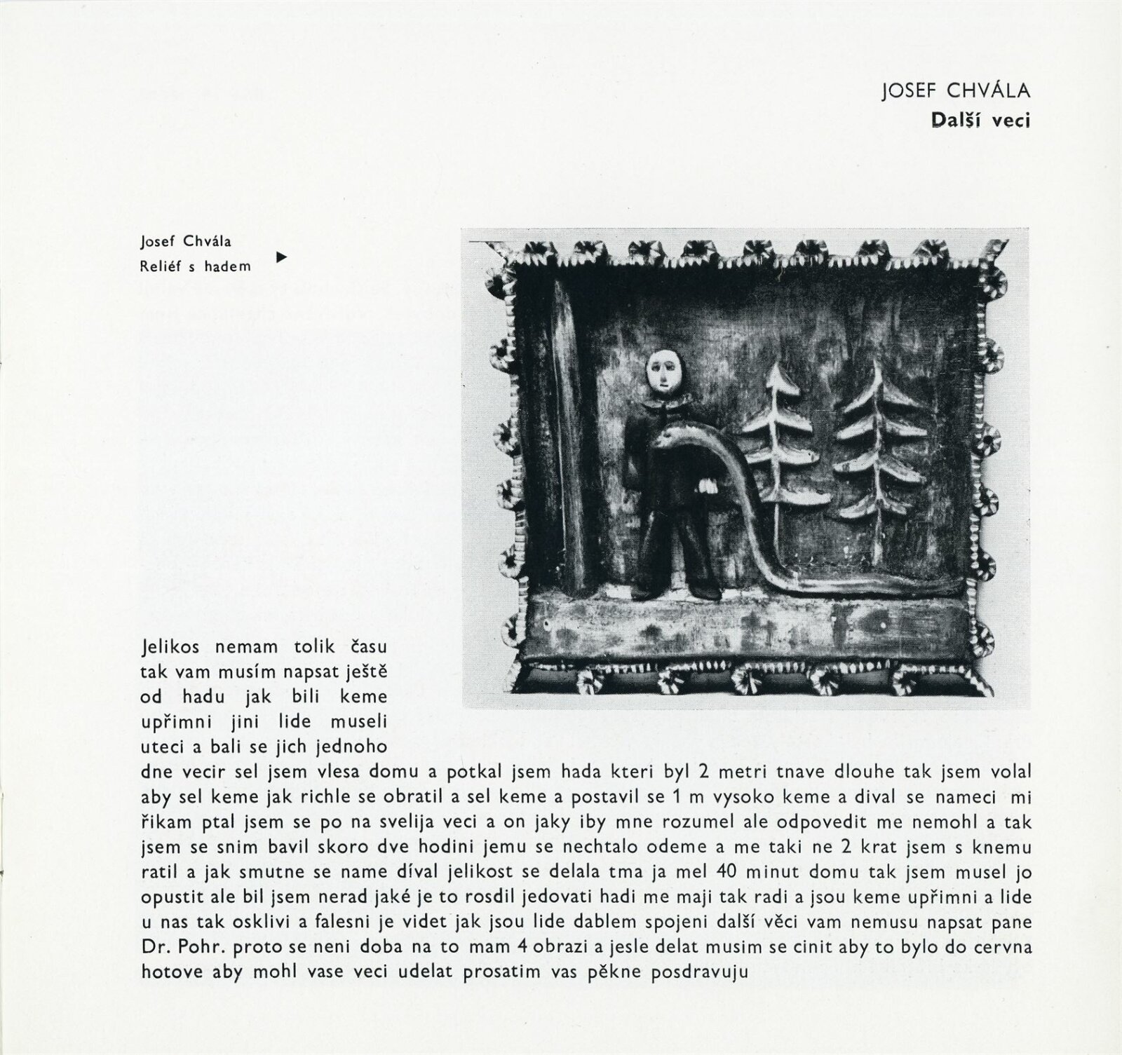 Rusalka vystupující z tůně. Naivní a fantaskní obrazy z Čech a Moravy 1964–1968: Dům umění města Brna, 4. 6. – 28. 7. 1968 / Text: Arsén Pohribný. – Brno: DUmB, 1968. – 34 s., obr., seznam výstav naivního umění 1964–1968, bibliografie od roku 1964, DU 506. – MZK; MG
