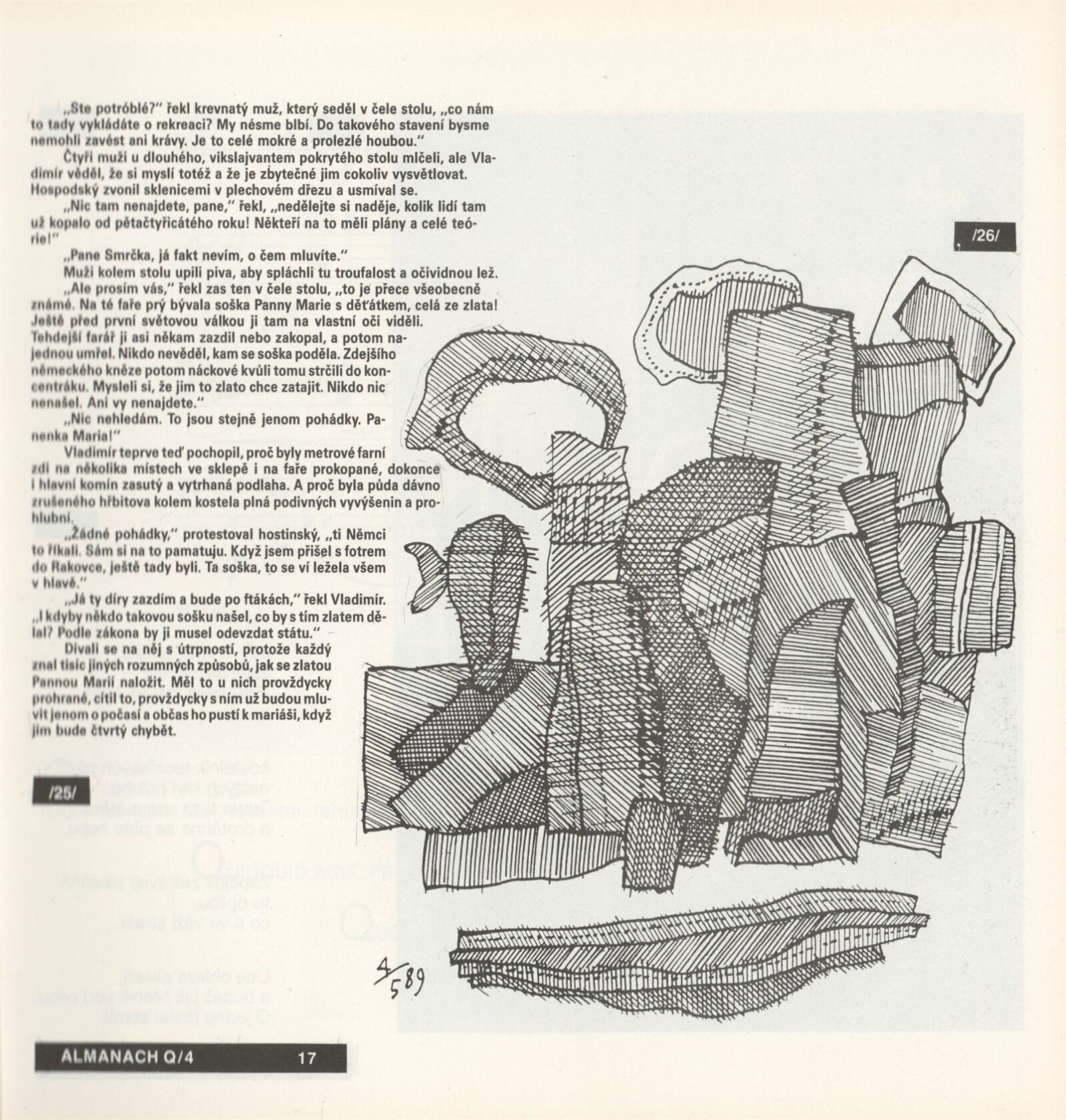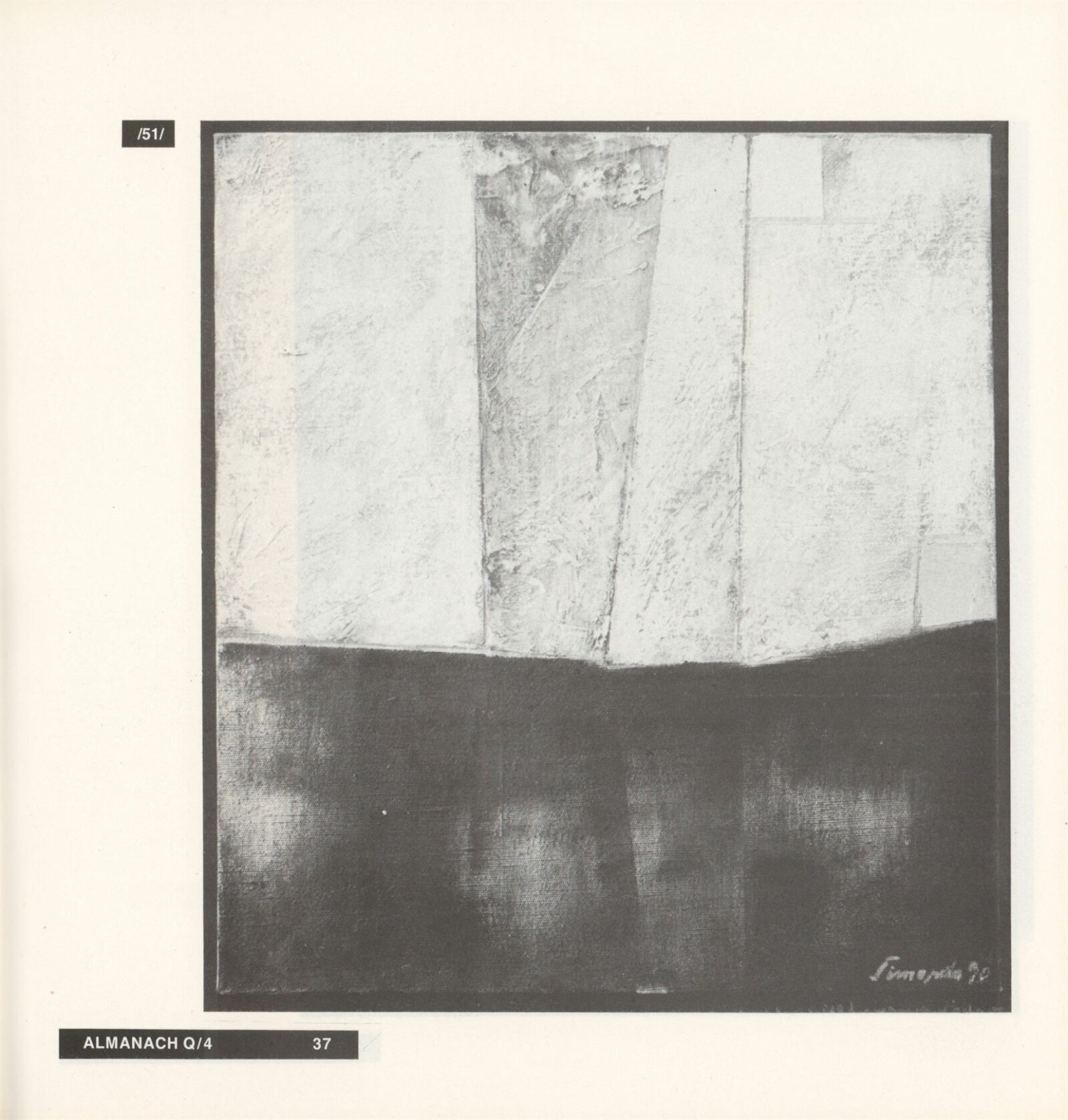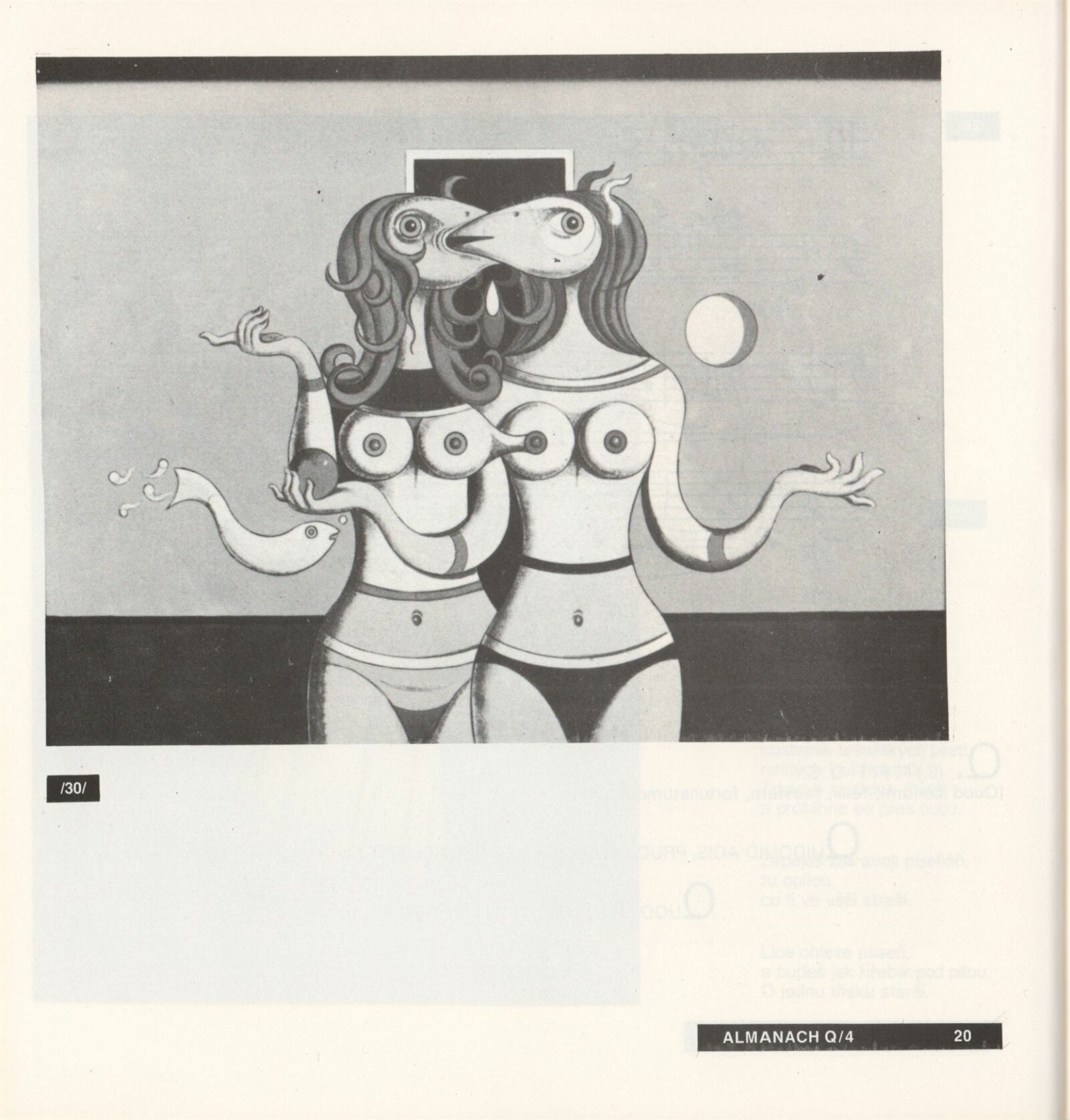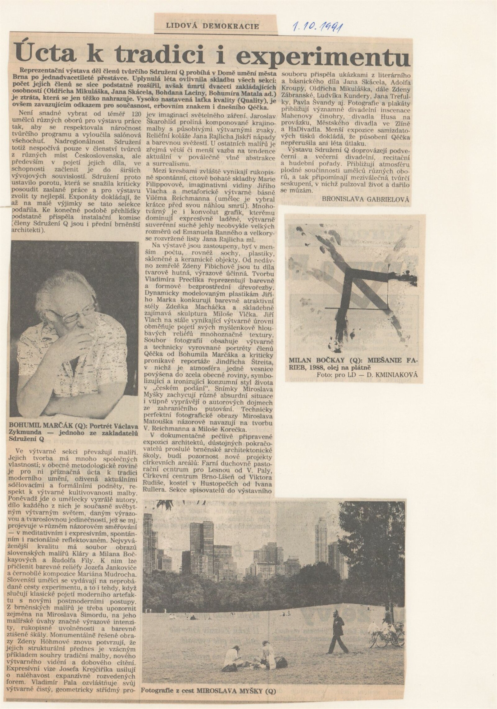 Almanach Q (4). Katalog členské výstavy 1991: Dům umění města Brna, 1. patro, 10. 9. – 13. 10. 1991 / Redakce: Ludvik Kundera, Jan Rajlich, Zdena Zábranská. – Brno: Sdružení Q, 1991. – 48 s., obr., seznam vystavených prací [8] s., DU 909