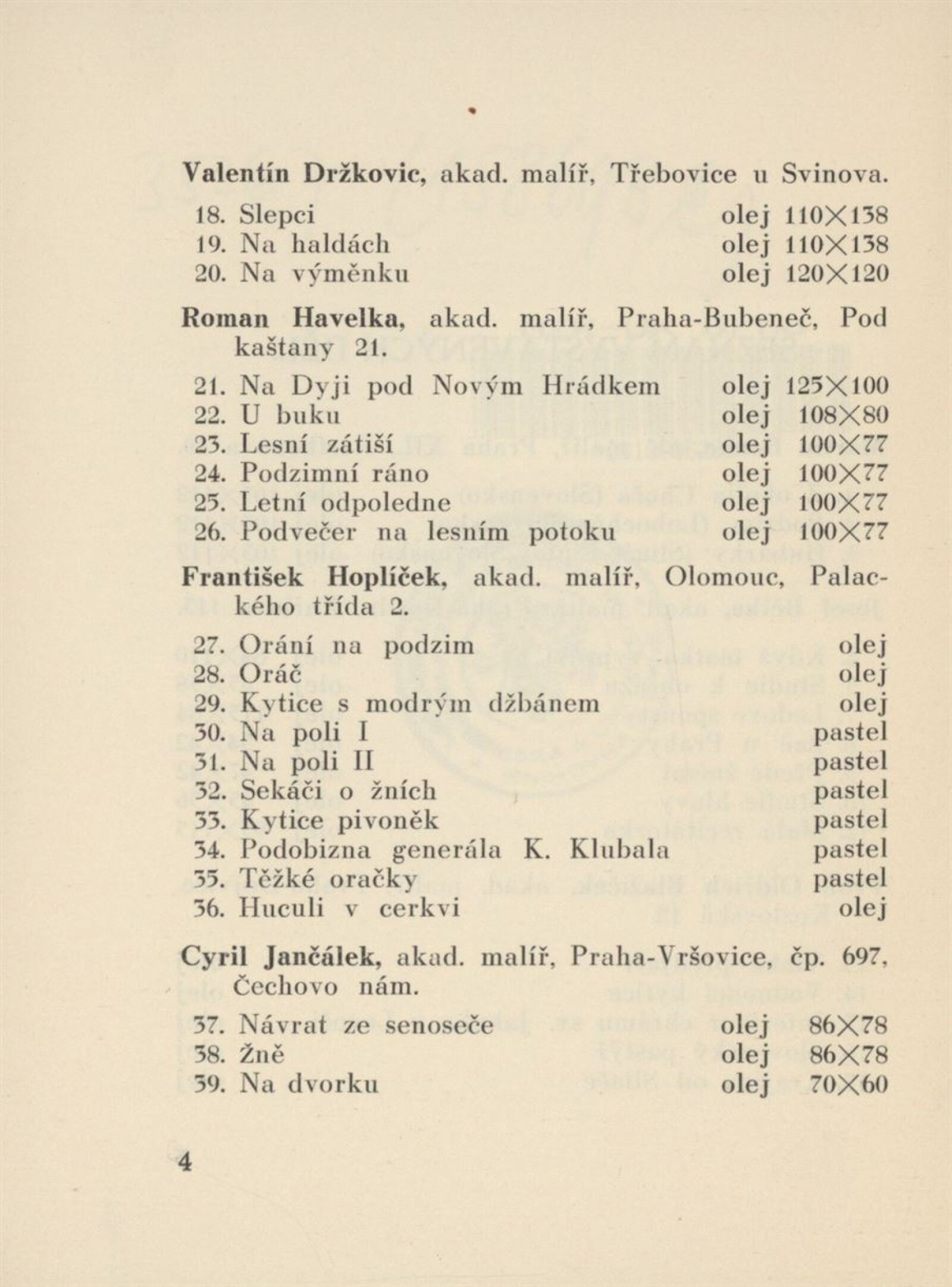 70. výstava Sdružení výtvarných umělců moravských v Hodoníně: v Brně v Domě německých umělců, 22. 5. – 19. 6. 1938. Hodonín: Sdružení výtvarných umělců moravských, 1938. – 12 s. – MZK; MMB