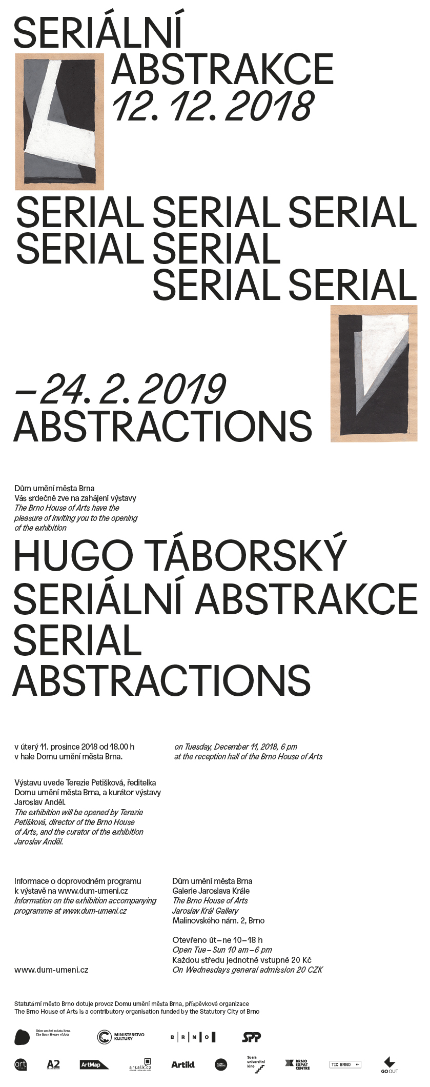 Brno artist Hugo Táborský (1911–1991) is known to culture enthusiasts for his avant-garde photographic work from the 1930s but only a small group of experts are aware of his commissioned works in graphic design avowing the international movement of so-called new or functionalist typography. His free-form painterly work comprising of series of abstract compositions from the first half of the 1930s has remained completely obscure to this day although it is remarkable even in an international context. In terms of Czech art he is closest to the series of gouaches by František Kupka from the same period called Abstractions, which was published as a whole in Prague in 1948, so that it is improbable that Táborský could have known it in the 1930s. The geometrical compositions of Táborský were created in close connection with his study at the School of Arts and Crafts in Brno and his photographic, and particularly graphic compositions, as is proven by a series of works examining compositional alternatives of the geometrical shapes of type which puts them in-between free and utilitarian work. These studies, together with purely abstract compositions, enrich the prevalent image of Czech inter-war art with a so far little represented stylistic position of serial geometrical abstraction.