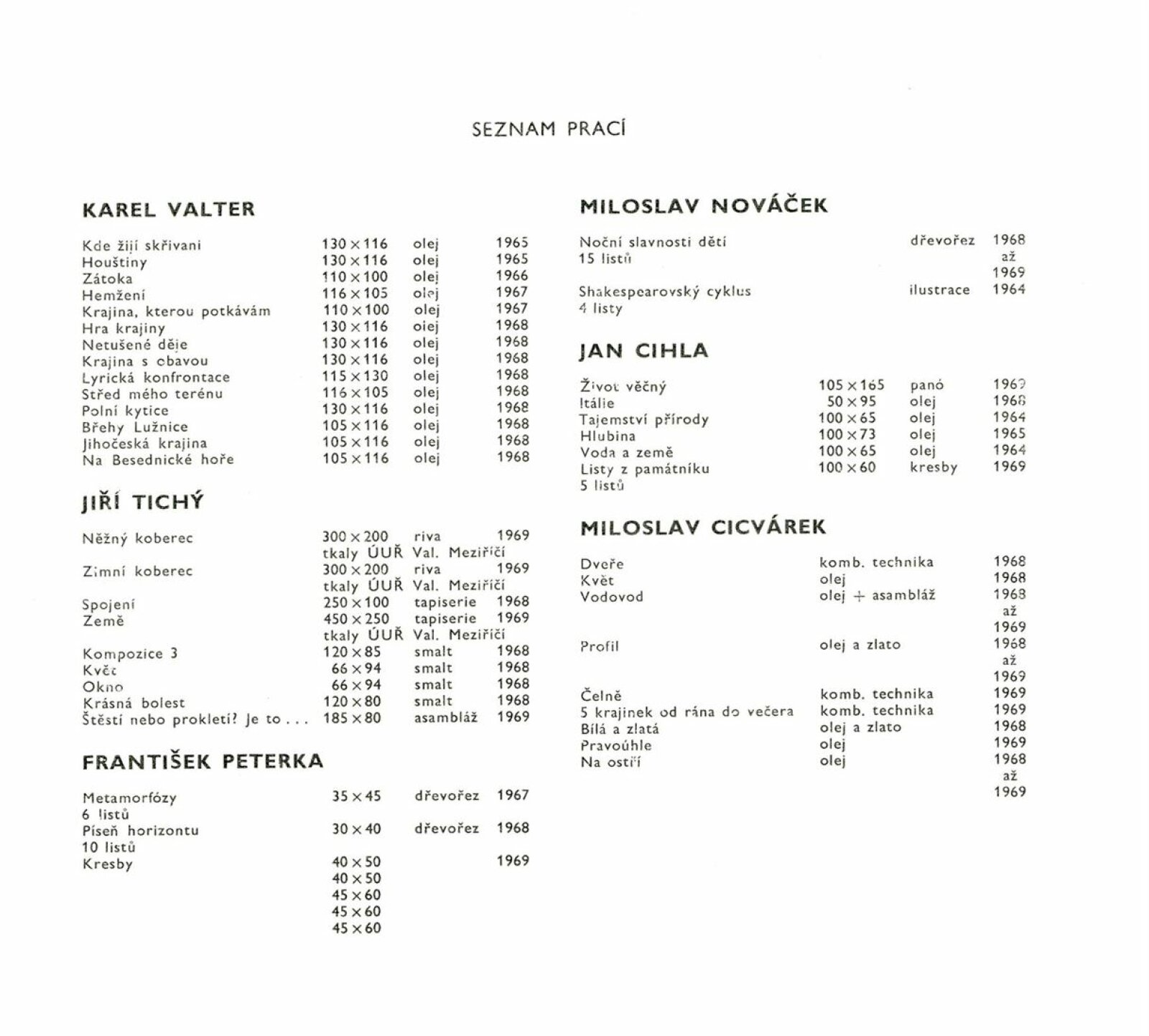 6 výtvarníků z jižních Čech: Dům umění města Brna / Dům pánů z Kunštátu, 11. 1. – 8. 2. 1970 / Text: Jiří Šetlík. – Brno: DUmB, 1970. – 25 s., obr., v obalu, DPK 427. – MZK; MG