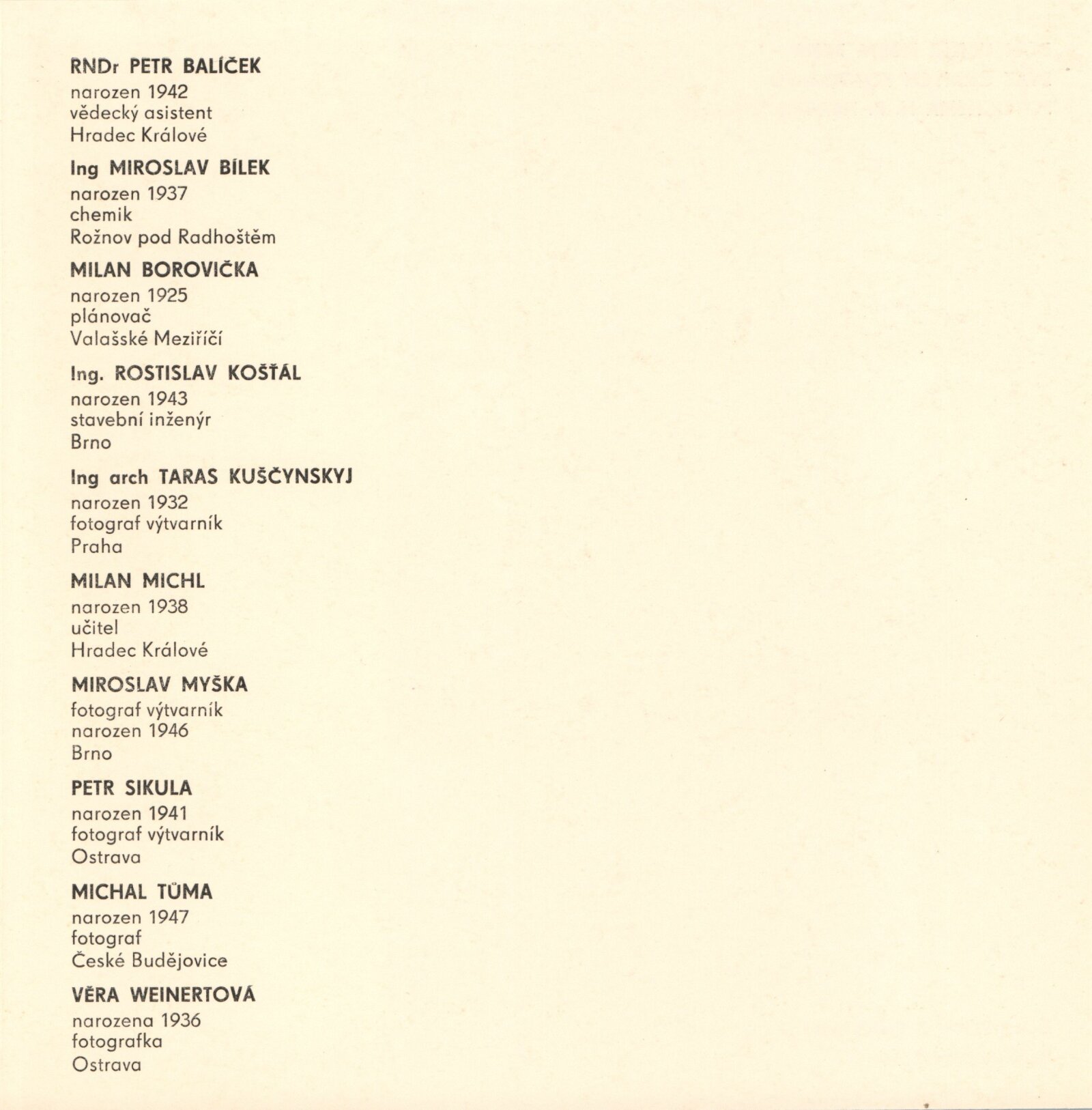 Petr Balíček, Miroslav Bílek, Milan Borovička, Rostislav Košťál, Taras Kuščynskyj, Milan Michl, Miroslav Myška, Petr Sikula, Michal Tůma, Věra Weinertová