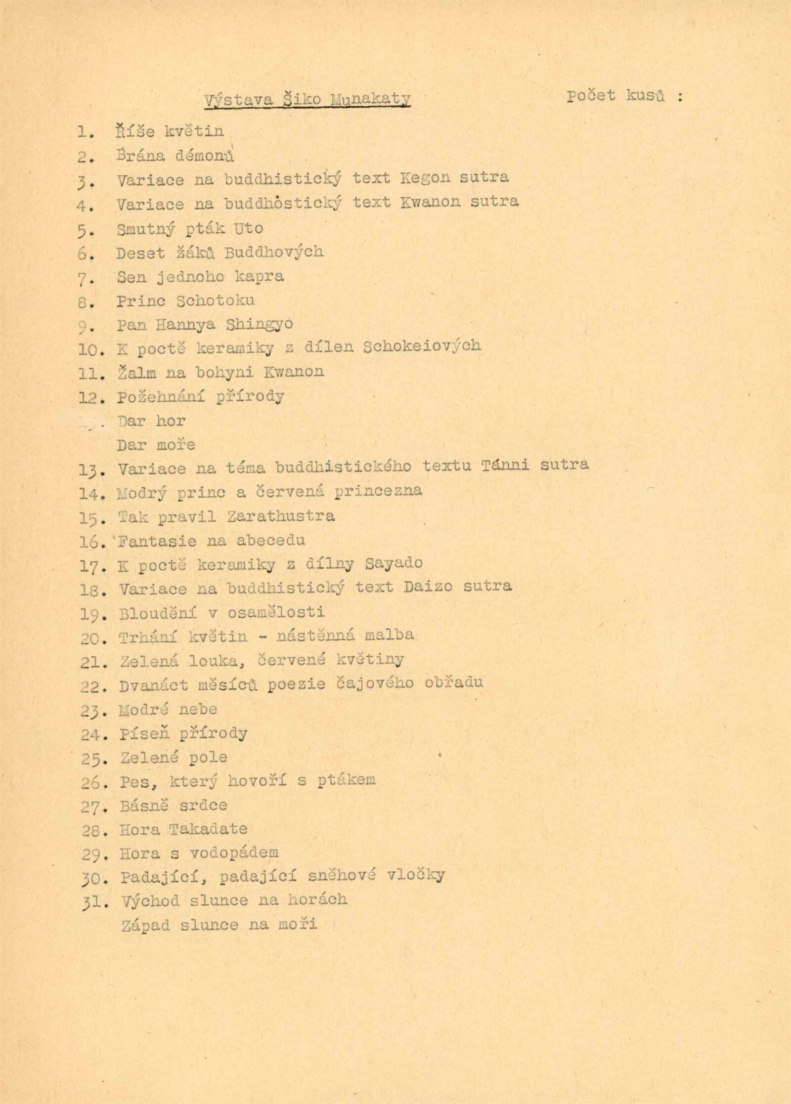 Schiko Munakata: Dům umění města Brna, Malá galerie, 3. 9. – 1. 10. 1961 / Text: Museyoshi Yanagi. – Tokyo: Gesellschaft für Internationale Kulturbeziehungen. – složený list, obr., DU 402. – MG