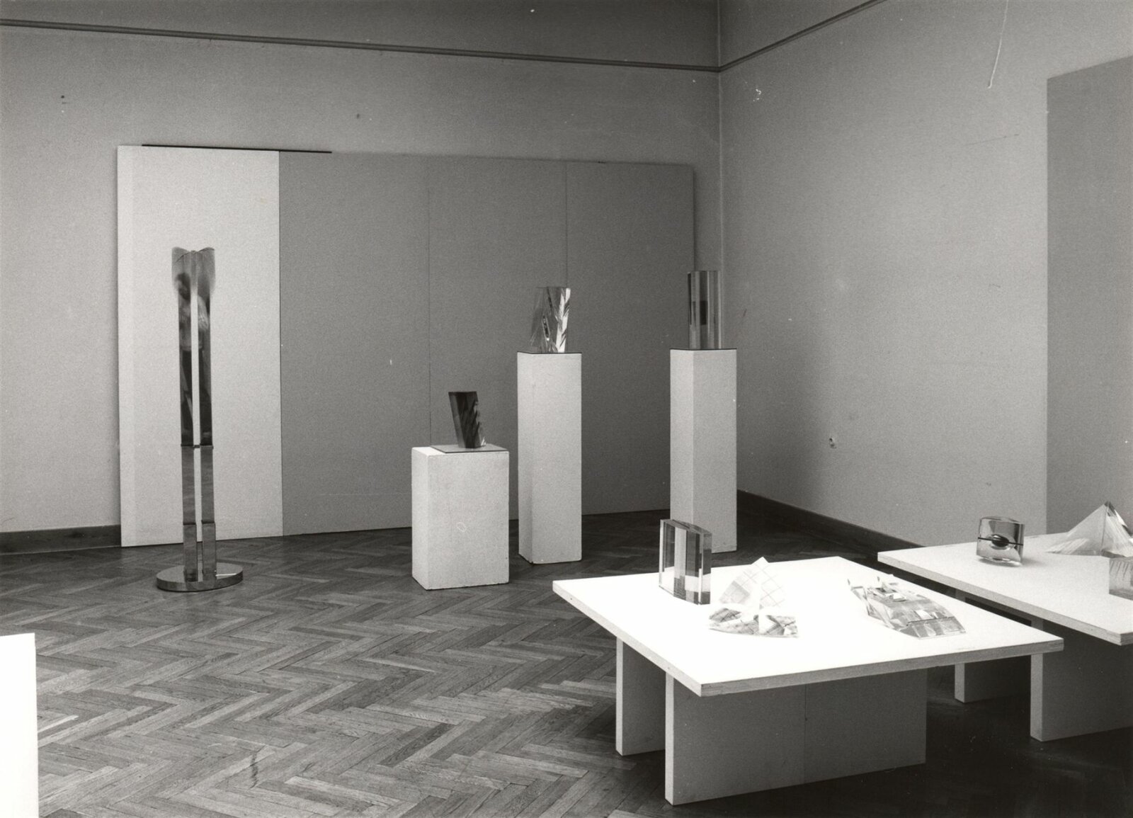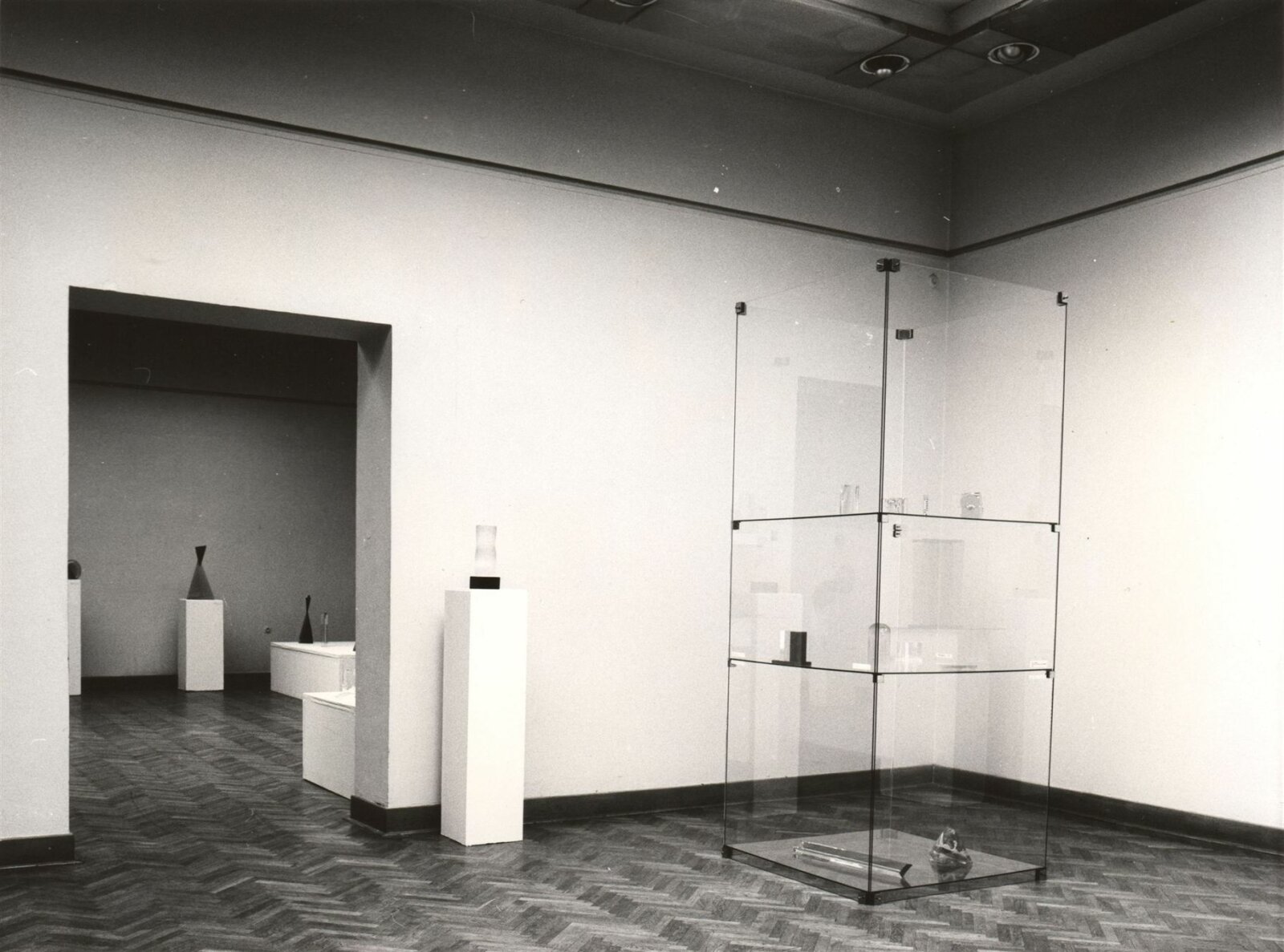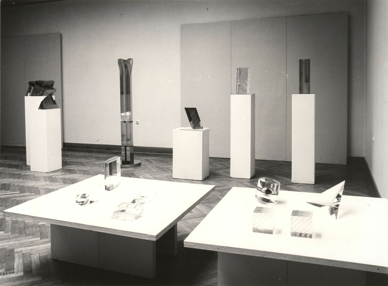 pozvánka, katalog, úvodní slovo, zpráva o výstavě - Jiřina Hockeová, text J. Drahoňovského z r. 1936 (Č, A, R), seznam autorů, texty pro katalog - strojopis, popisky k fotografiím v katalogu, fotografie vystavených děl pro katalog, fotografie výstavy a z vernisáže, seznam vystavených děl (několik variant), pojistný seznam, provozní korespondence, potvrzení o převzetí od jednotlivých autorů, jejich plné moci a zápůjčky, adresy zahraničních zájemců, žádost o povolení výstavy, recenze v tisku, katalog k výstavě Současná československá skleněná plastika v OG v Trenčíně (1987), časopis Glasrevue (1987)