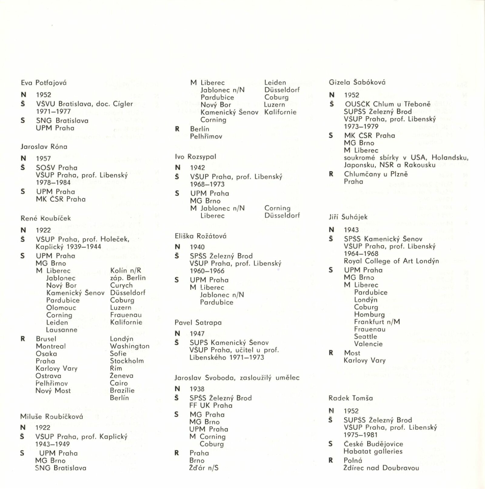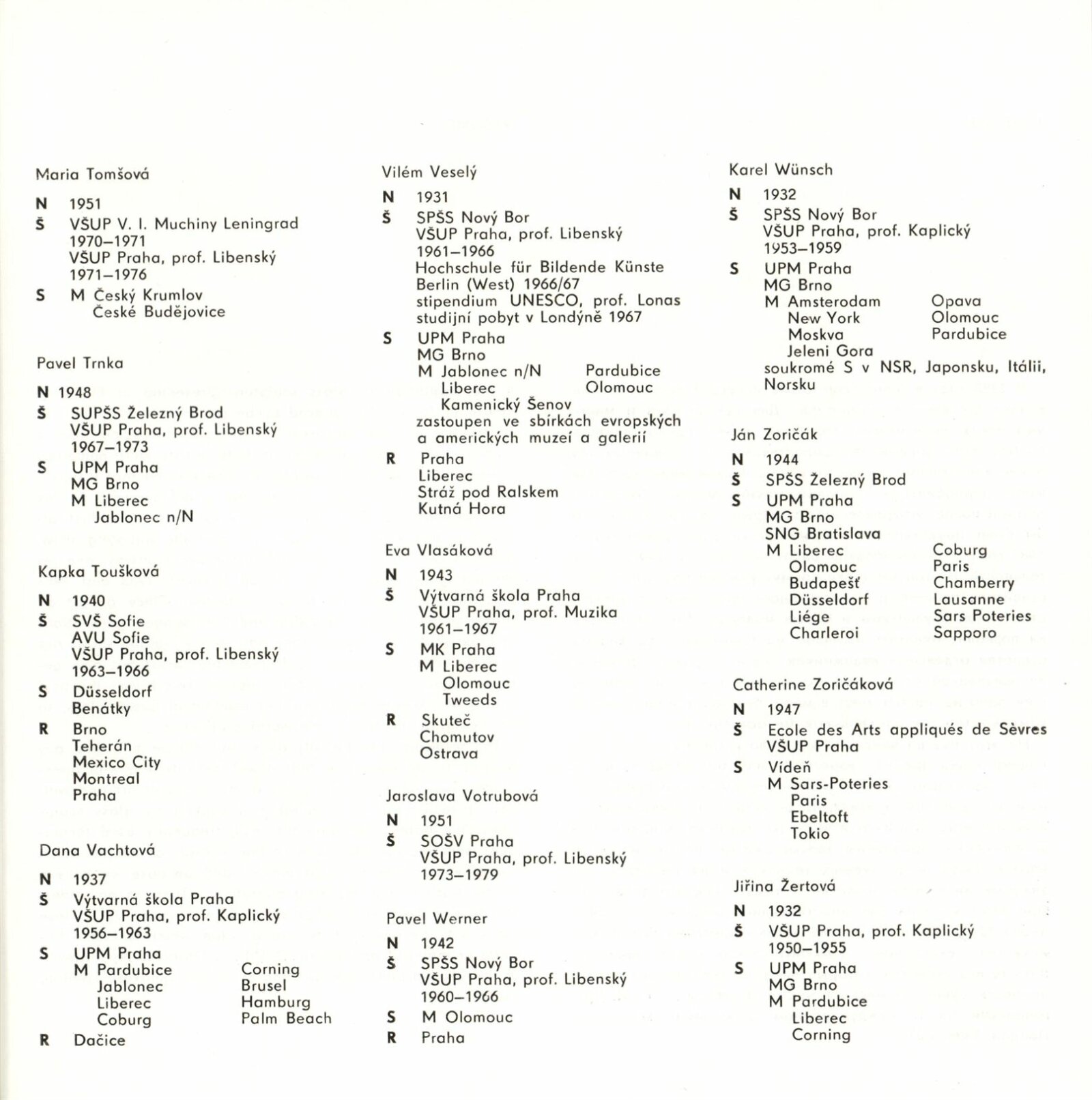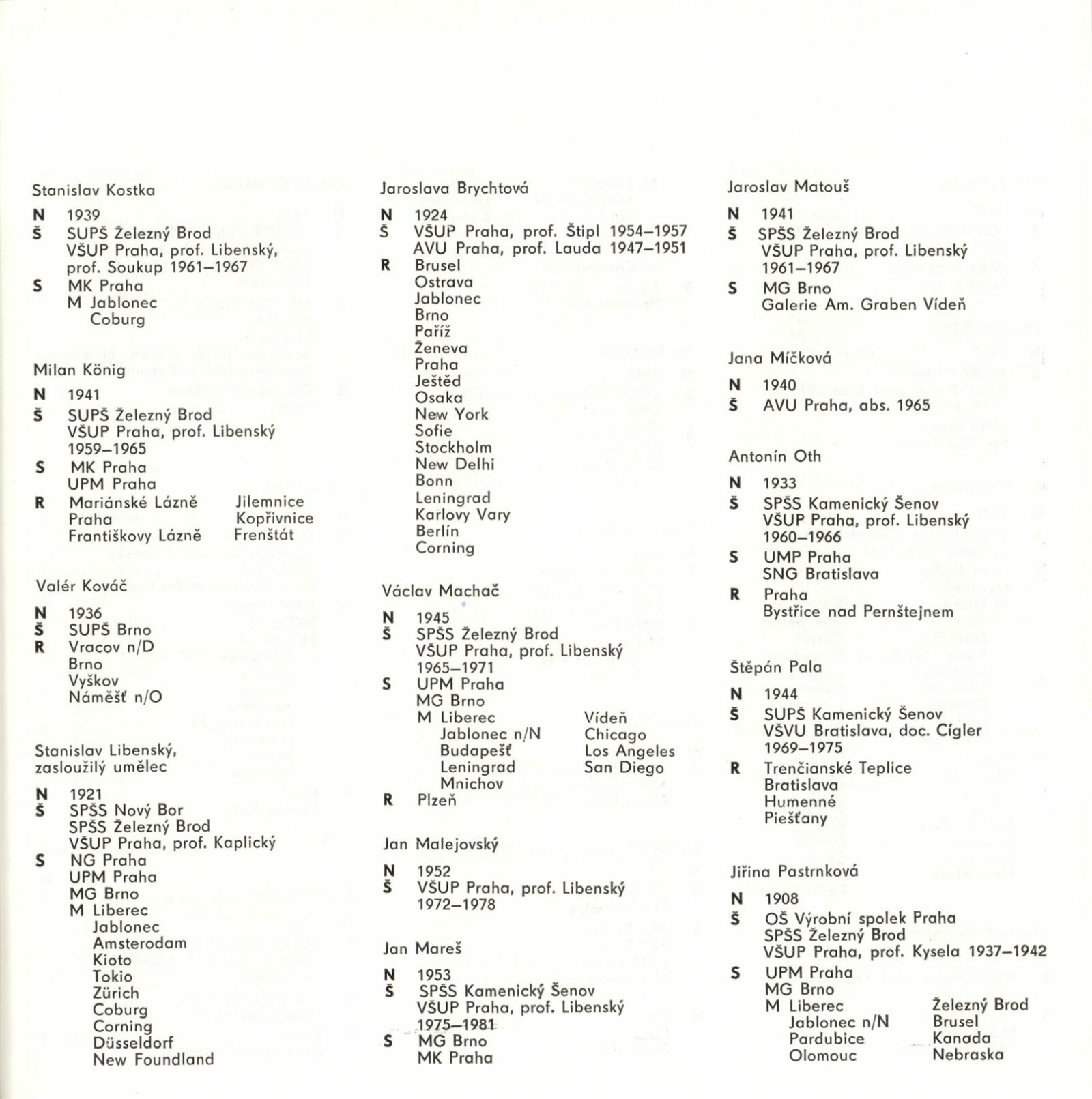 Blanka Adensamová, Ilja Bílek, Jaroslava Brychtová, Václav Cígler, Bohumil Čabla, Antonín Drobník, Bohumil Eliáš, Jan Exnar, Jan Fišar, Jitka Forejtová, Stanislava Grebeníčková, Miland Handl, Václav Hanuš, Jiří Harcuba, Jan Hladký, Pavel Hlava, Stanislav Honzík, Ivana Houserová, František Janák, Antonie Jankovcová, Jiřina Jechová, Vladimír Jelínek, Jiří Jetmar, Pavel Ježek, Jiří Karel, Olga Keithová, Vladimír Klein, Josefa Kochrda, Vladimír Kopecký, Stanislav Kostka, Milan König, Valér Kováč, Stanislav Libenský, Oldřich Lípa, Václav Machač, Jan Malejovský, Jan Mareš, Jaroslav Matouš, Jana Míčková, Petr Novotný, Antonín Oth, Štěpán Pala, Zora Palová, Jiřina Pastrnková, Oldřich Plíva, Eva Potfajová, Jaroslav Róna, René Roubíček, Miluše Roubíčková, Ivo Rozsypal, Eliška Rožátová, Pavel Satrapa, Jaroslav Svoboda, Gizela Šabóková, Markéta Šílená, Jaroslava Švarcová, Jiří Šuhájek, Dalibor Tichý, Radek Tomša, Maria Tomšová, Pavel Trnka, Kapka Toušková, Dana Vachtová, Vilém Veselý, Eva Vlasáková, Antonín Votruba, Jaroslava Votrubová, Pavel Werner, Karel Wünsch, Jan Zoričák, Catherine Zoričáková, Jiřina Žertová