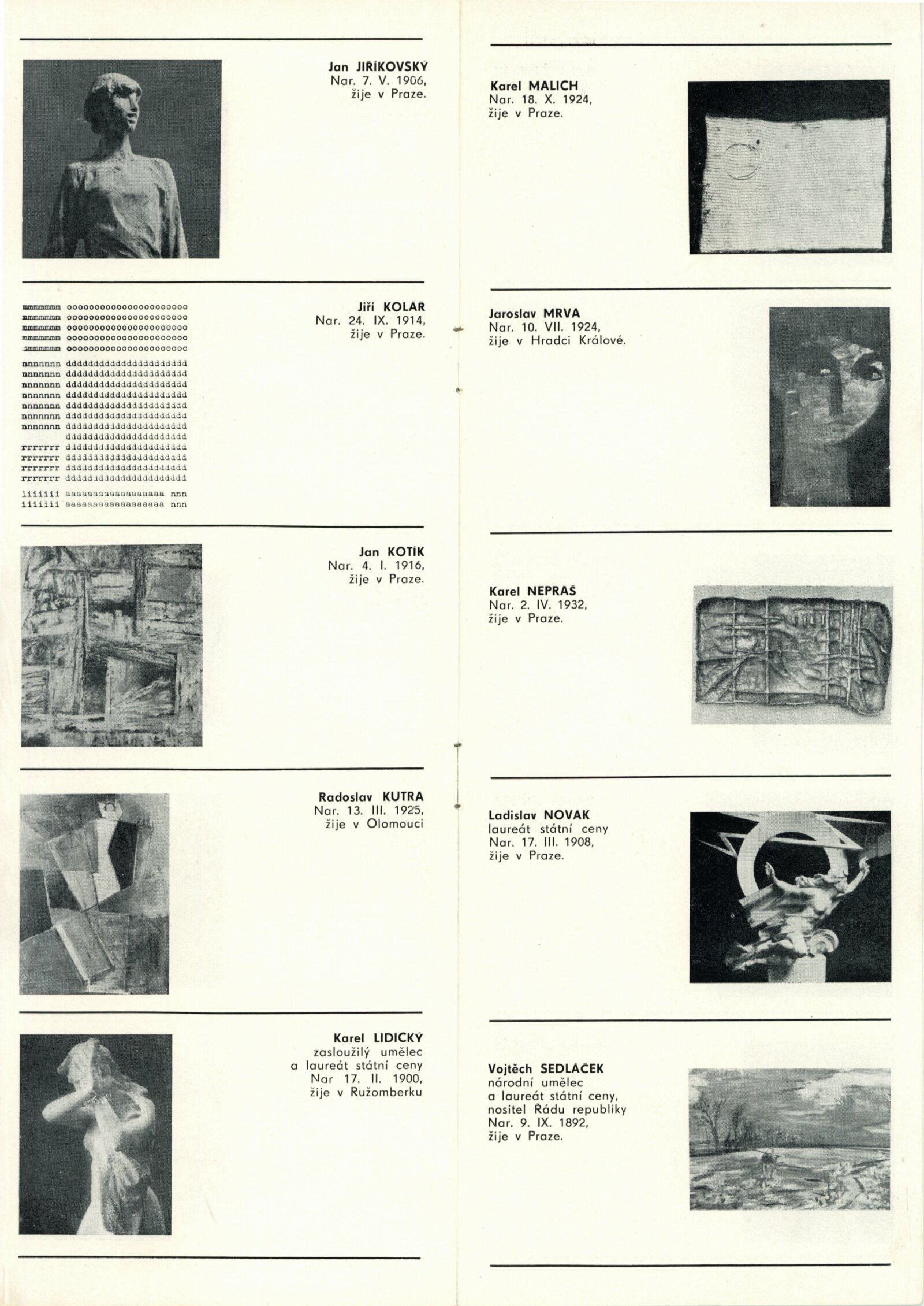 Zdeněk Balaš, Václav Bartovský, Cyril Bouda, Hugo Demartini, Bedřich Dlouhý, František Dvořák, Richard Fremund, Vladimír Fuka, Ľudovít Fulla, Stanislav Hanzl, Miloslav Holý, Jaroslav Hudec, Jan Jiřikovský, Josef Kaplický, Jiří Kolář, Ota Janeček, Jan Kotík, Radoslav Kutra