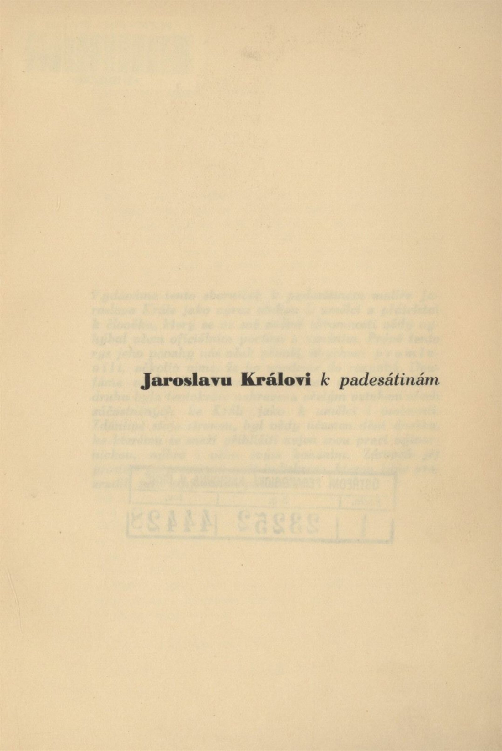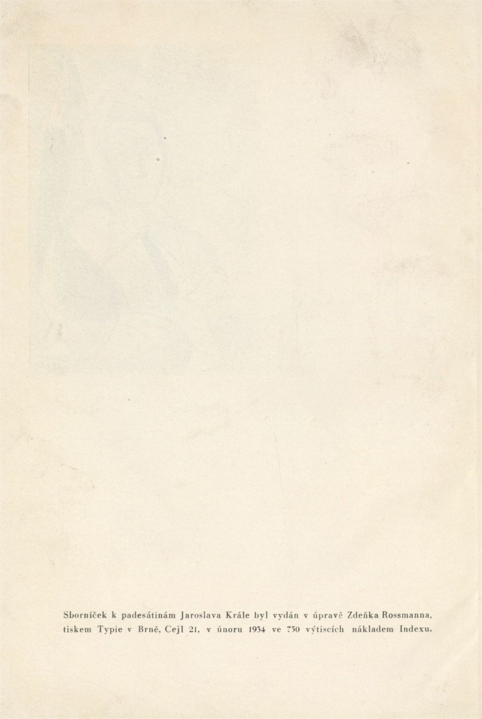 Digitalizovaný sborník k padesátinám Jaroslava Krále v úpravě Zdeňka Rossmanna z roku 1934 poskytla Moravská zemská knihovna v Brně.