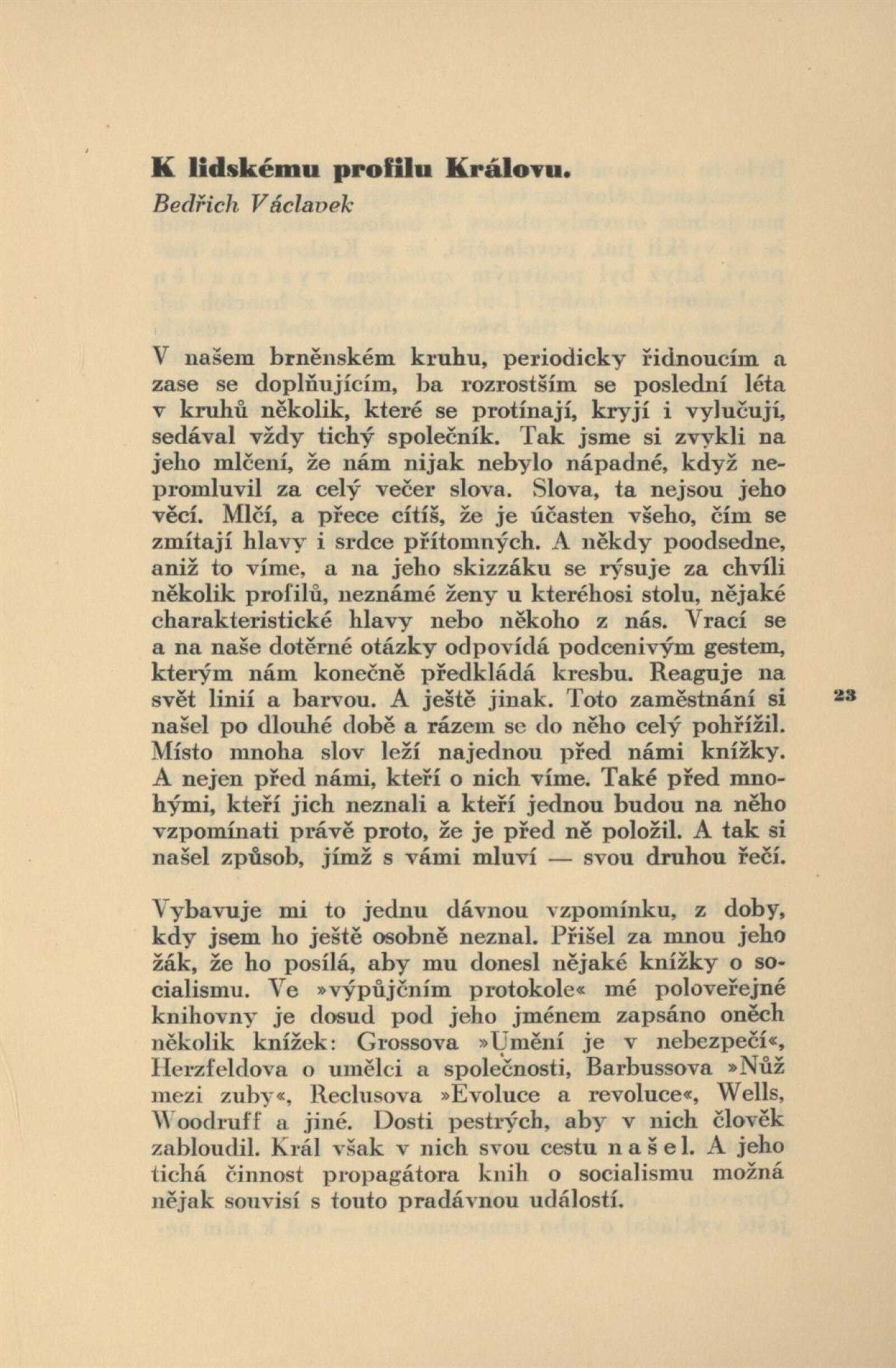 Seznam obrazů souborné členské výstavy Jaroslava Krále. Seznam obrazů členské výstavy Skupiny V. U.: Brno, Künstlerhaus, 27. 5. – 10. 6. 1934 / Brno: SVU, 1935. – skládačka 10 s. Souběžně text německý. – Kubíček 7829; MZK; MMB; AMB
