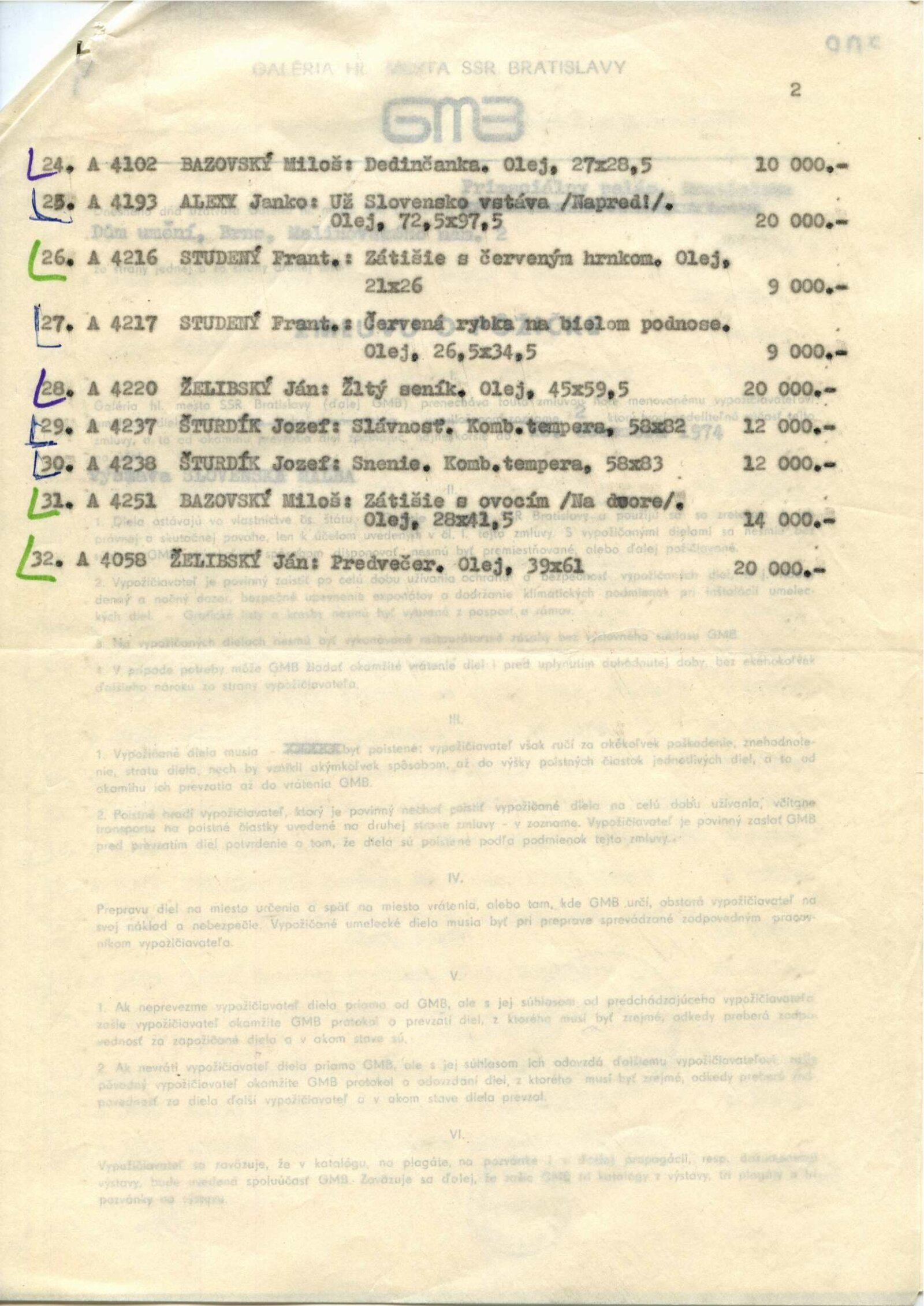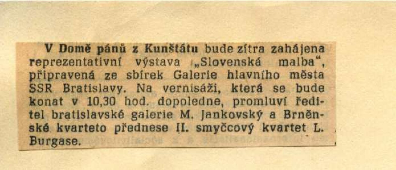 pozvánka, provozní korespondence, zpráva o poškození obrazu, korespondence o rozšíření výstavy (Muzeum a galerie Žďárska), smlouva o zápůjčce se seznamem děl – Galerie hl. města SSR Bratislavy, žádost o povolení výstavy, recenze v tisku