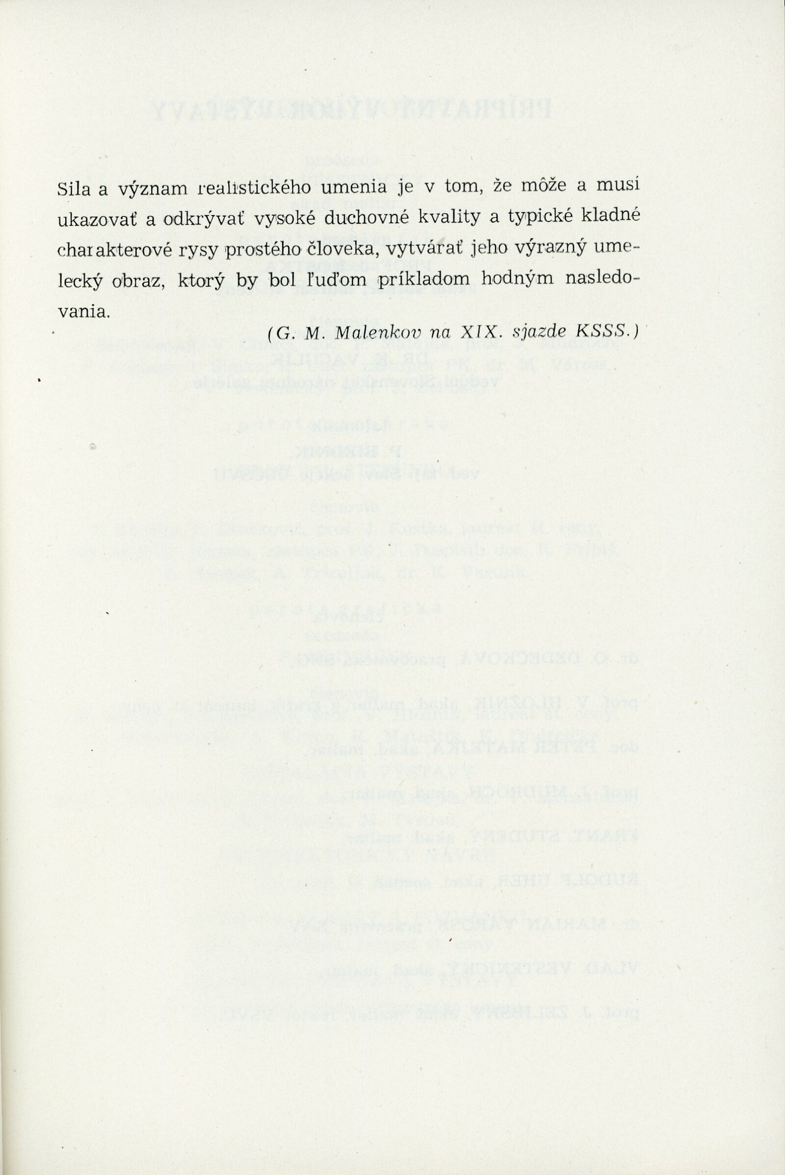 Elvíra Antalová, Július Balogh, Július Bárta, Miloš Alexander Bazovský, Štefan Bednár, Ľudovít Bránsky, Július Bukovinský, Dezider Castiglione, Juraj Collinásy, Ladislav Čemický, Andrej Doboš, Jozef Doka, Karol Drexler, Jozef Fabini, Jozef Fedora, Ľudovít Fulla, Milan Gašpar, Ján Grotkovský, Ladislav Guderna, Ján Hála, Ferdinand Hložník, Bedrich Hoffstädter-Horský, Jordán Mikuláš, Vojtech Kálna, Eva Kapišová-Byssová, Peter Július Kern, Gejza Kieselbach, Otokar Kolař, Jozef Kollár, Peter Konečný, Július Koreszka, Viera Krajcová, Ctibor Krčmár, Ľudovít Križan, František Kudláč, Elena Lazinovský, Eugen Lehotský, Mária Medvecká, Vojtech Mensatoris, Ján Nemčík, Mikuláš Nemčík, Mikuláš Rogovský, Gejza Salay, Ervin Semian, Maxmilián Samian, Maxmillán Schurmann, Edita Spannerová, František Studený, Alexander Szabó, Estera Šimerová-Martinčeková, Ľudovít Štrompach, Martin Tvrdoň, Róbert Dúbravec, Vladimír Vestenický, Jaroslav Votruba, Imrich Vysočan, Ján Želibský, František Kráľ, Vojtech Stašík, Mikuláš Klimčák, Ernest Zmeták, Tibor Bártfay, Otokar Čičátka, Karol Dúbravský, Ľudovít Goga, Stanislav Hlobil, Ján Hučko, Pavol Chrťan, Ivan Strelko, Ludvik Korkoš, Ján Kulich, Koloman Makovínyi, Jozef Mazan, Jozef Pospišil, Ján Rybárik, Ladislav Snopek, Fraňo Štefunko, Trizuljak Alexander, Rudolf Uher, Rudolf Altrichter, Jozef Baláž, Matilda Čechová, Jarmila Čihánková, Anton Djuračka, Orest Dubay, Milan Gašpar, Ladislav Guderna, Elena Haberernová-Bellušová, Ferdinand Hložník, Vincent Hložník, Karol Hučko, Viliam Chmel, Alojz Klimo, Tamara Klimová, Ľubomír Kellenberger, Ladislav Kubačka, Jozef Kubas, Peter Matejka, Michal Staudt, Ivan Štubňa, Jozef Šturdík, Imrich Vysočan, Imro Weiner-Král, Jozef Baláž, Štefan Bednár, Ľudovít Fulla, Anton Hollý, Jozef Chovan, Pavel Kováts, Imrich Vysočan