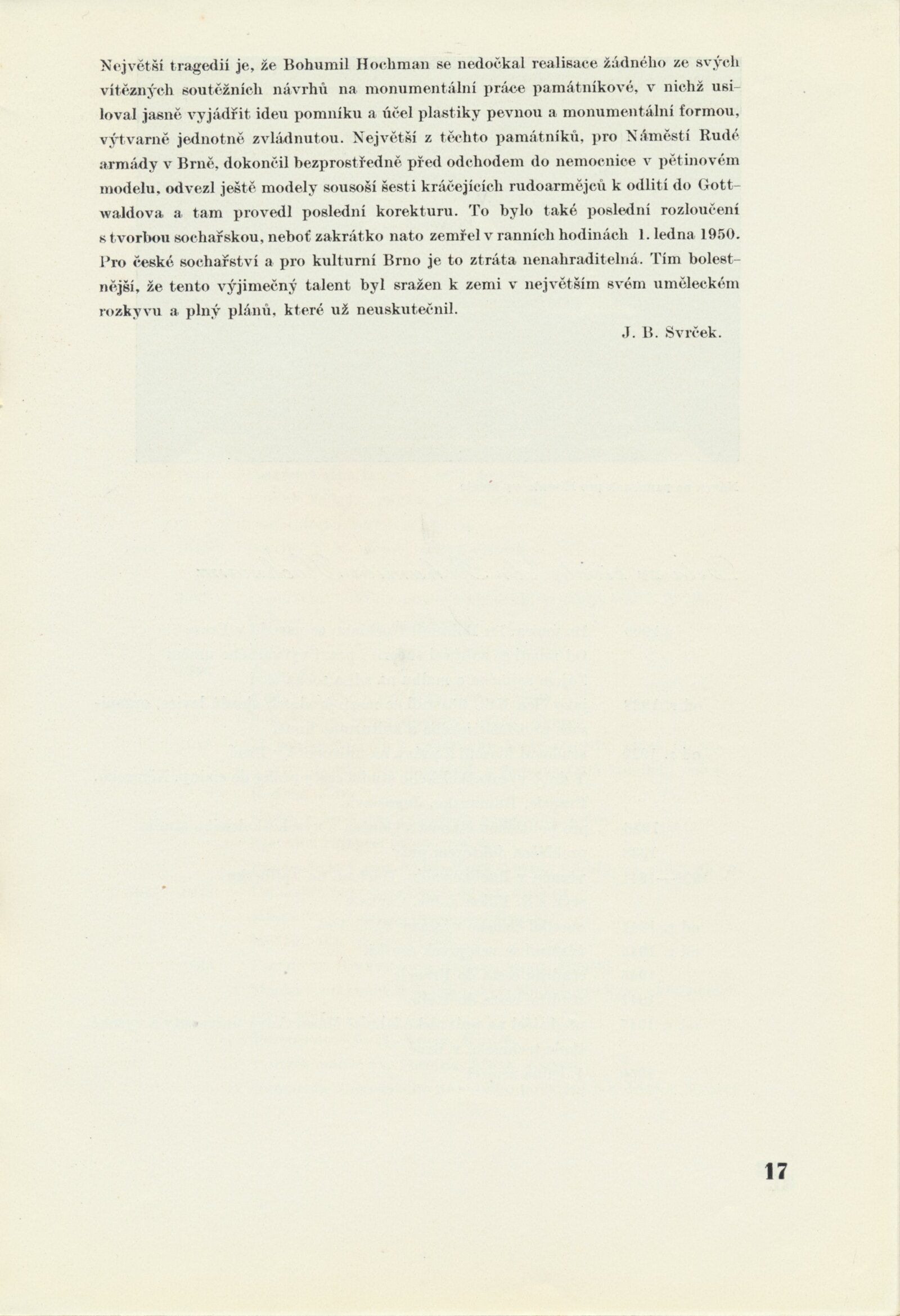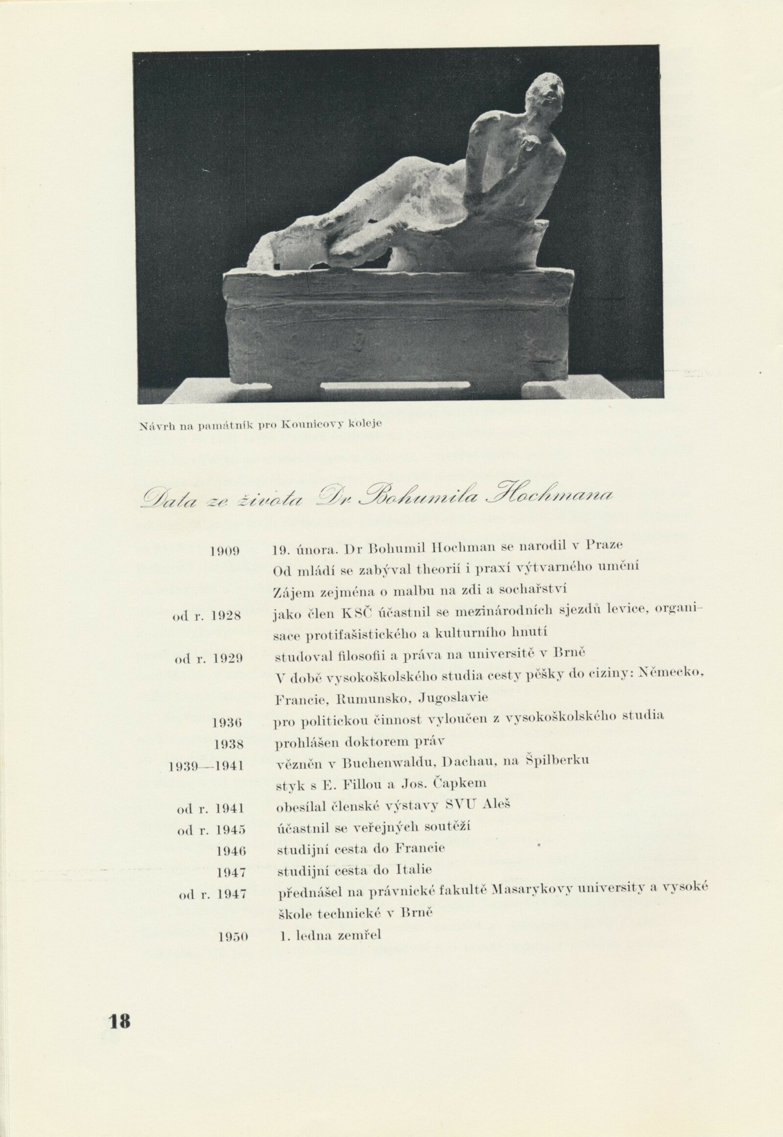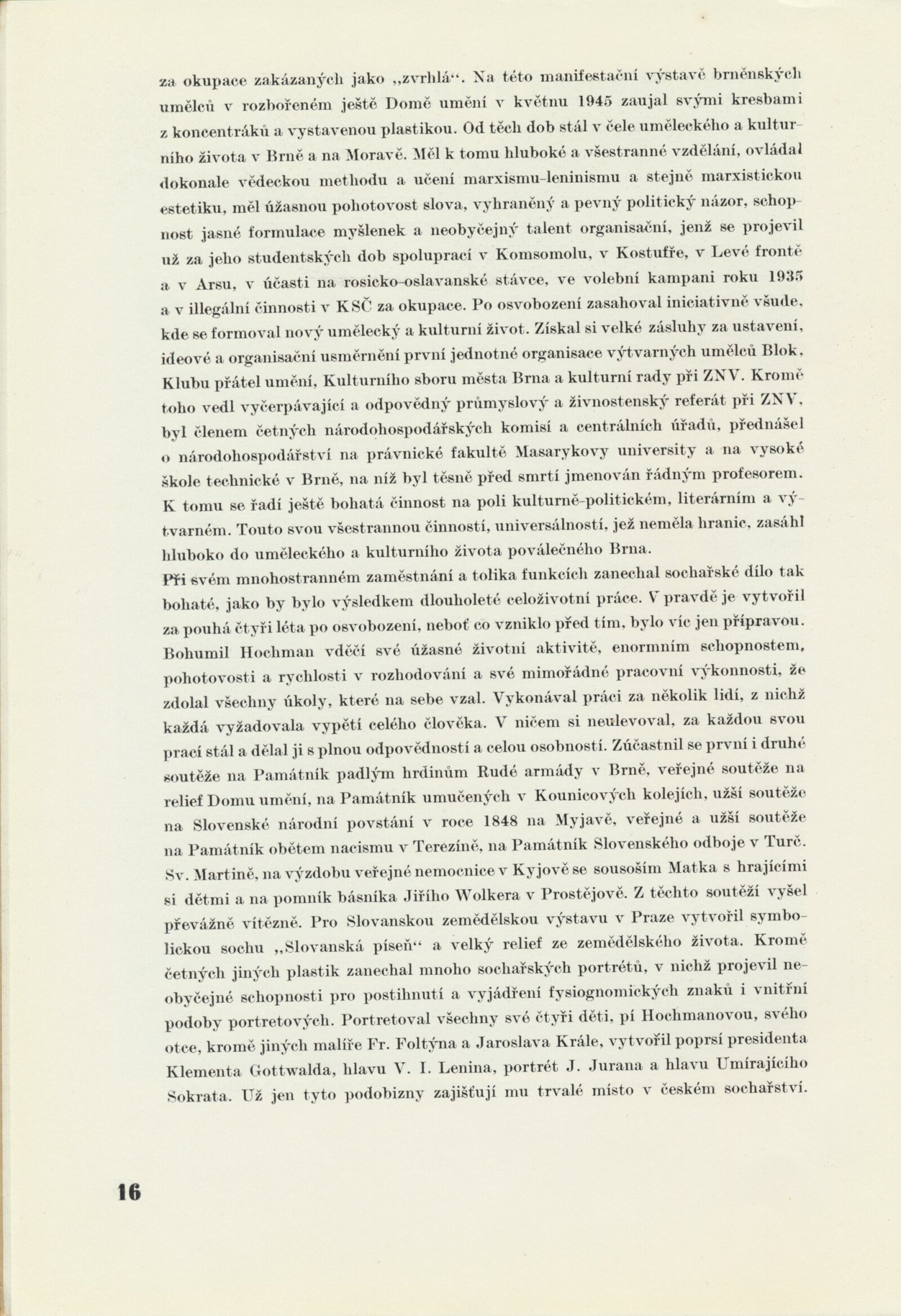 Katalog výstav Domu umění, výstavní list Domu umění, pořádaných mezi březnem a dubnem 1950 / Obsahuje výstavy: Sochař Josef Axmann. 125. výstava, Sochař Bohumil Hochman. 126. výstava, Malíř Josef Zamazal. 127. výstava, Dramatické dílo Aloise Jiráska v moravskoslezském divadelnictví. 128. výstava, Život a dílo V. V. Majakovského. 129. výstava, Kresby řeckých dětí. 130. výstava / Texty: A. L., J. B. Svrčka. – Brno: Dům umění, 1950. – 32 s., obr., životopisy umělců, soupisy prací, DU 125–130. – MG; MMB