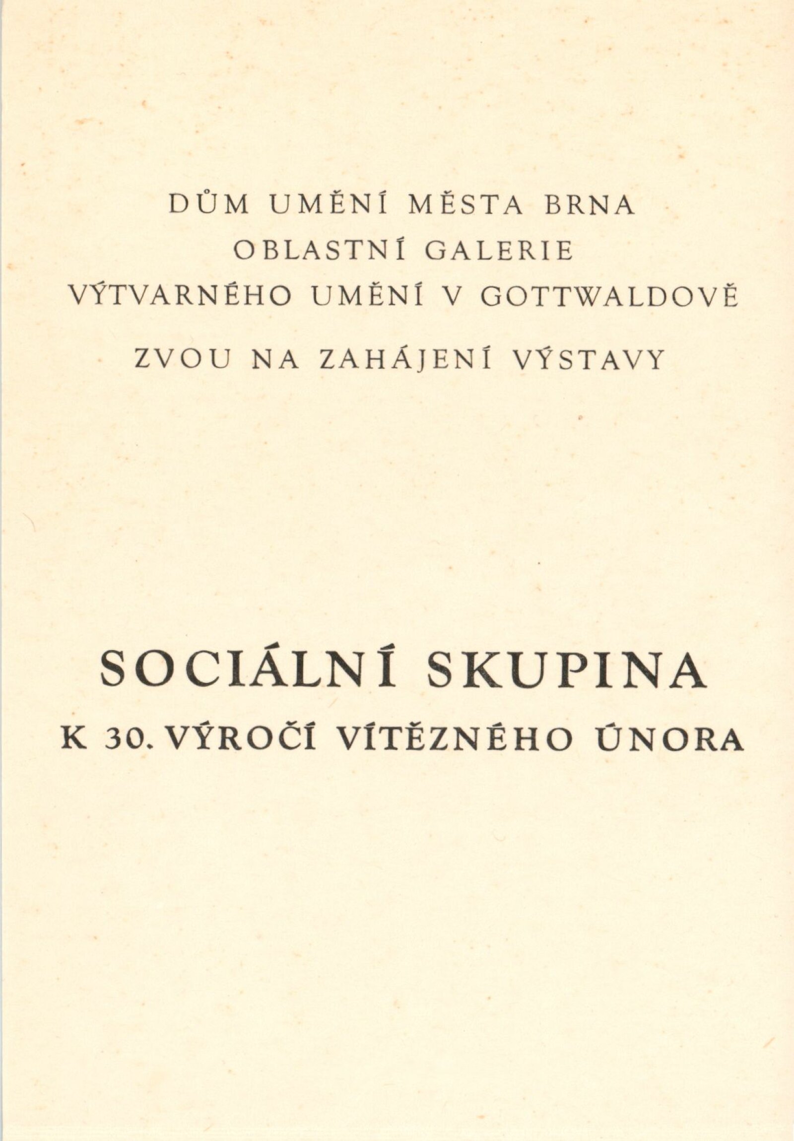 pozvánka, katalog, fotografie výstavy, fotoreprodukce děl pro katalog, seznam vystavených děl, strojopis úvodního slova, podklady pro katalog (básně Jiřího Wolkera, Antonína Matěje Píšy), strojopisy textů pro média, přehled akcí DU k 30. výročí Vítězného února + texty, korespondence (rukopis M. Holanová, M. Kotrbová, A. a Vl. Bergerovi), provozní korespondence, zápůjční smlouvy, reversy, žádost o povolení výstavy, recenze v tisku