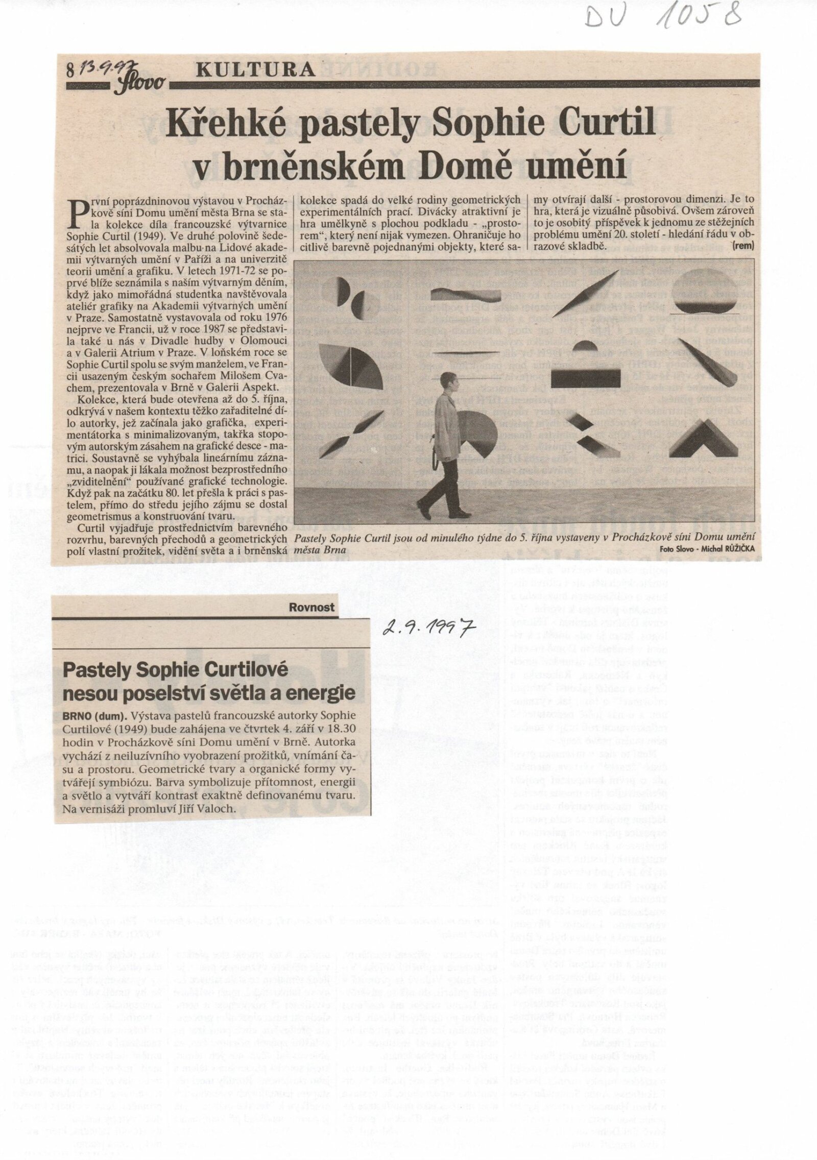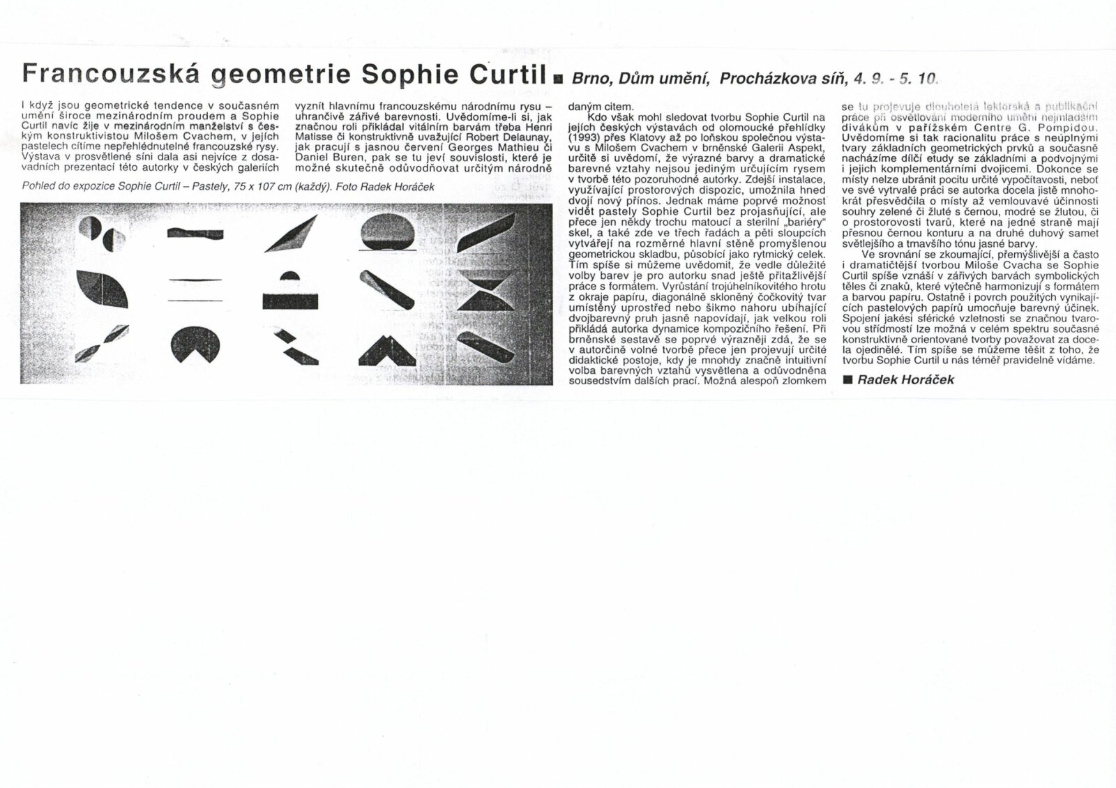 Sophie Curtil: Dům umění města Brna, Procházkova síň, 4. 9. – 5. 10. 1997 / Text: Jiří Valoch. – Brno: DUmB, 1997. – skládačka (6 s., obr.), DU 1058. – MZK