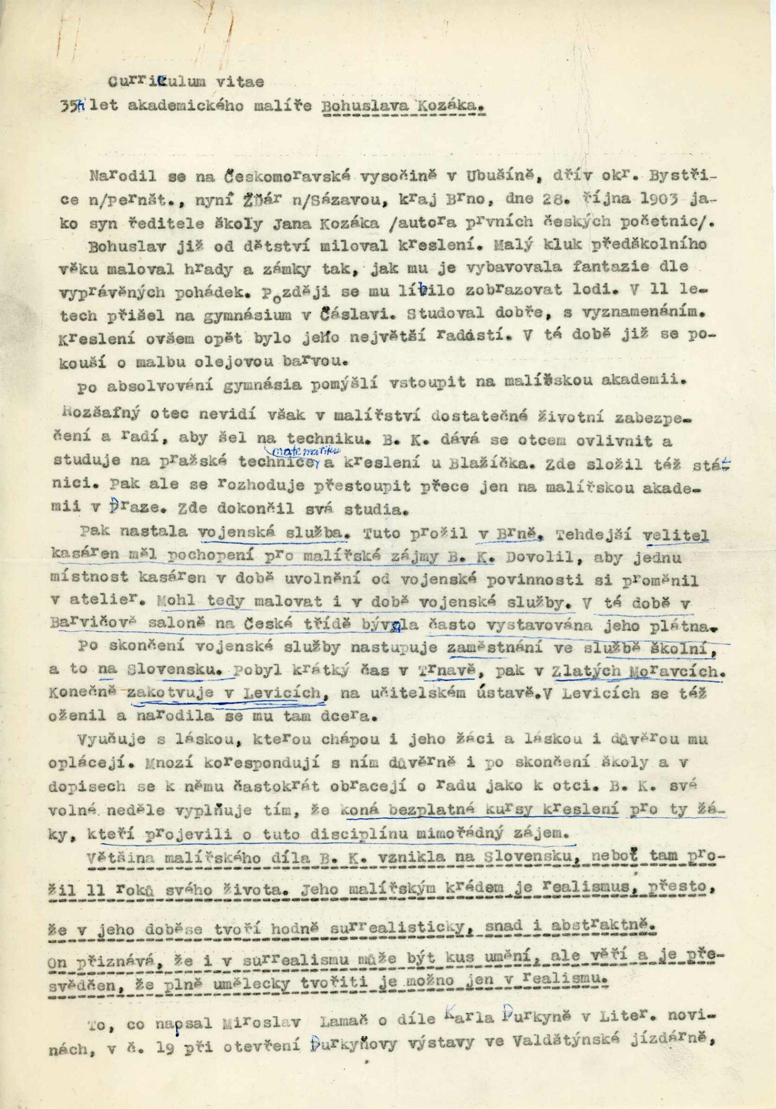 pozvánka, katalog, seznamy děl, životopis Bohuslava Kozáka, korespondence (o realizaci výstavy, zápůjčkách a vrácení děl – zejm. s Libuší Kozákovou), smlouva o výpůjčce výstavy, potvrzení o převzetí obrazů, reversy, recenze v tisku, pozvánka na výstavu (Horácké muzeum v Novém městě na Moravě)