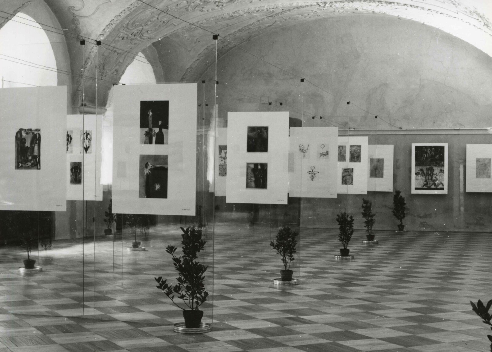 seznam vystavených děl, smlouva k výstavě, fotografie výstavy v barokním sále Místodržitelského paláce, strojopis básní Vladimíra Holana a Oldřicha Mikuláška, provozní korespondence, reverzy, žádost o povolení výstavy, recenze v tisku, pozvánka (PNP Praha), katalog (PNP Praha) a plakát (PNP Praha)