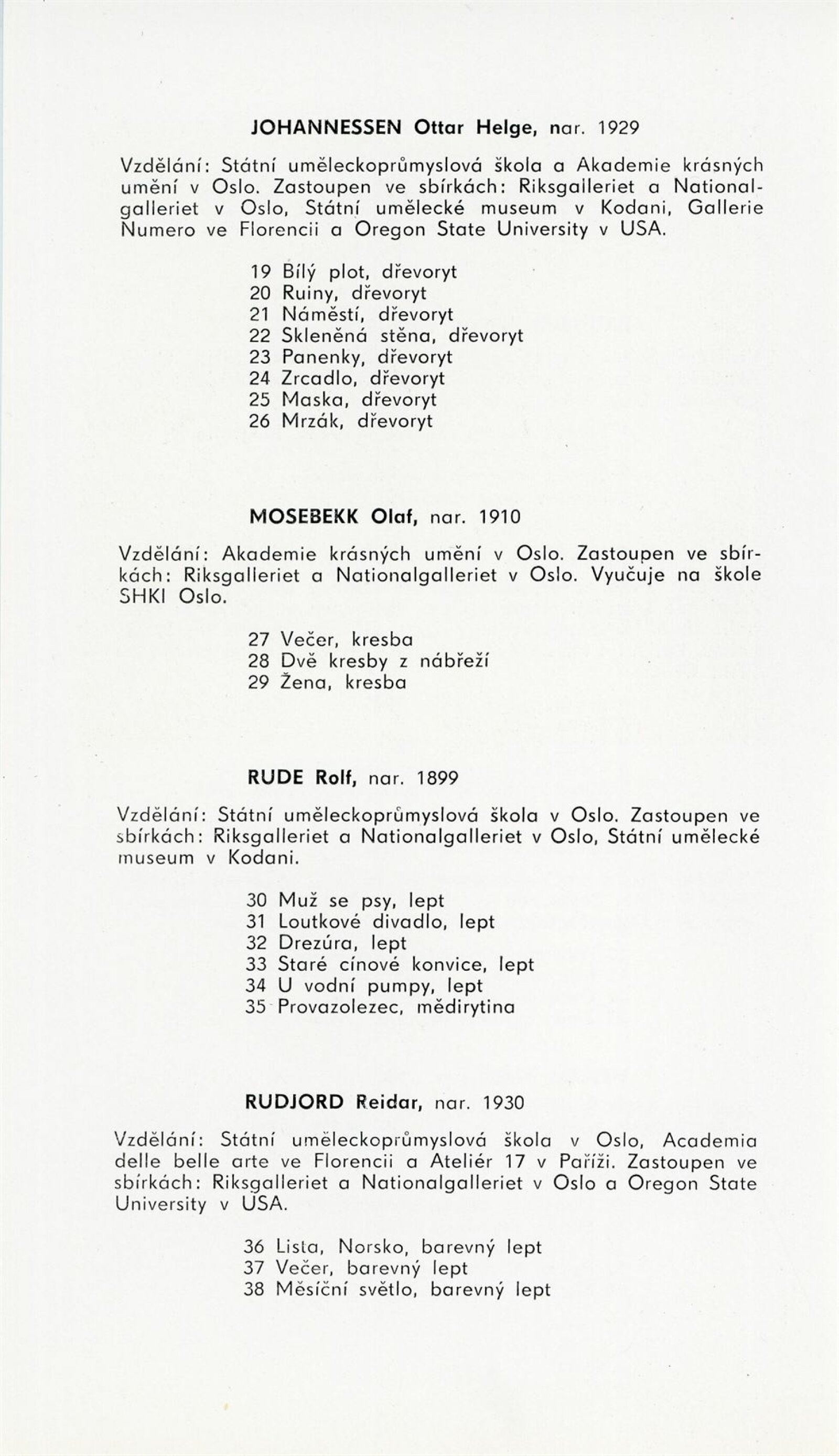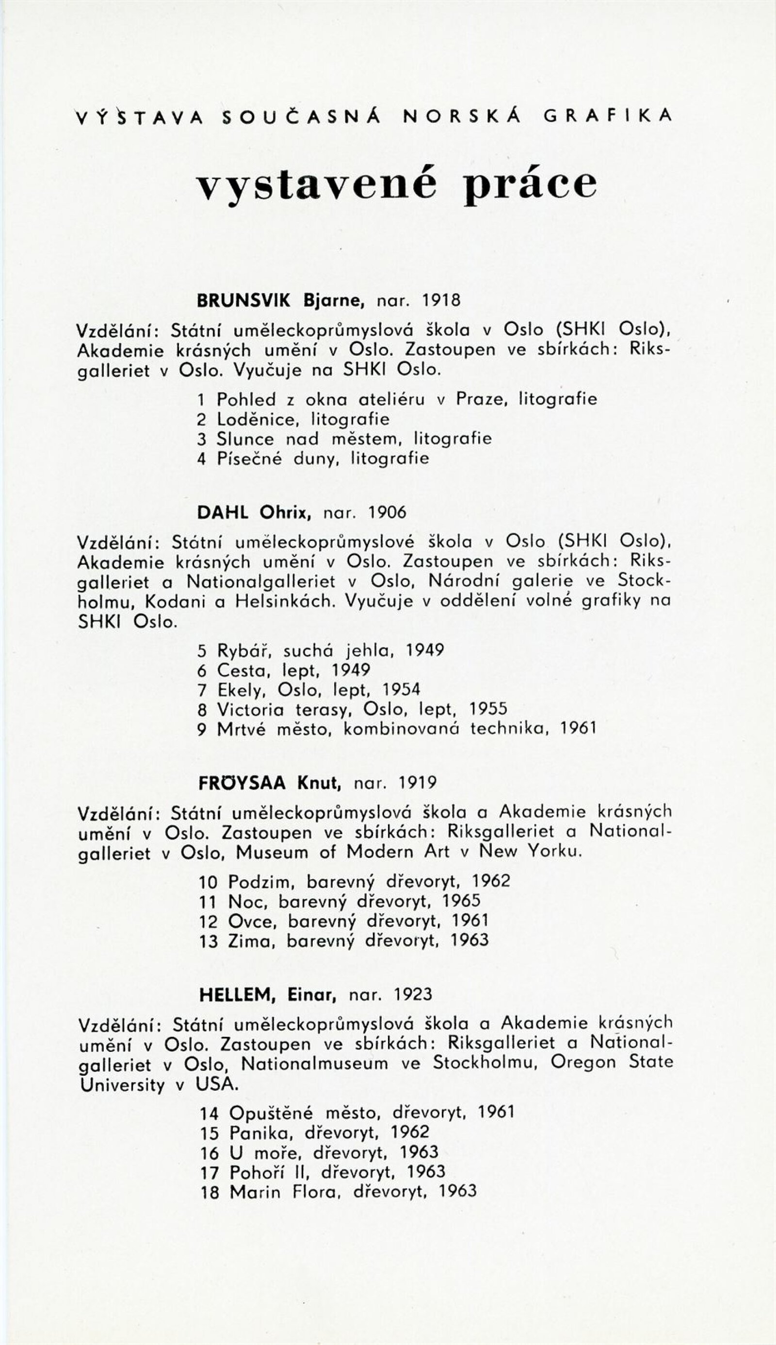 Současná norská grafika: Dům umění města Brna/ Dům pánů z Kunštátu, 84. výstava Kabinetu grafiky, 2. 6. – 2. 7. 1967/ Text: Einar C. Hellem. – Praha: SČSVU, 1967. – 4 s., obr., DPK 345