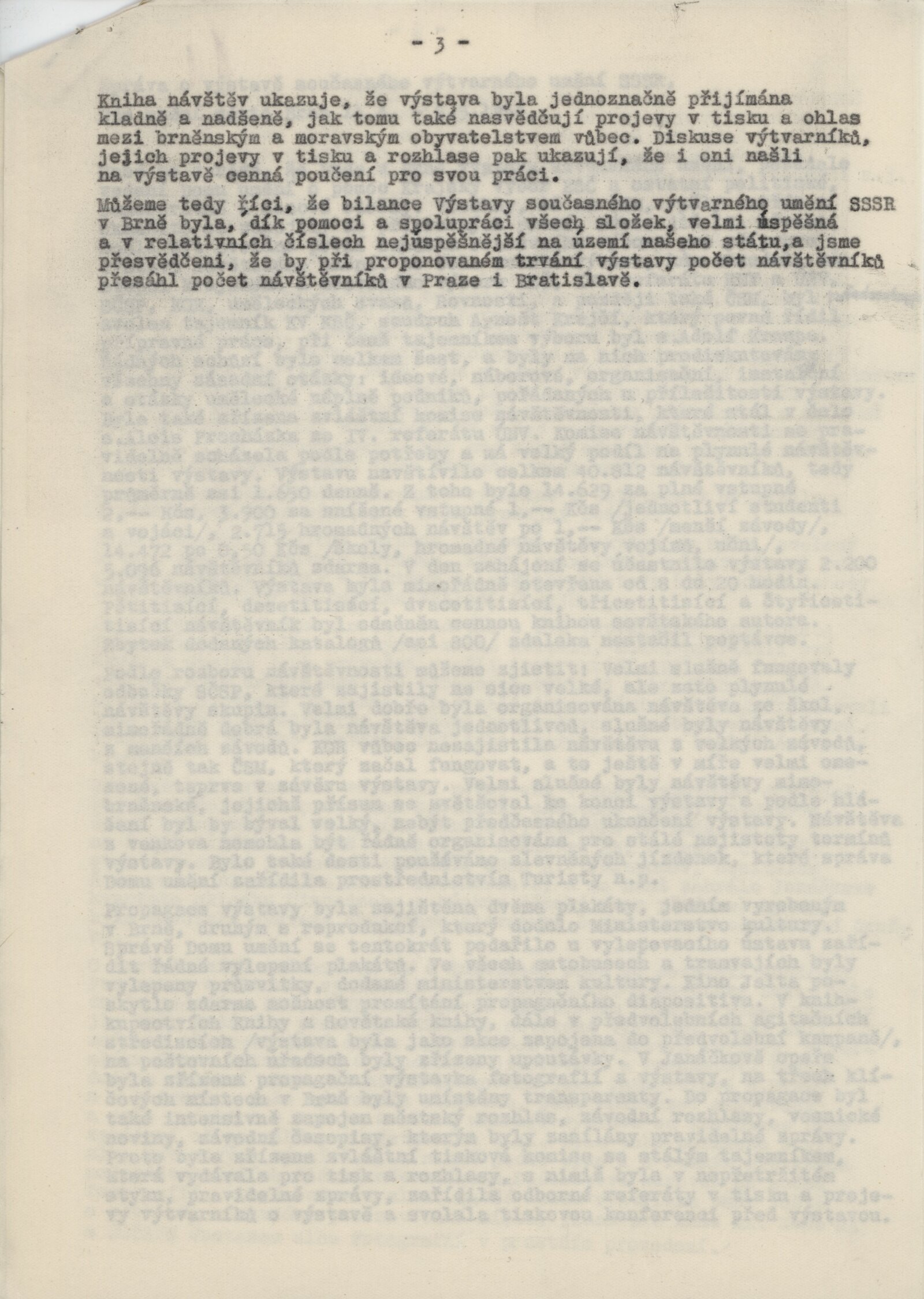 pozvánka, foto z vernisáže, zpráva o výstavě, průběžná zpráva, zápisy o přípravě výstavy (27. 4. 1954), doprovodný program, seznam členů pracovního výboru výstavy, korespondence (žádosti o uskutečnění reprízy výstavy v Brně – Dr. Libuše Lefnerová, provozní korespondence)
