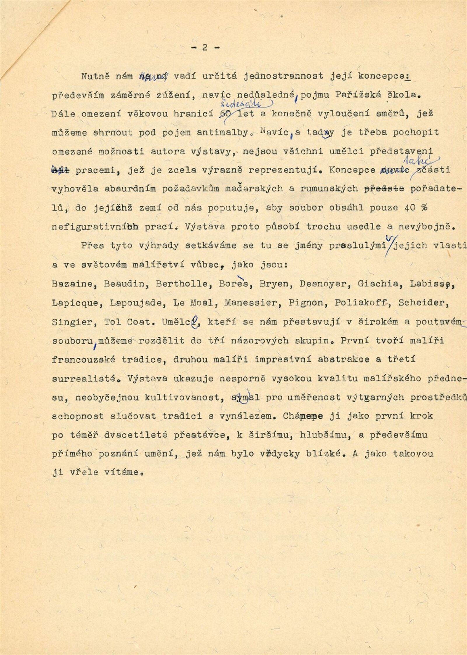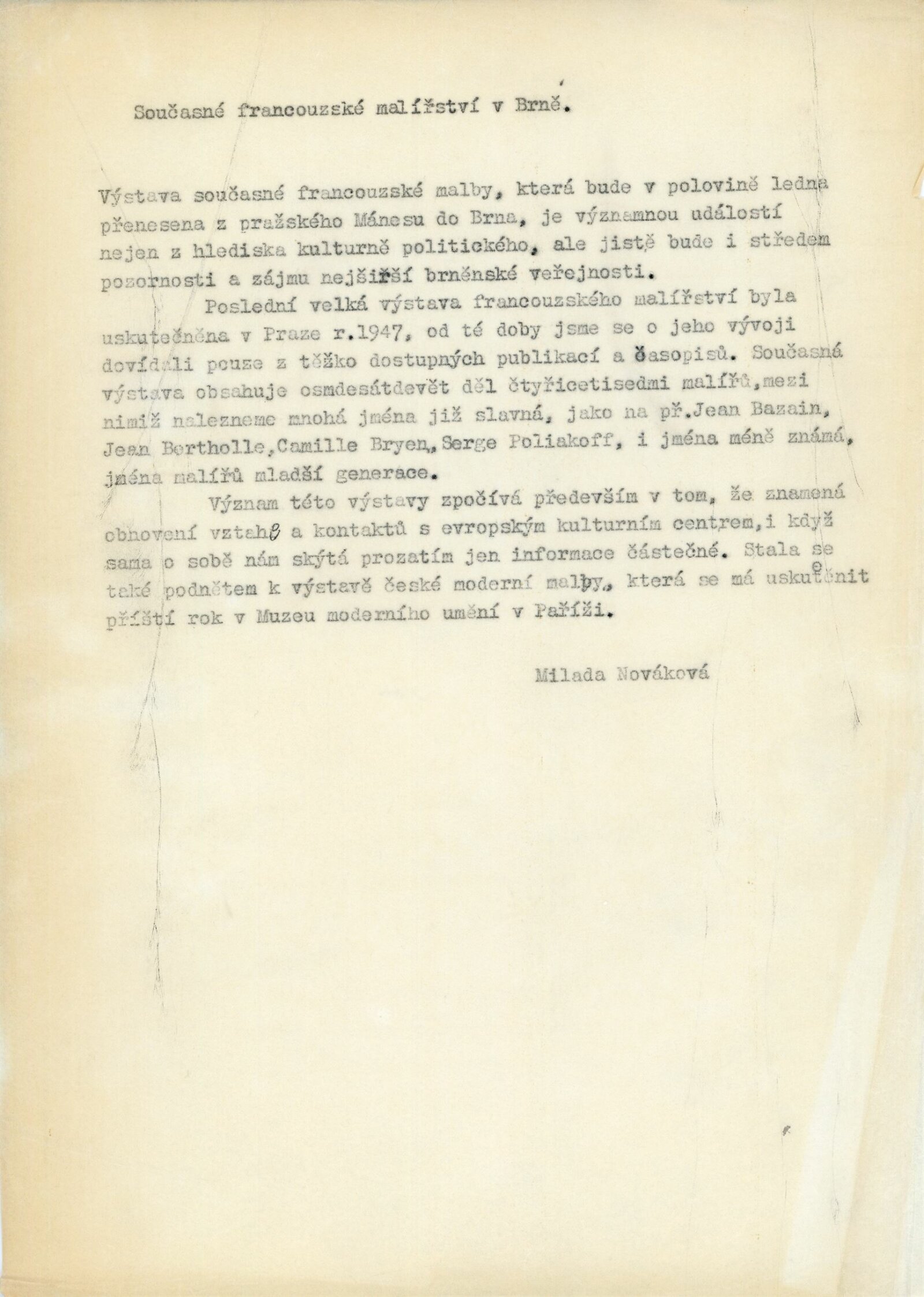 pozvánka, katalog, anotace (Milada Nováková), text vernisáže, uvítání na vernisáži, text o výstavě, seznam prací, seznam knih zapůjčených na výstavu, korespondence (SCVU, Adolf Hoffmeister, provozní korespondence) recenze v tisku, pozvánka na výstavu (Mánes v Praze, 1965)
