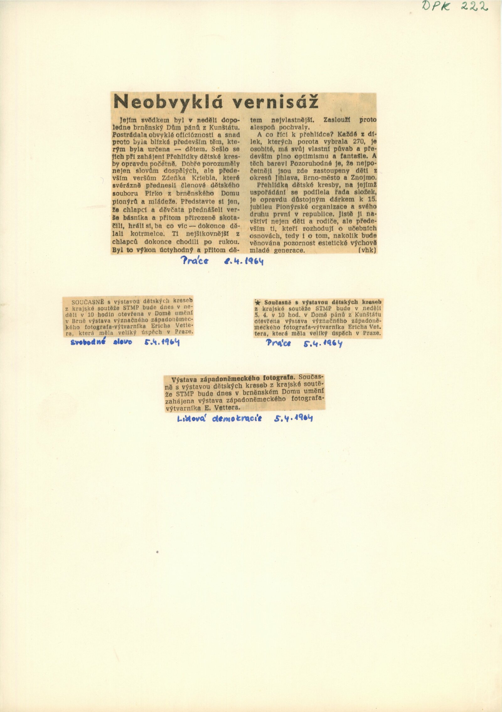 žádost o uspořádání výstavy, organizační status výstavy, podmínky pro uspořádání výstavy, provozní korespondence, recenze v tisku