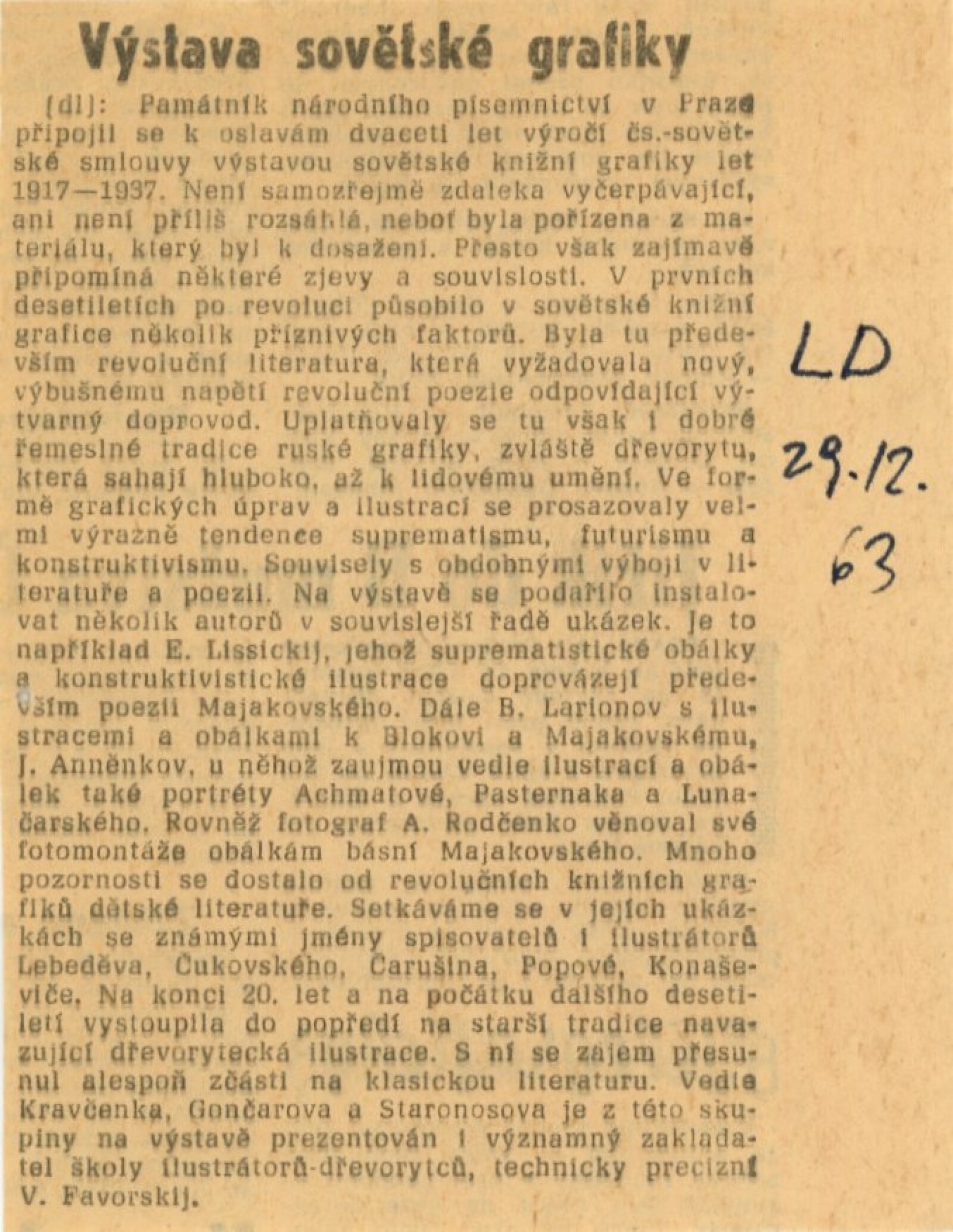 Jurij P. Anněnkov, Vladimír Fovorskij, Alexandr Kravčenko, Larionov, El Lisickij, Alexandr Rodčenko, Petr Staronosov
