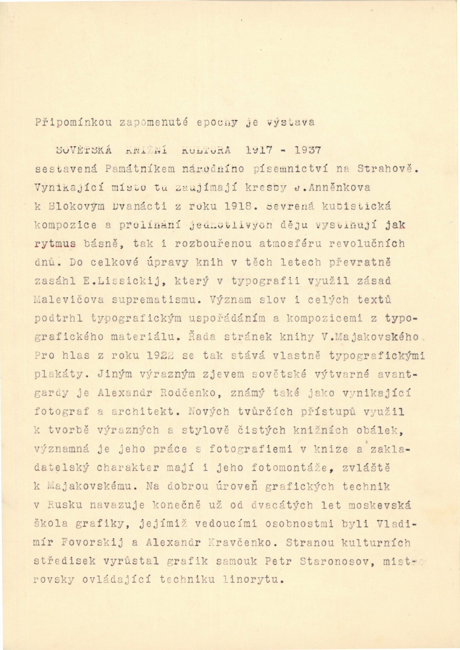 pozvánka, texty k výstavě (strojopisy), seznam vystavených knih, provozní korespondence, převzetí Památníkem Petra Bezruče Opava, recenze v tisku