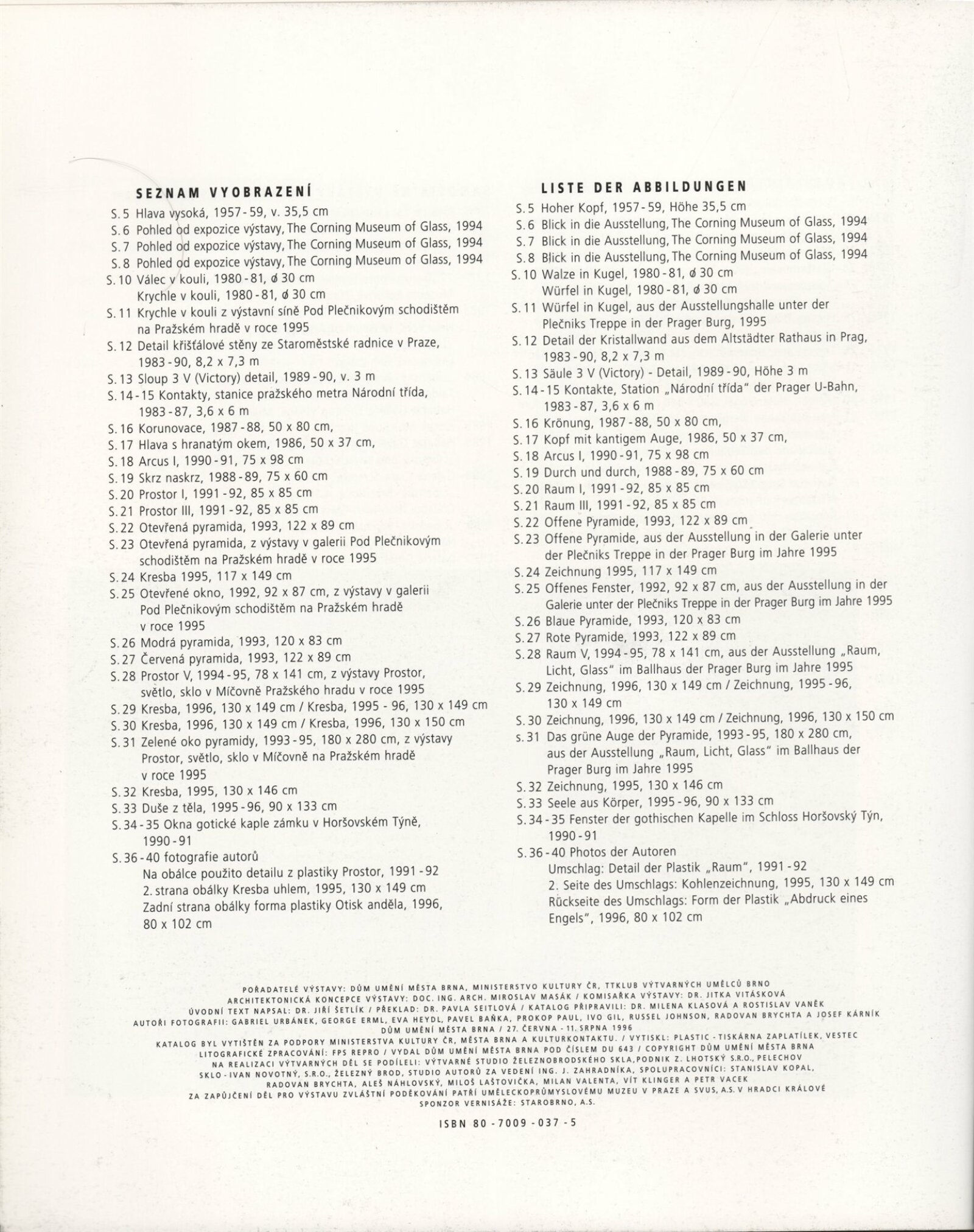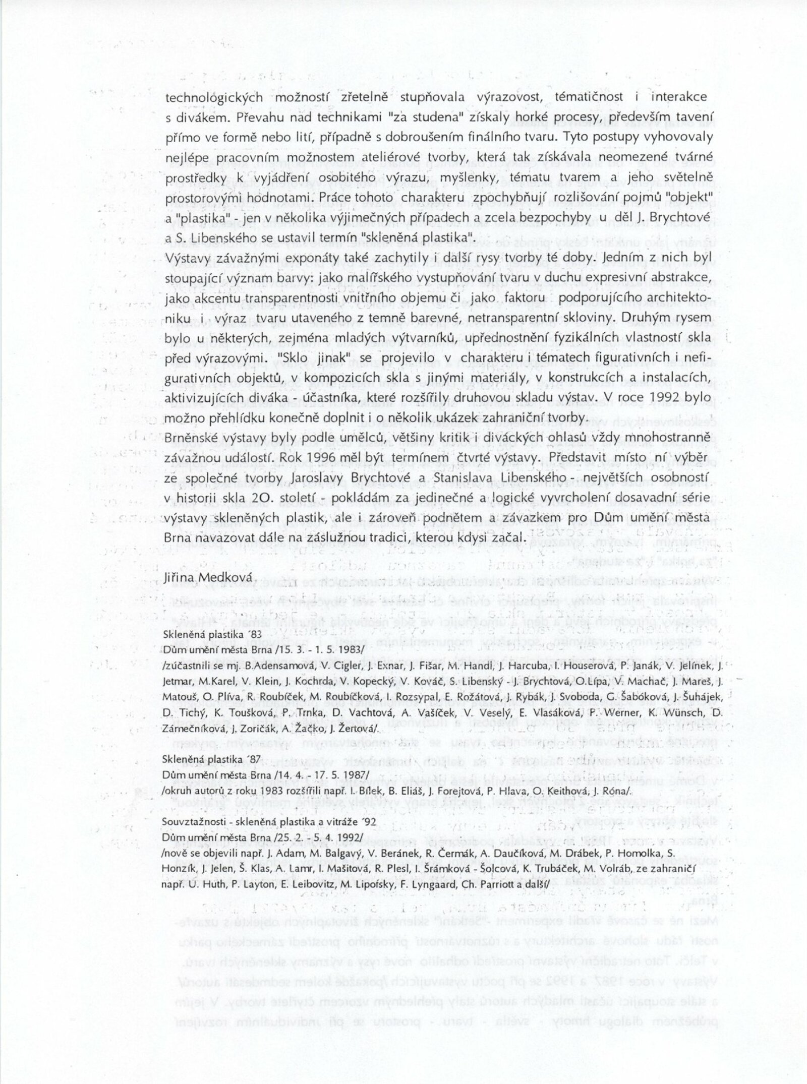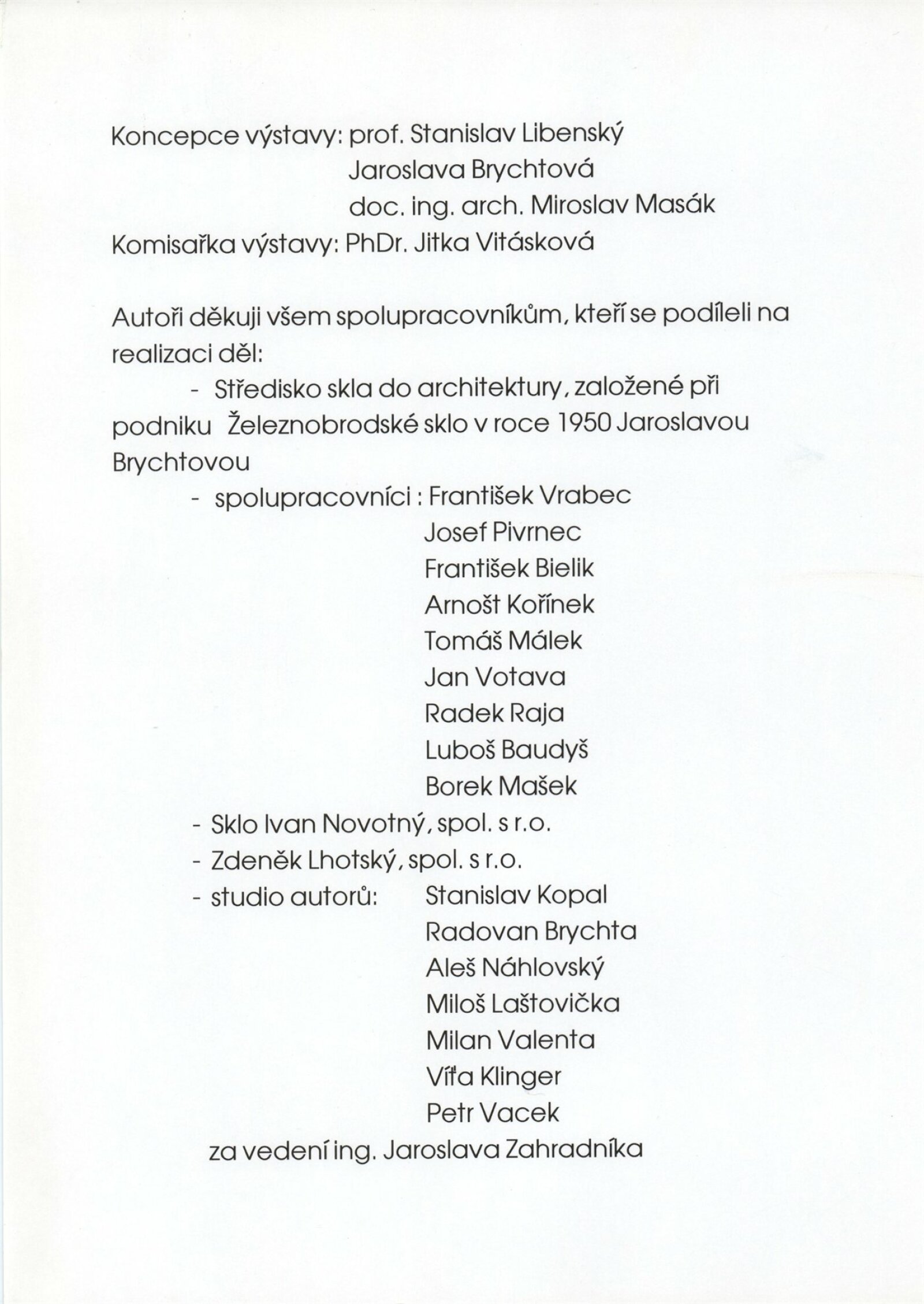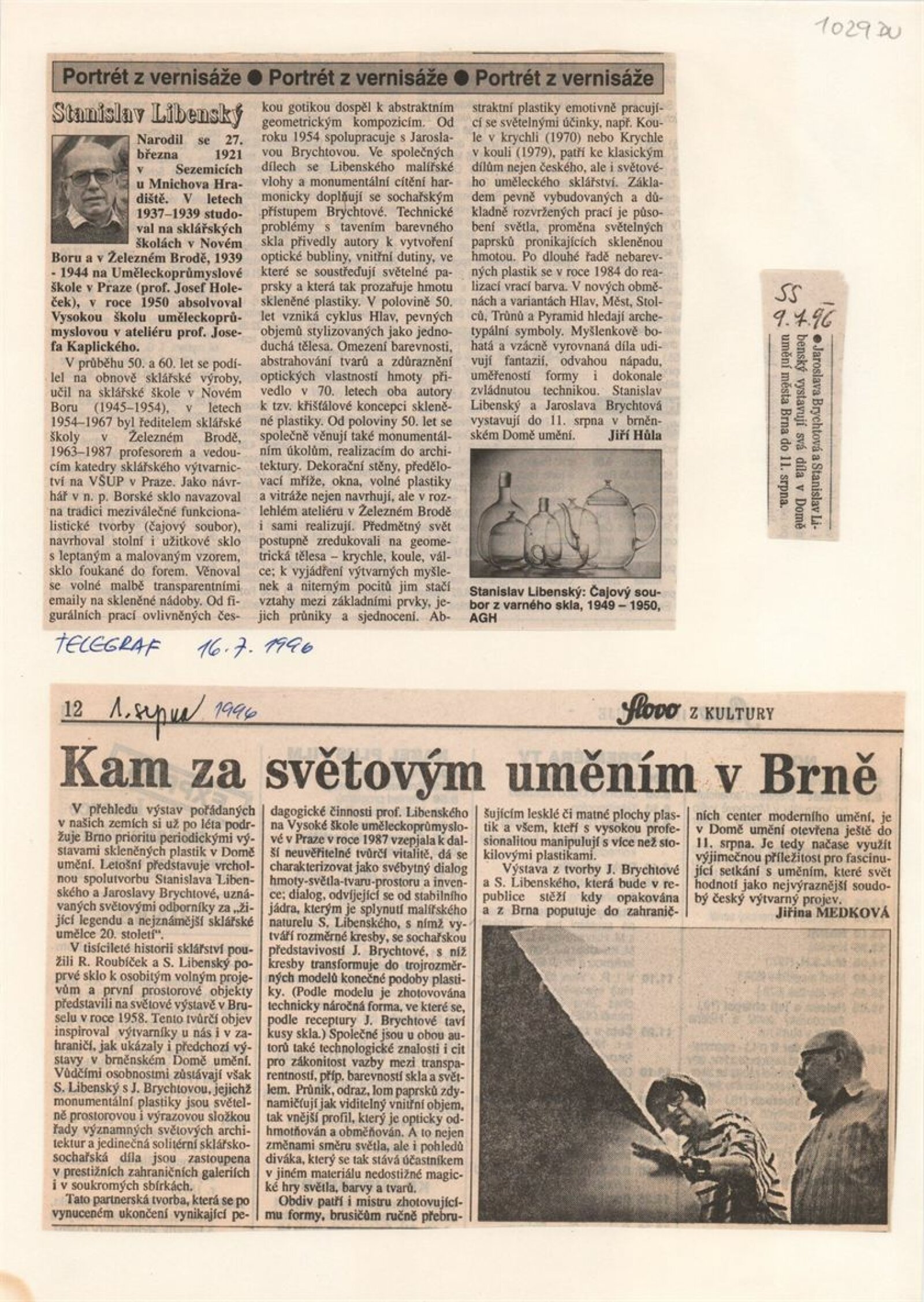 Stanislav Libenský. Jaroslava Brychtová. Výběr z díla: Dům umění města Brna, 27. [spr. 25.] 6. – 11. 8. 1996 / Text: Jiří Šetlík. – Brno: DUmB, 1996. – [40] s., obr., portréty, ceny, realizace v architektuře, výstavy, DU 1029. – MZK; MG