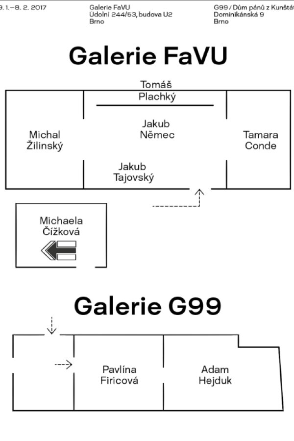 The exhibition focuses on art pieces that were created by students of the Faculty of Fine Arts, Brno University of Technology during tutorial sessions with Prof. Vadimír Špaček, staying in Brno within the Brno House of Arts residency programme. Vladimír Špaček is focused on intermedia possibilities of the photographic medium, developing his long-term fundamental themes of light, space and time in photography. He lives and works in Germany and Switzerland; he lectured at Mainz University.