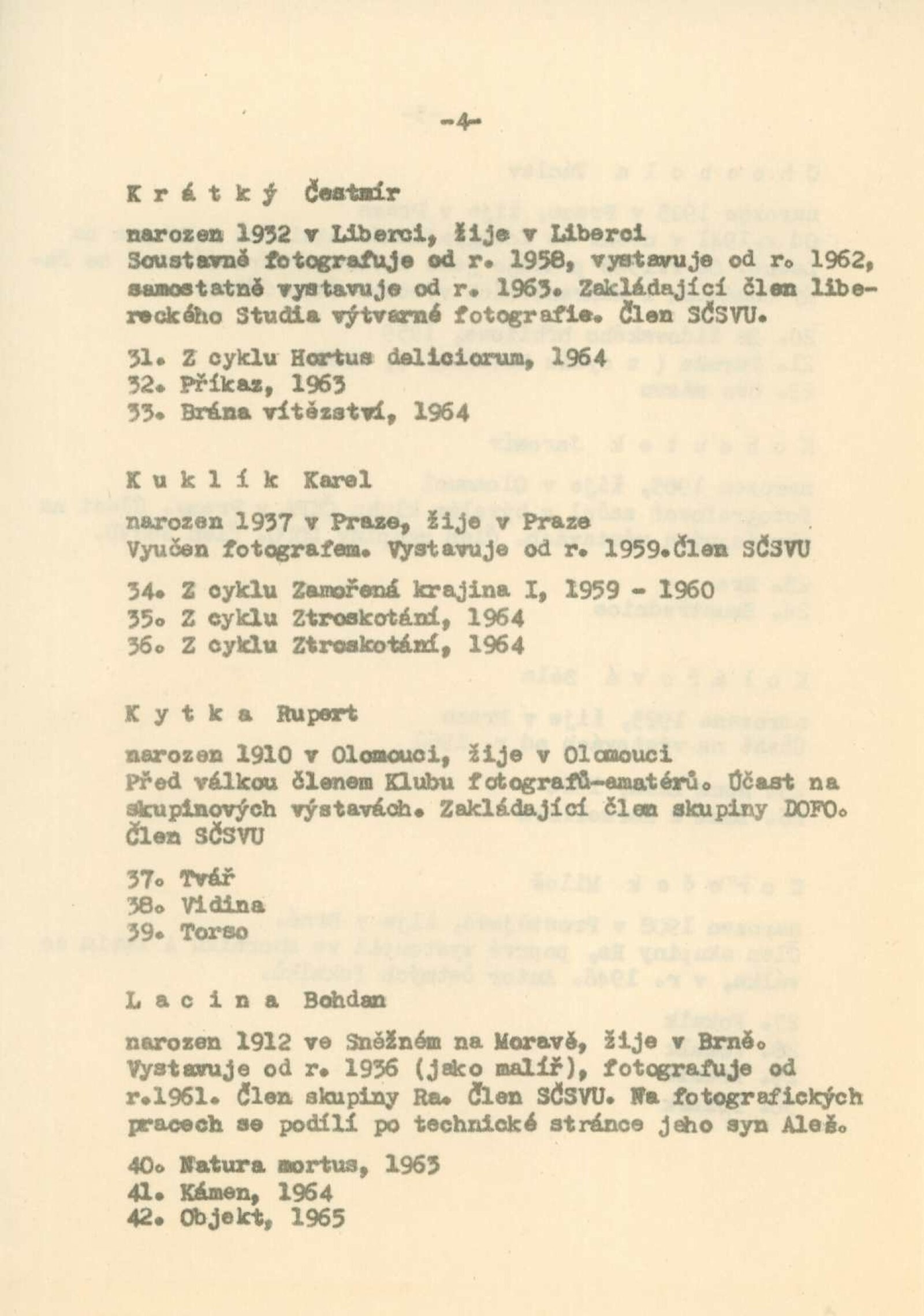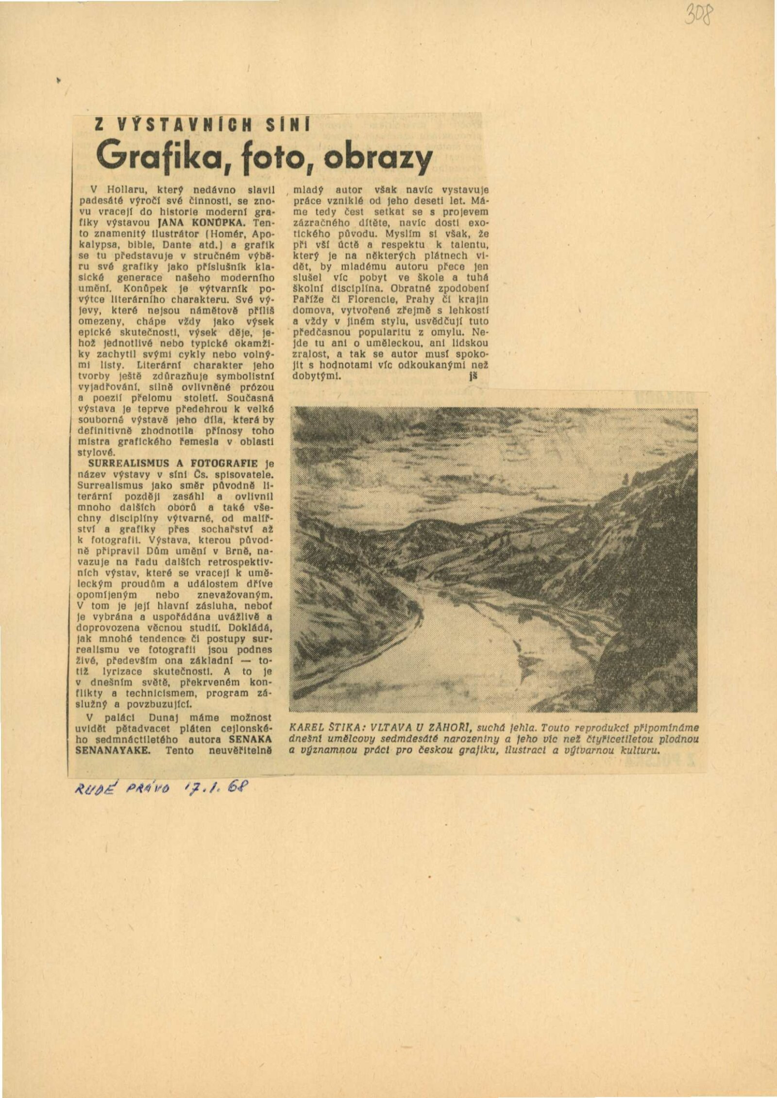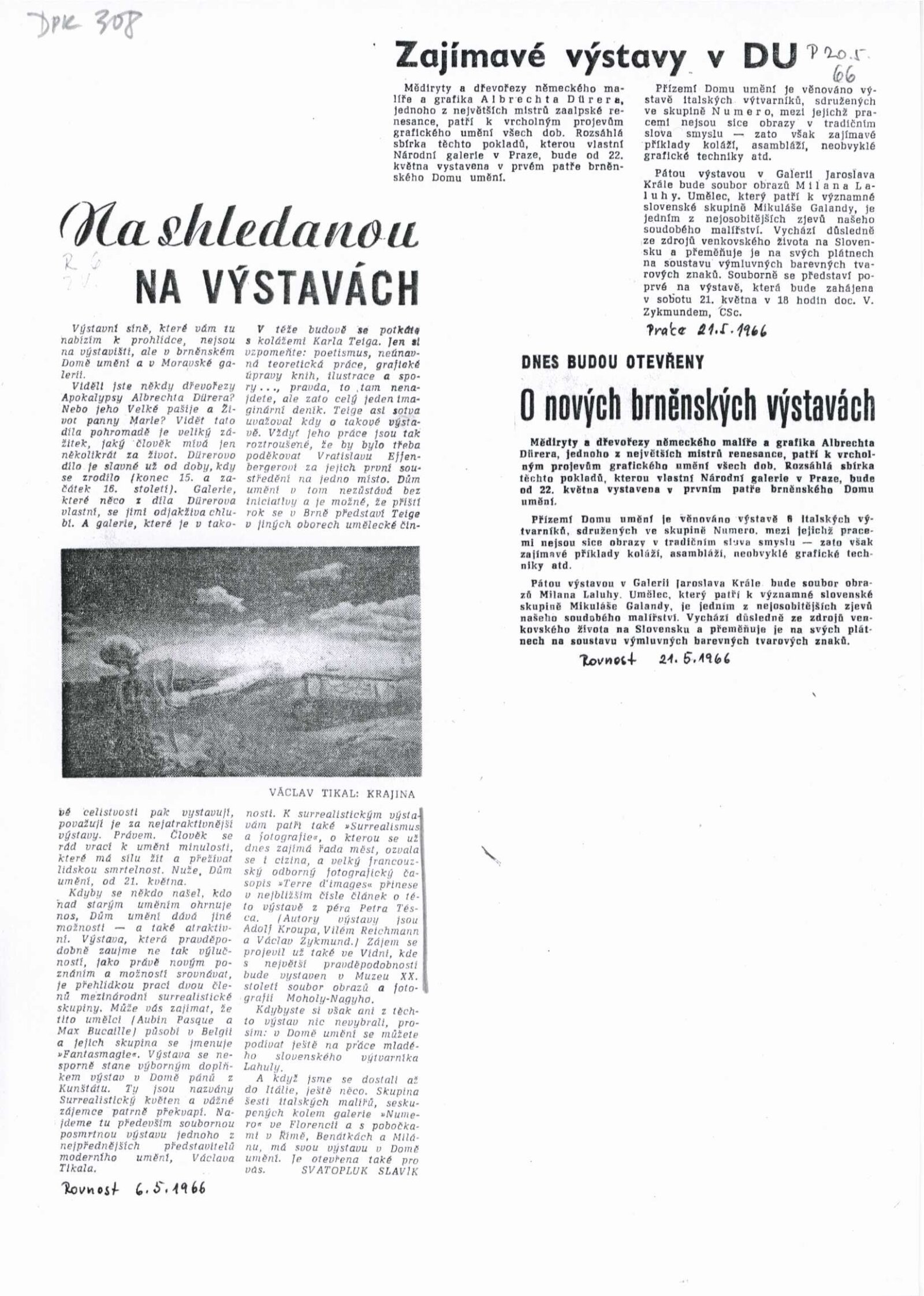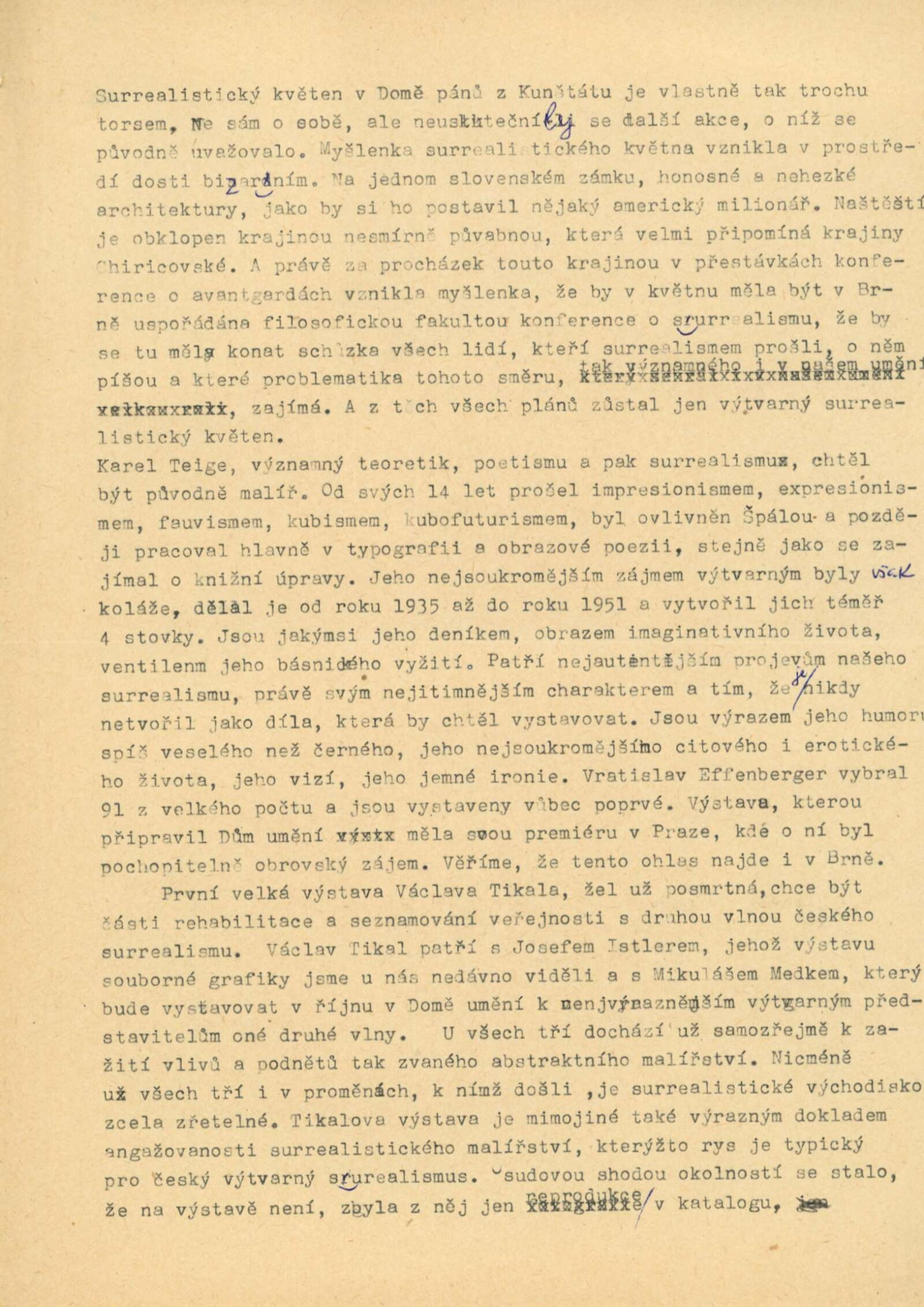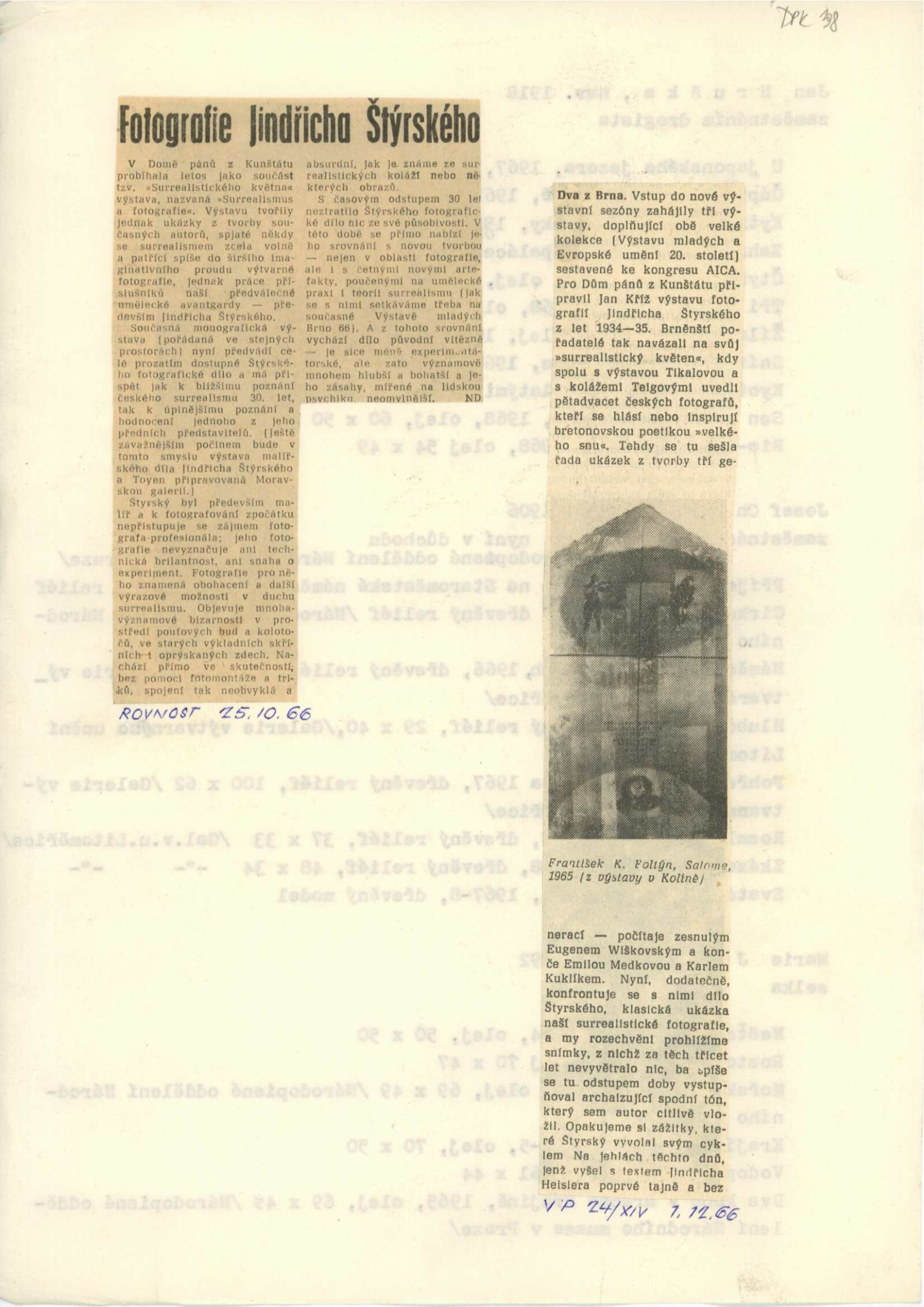 Surrealismus a fotografie: Dům umění města Brna / Dům pánů z Kunštátu, 74. výstava Kabinetu fotografie Jaromíra Funka, 6. 5. – 5. 6. 1966 / Text: Václav Zykmund. – Brno: DUmB, 1966. – 4 s., 9 s., DPK 308. – MZK; MG