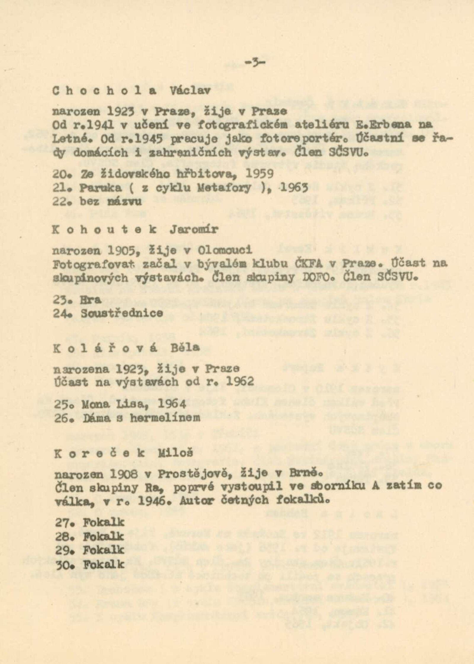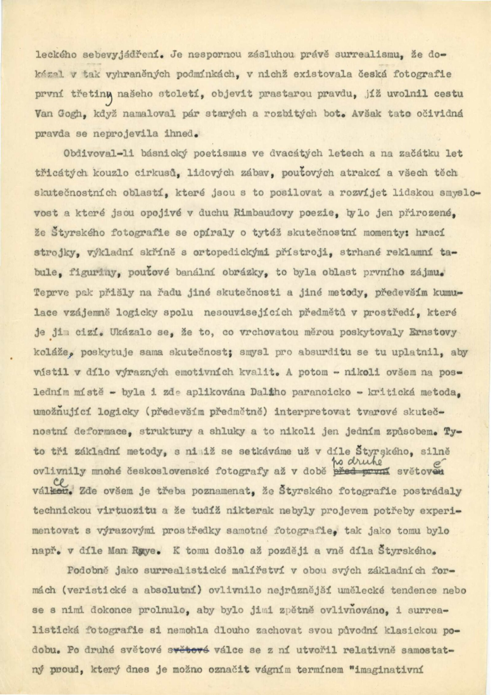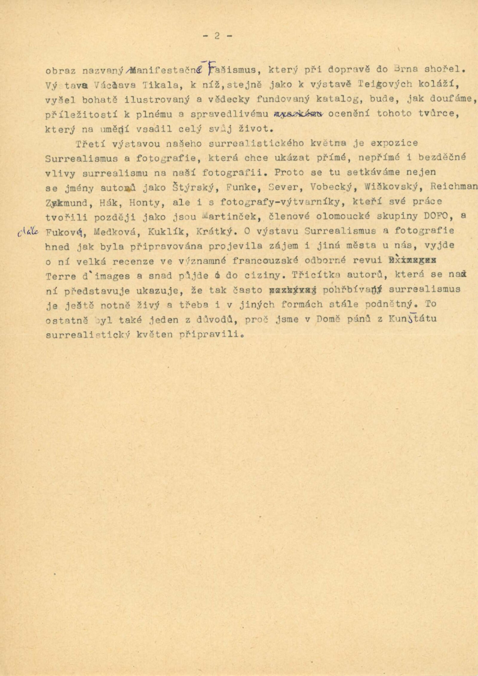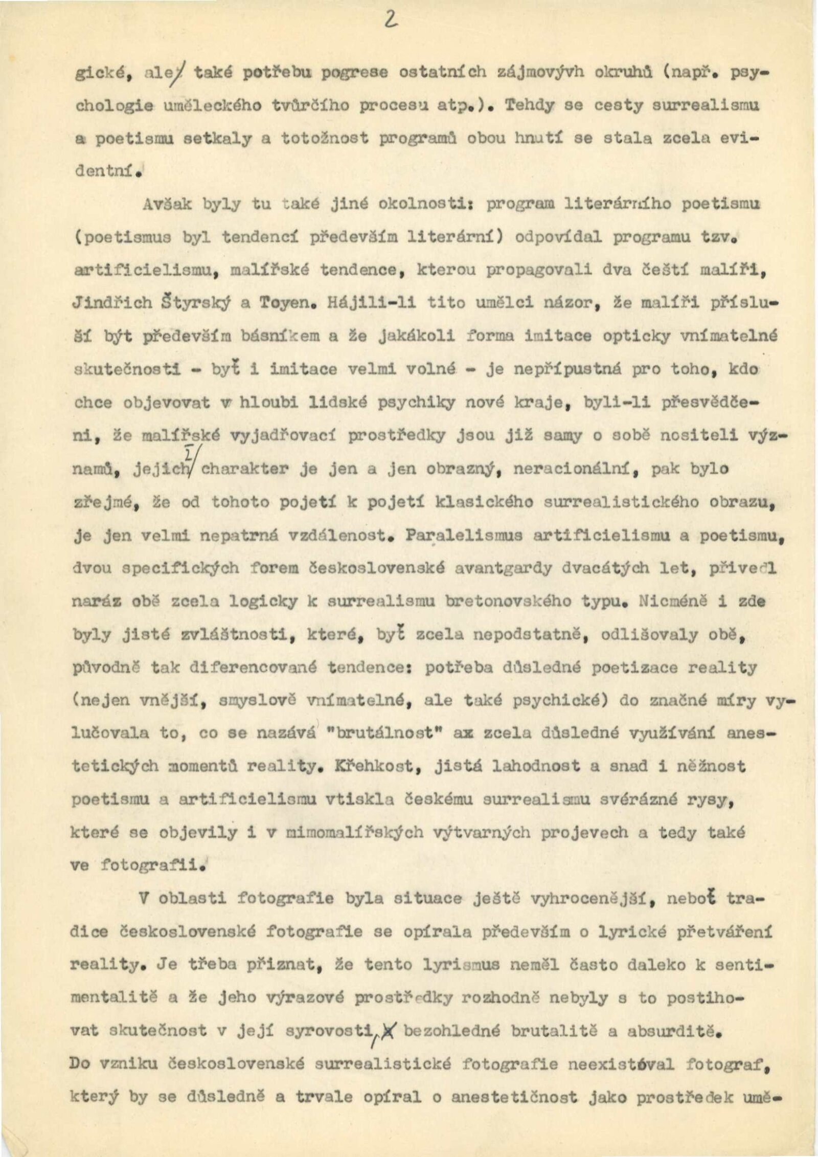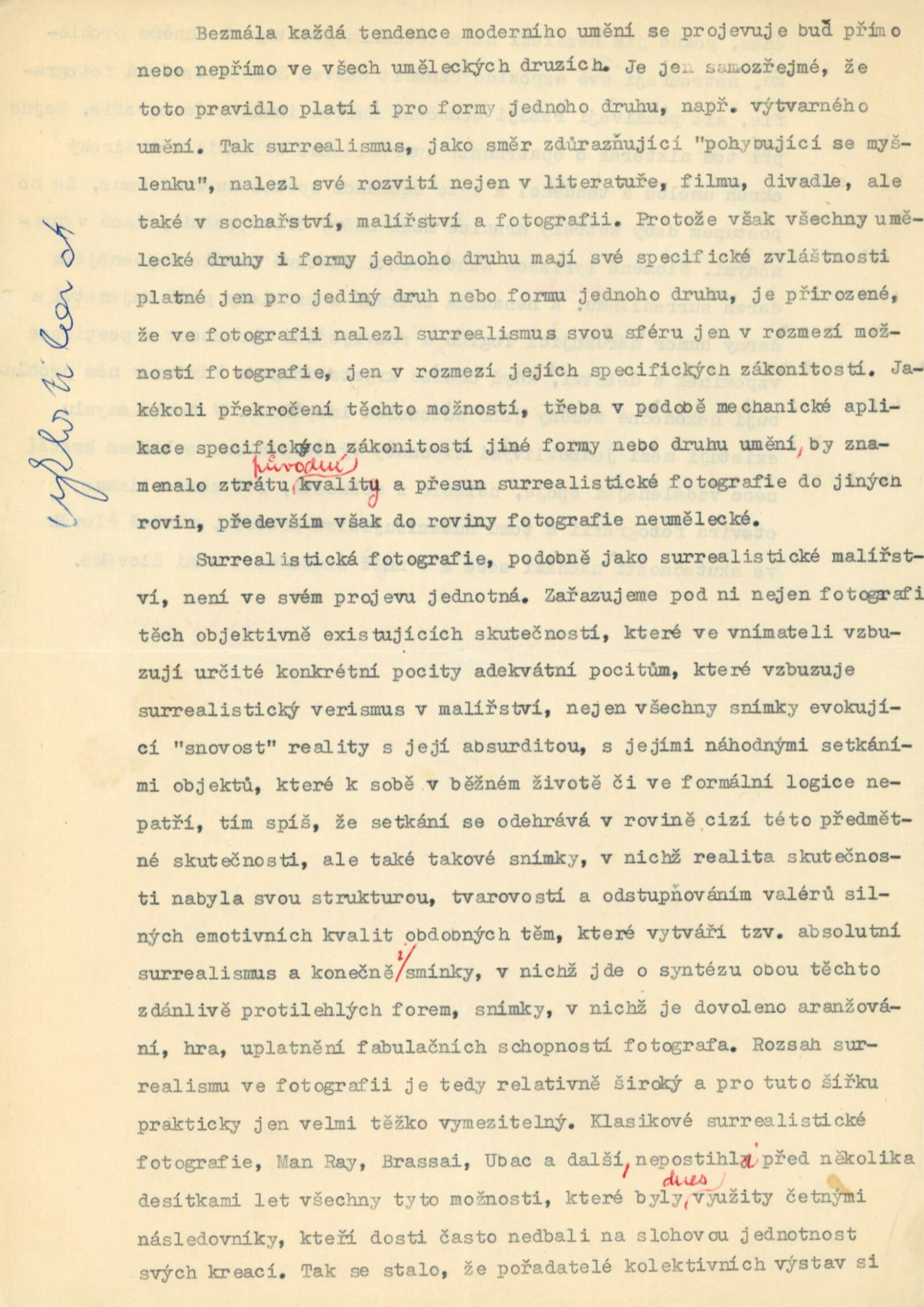 spol. pozvánka DPK 306–308, katalog, fotografie výstavy, seznam autorů a vystavených děl, strojopis textu pro katalog, strojopis textu pro média, korespondence provozní (příprava a výběr umělců), korespondence s umělci (žádosti o zaslání fotografií, přiložené katalogy z výstav umělců: L. Roseová, Č. Krátký, E. Fuková, L. Postupa), recenze v denním tisku, podací lístky; složka SURREALISMUS A FOTO/ pro ESEN: katalog DPK a katalog Karel Teige - DU + Essen, strojopis textu pro katalog (ČJ, NJ), seznam vystavených děl (ČJ, NJ), provozní korespondence, dopisy O. Steinerta, adresy fotografů, korespondence s umělci (doplnění fotografií, souhlasy s výstavou v Essenu), adresy majitelů, protokol o zapůjčení výstavy