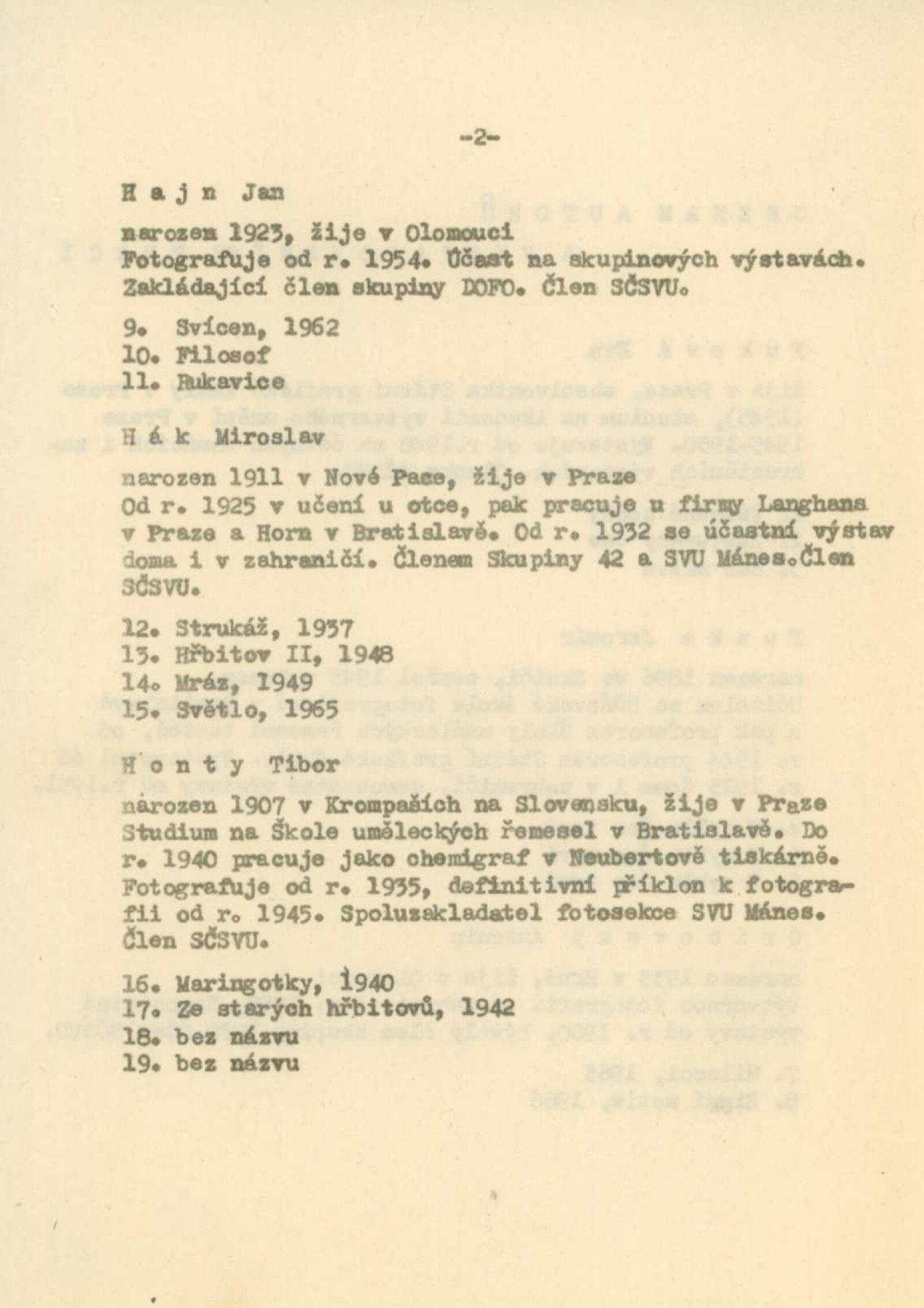 Eva Fuková, Jaromír Funke, Antonín Gribovský, Jan Hajn, Miroslav Hák, Tibor Honty, Václav Chochola, Jaromír Kohoutek, Běla Kolářová, Miloš Koreček, Čestmír Krátký, Karel Kuklík, Rupert Kytka, Bohdan Lacina, Martin Martinček, Emila Medková, Ladislav Novák, Alois Nožička, Ladislav Postupa, Ivo Přeček, Vilém Reichmann, Lucie Roseová, Jaroslav Rössler, Vladimír Rybička, Jiří Sever, František Vobecký, Eugen Wiškovský, Václav Zykmund