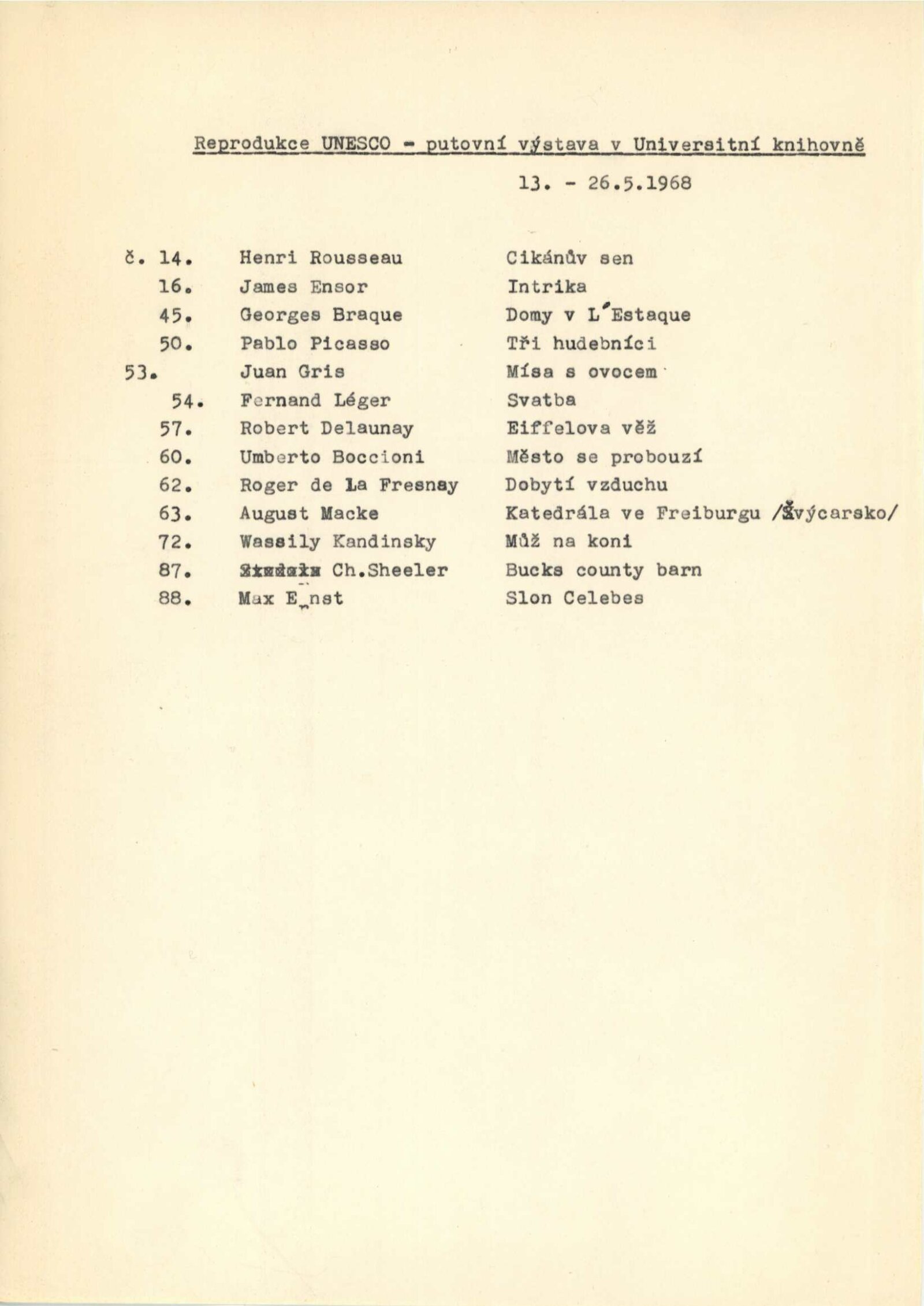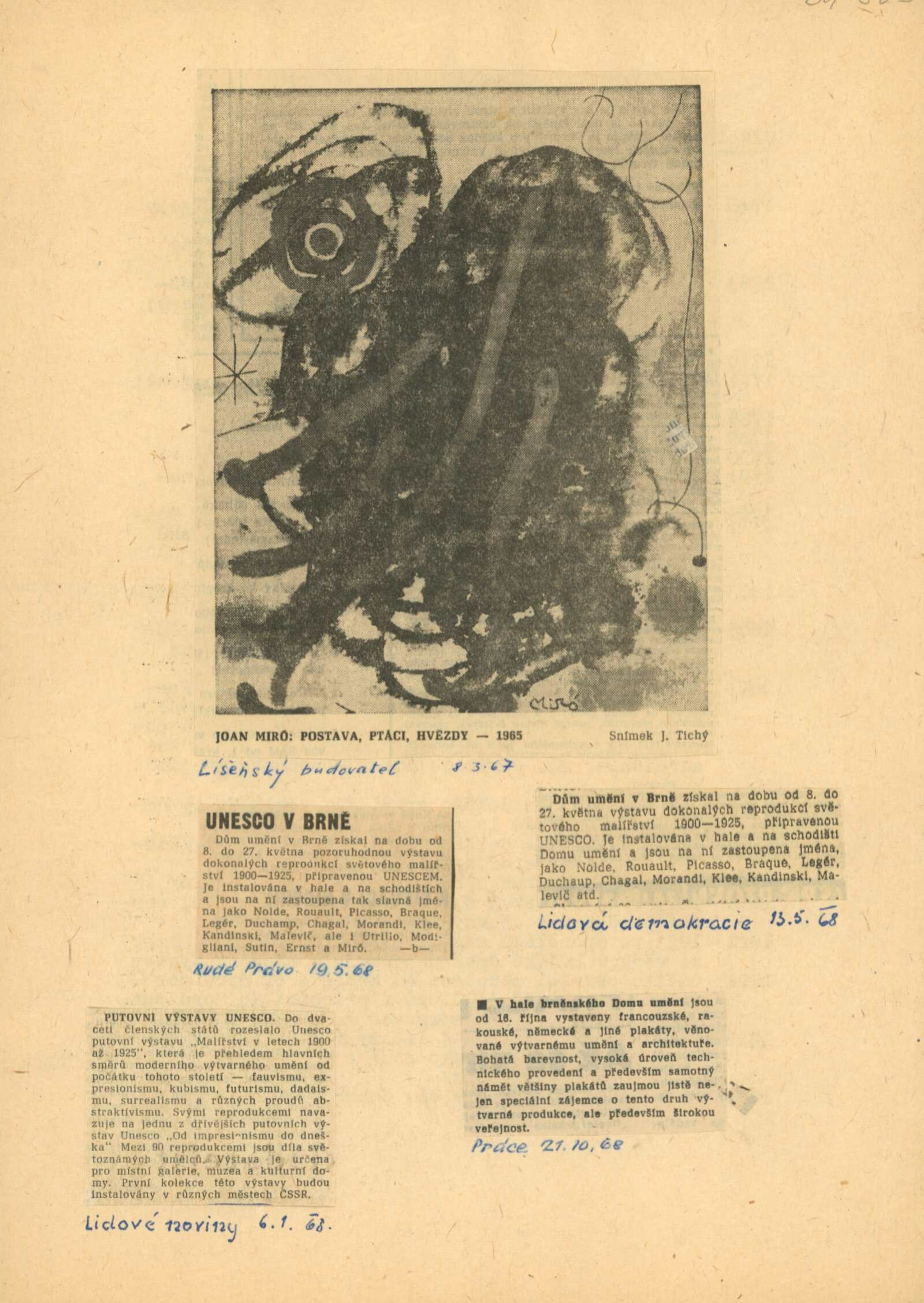 tištěný text k výstavě (F. Meyer), seznam reprodukcí, provozní korespondence (o realizaci výstavy v AJG Hluboká, muzeu v Písku a DU), recenze v tisku, pozvánka (KG v Hradci Králové), nabídka výstavy (z NG Praha)