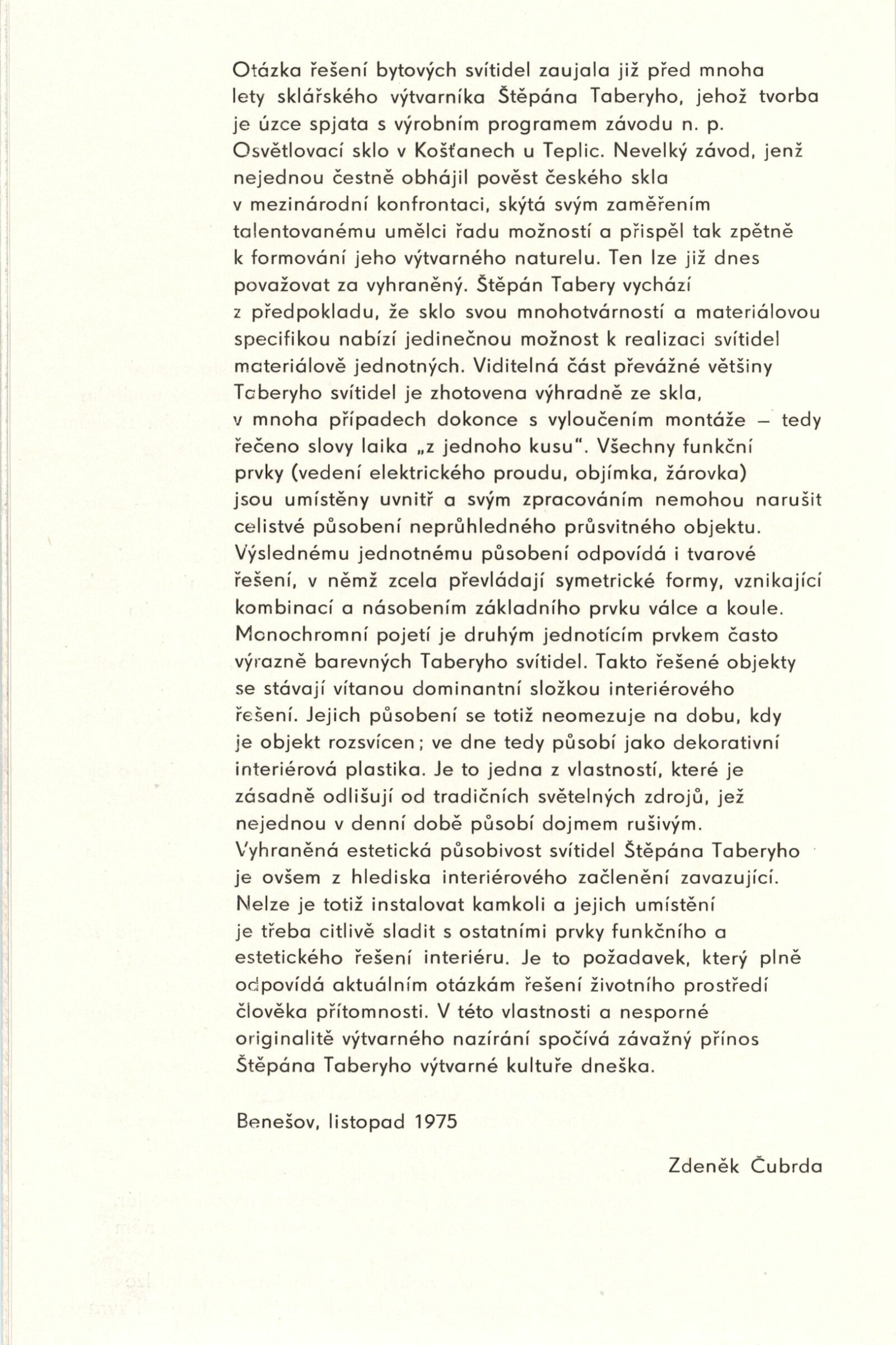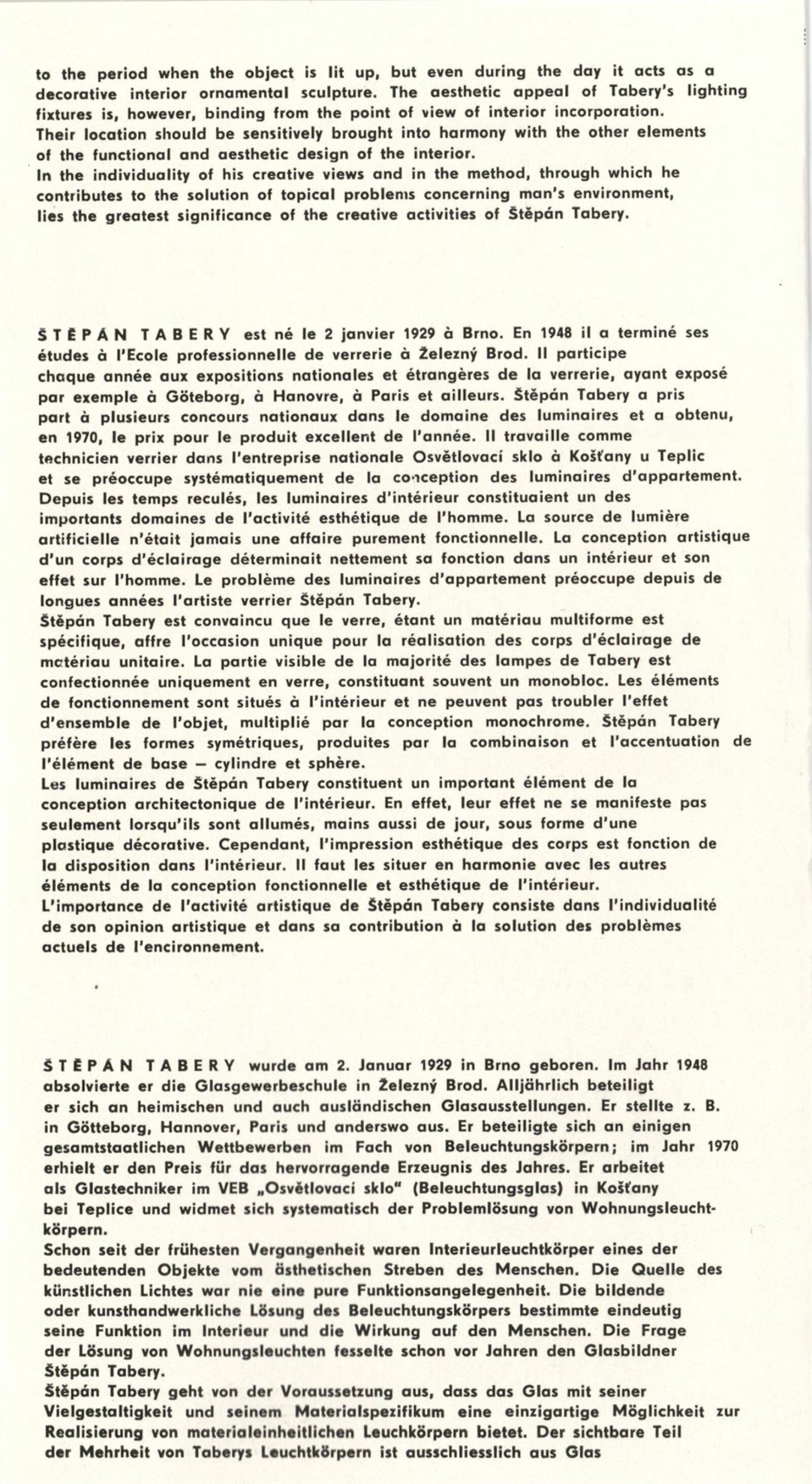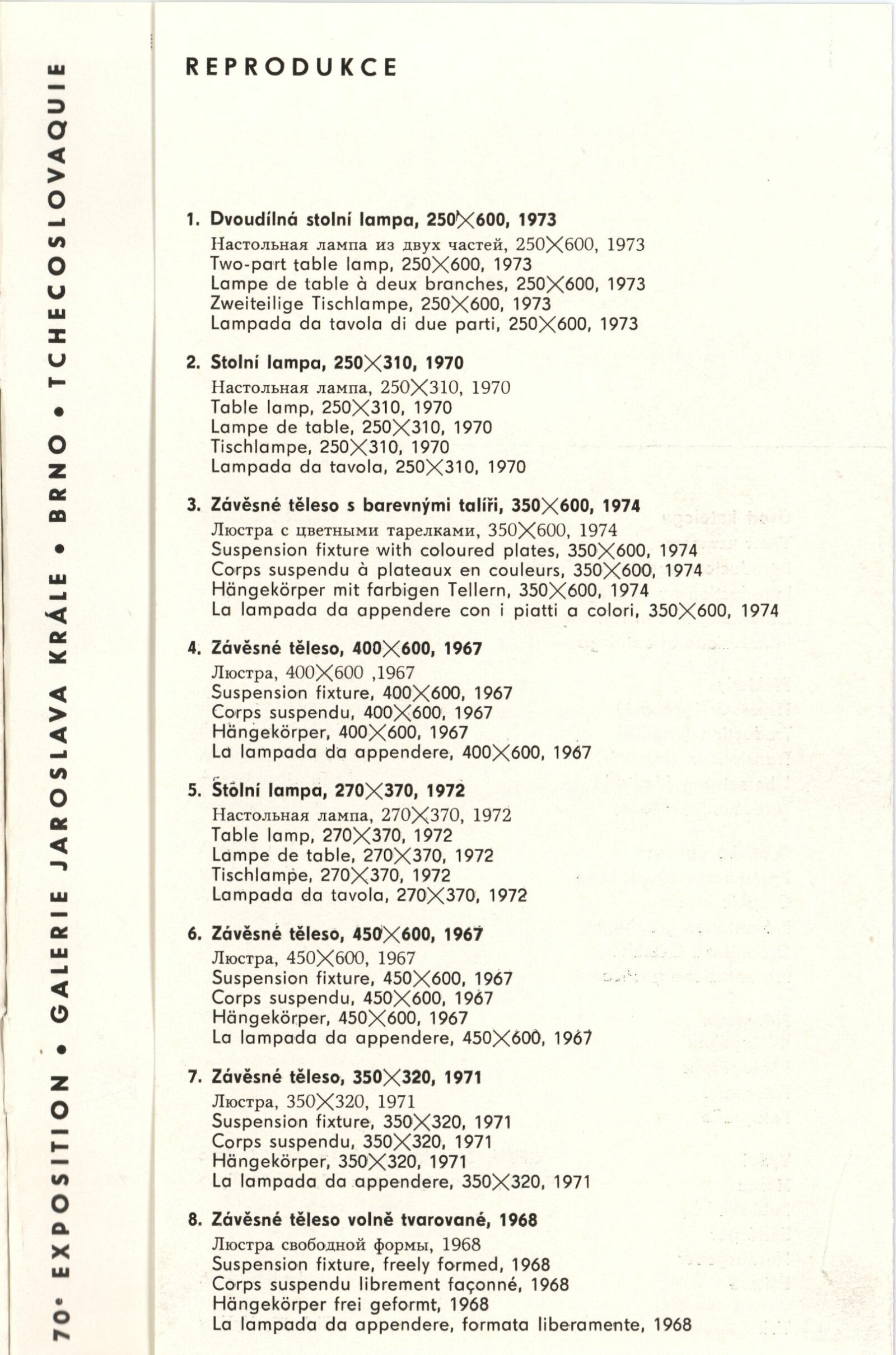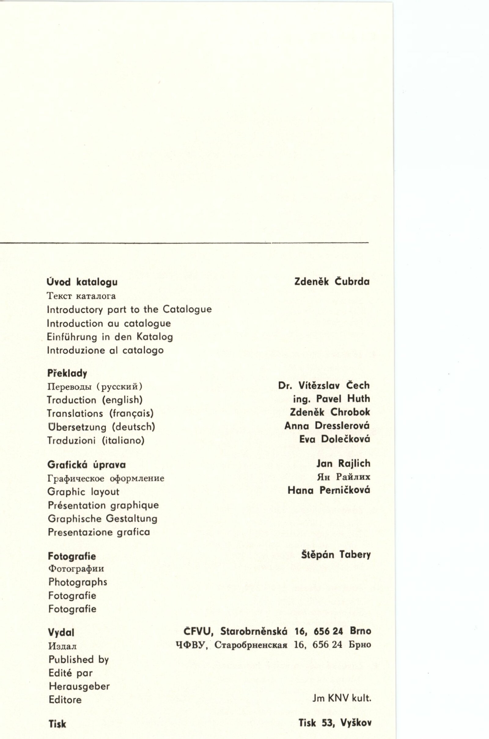 Sylva Řepková. Tapiserie v architektuře: Dům umění, 70. výstava v Galerii Jaroslava Krále, 20. 1. – 22. 2. 1976 / Text: Zdeněk Čubrda. – Brno: ČFVU, 1976. – 10 s., obr., seznam vystavených prací 1 s., portrét, životní data, seznam výstav, DU 633. – MZK; MG / Štěpán Tabery. Osvětlovadla: Dům umění. 70. výstava v Galerii Jaroslava Krále, 20. 1. – 22. 2. 1976 / Text: Zdeněk Čubrda. – Brno: ČFVU, 1976. – 10 s., obr., seznam vystavených prací 2 s., portrét, životopis, DU 633. – MZK; MG; MMB