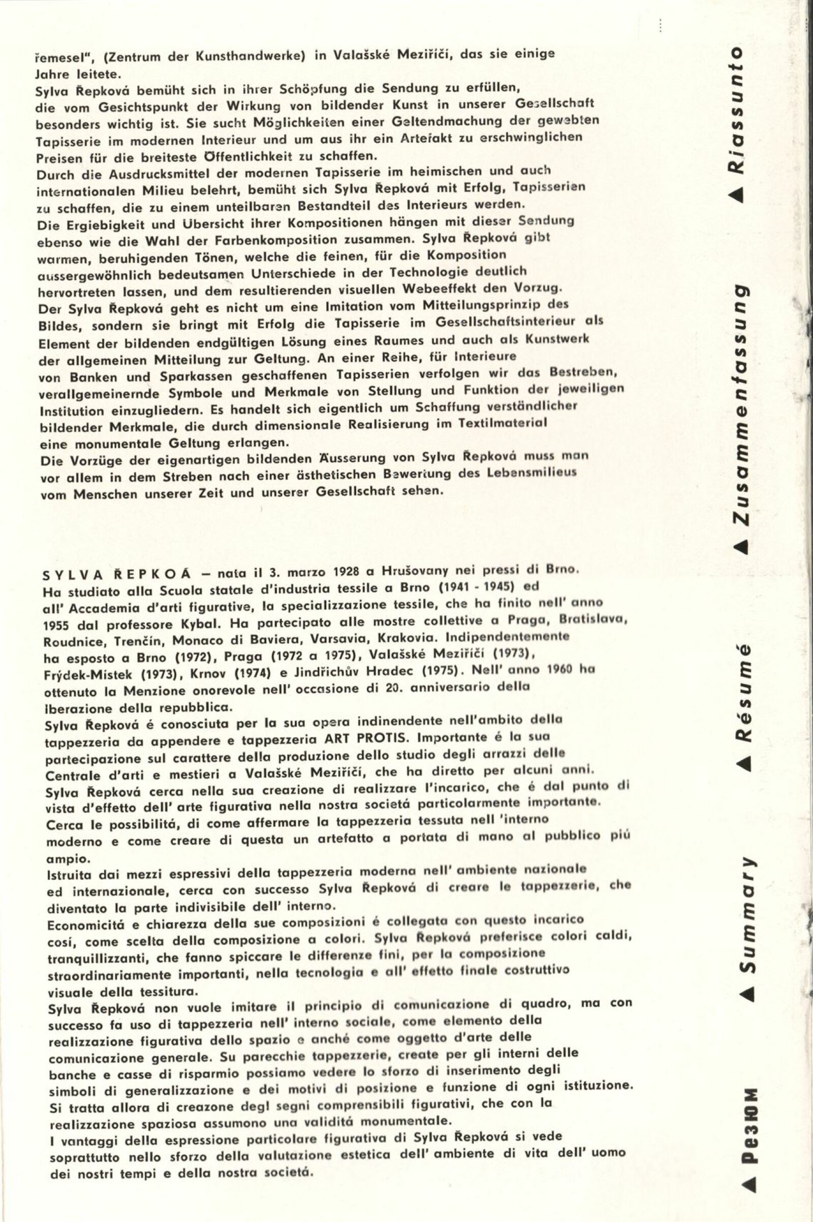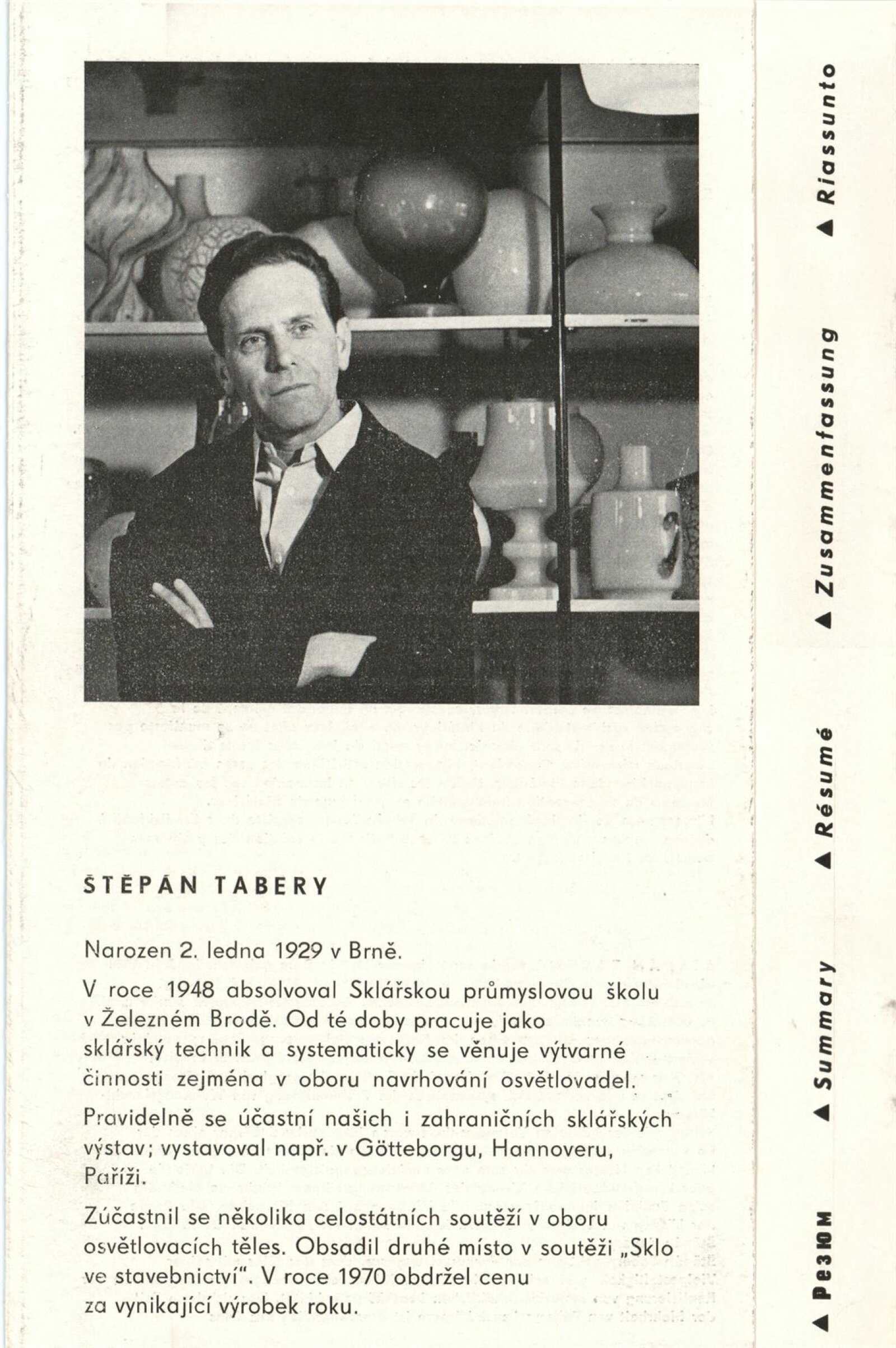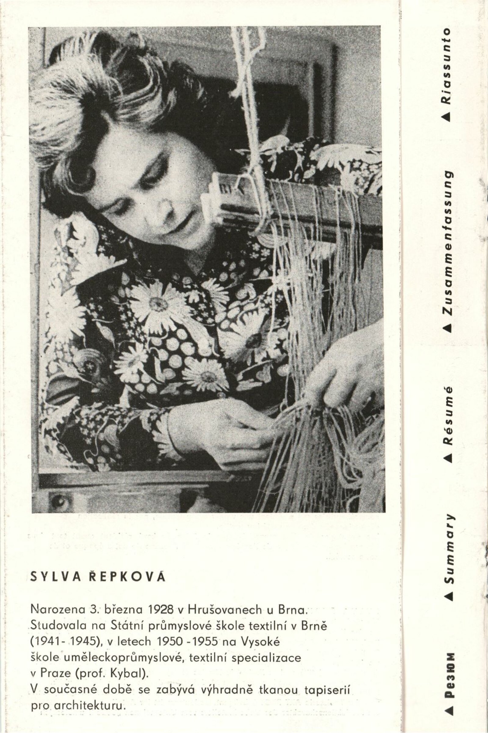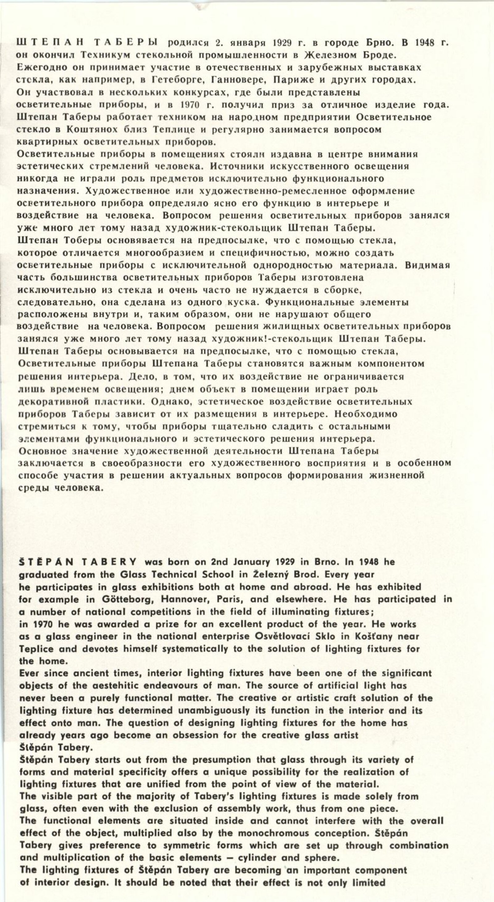 Sylva Řepková. Tapiserie v architektuře: Dům umění, 70. výstava v Galerii Jaroslava Krále, 20. 1. – 22. 2. 1976 / Text: Zdeněk Čubrda. – Brno: ČFVU, 1976. – 10 s., obr., seznam vystavených prací 1 s., portrét, životní data, seznam výstav, DU 633. – MZK; MG / Štěpán Tabery. Osvětlovadla: Dům umění. 70. výstava v Galerii Jaroslava Krále, 20. 1. – 22. 2. 1976 / Text: Zdeněk Čubrda. – Brno: ČFVU, 1976. – 10 s., obr., seznam vystavených prací 2 s., portrét, životopis, DU 633. – MZK; MG; MMB