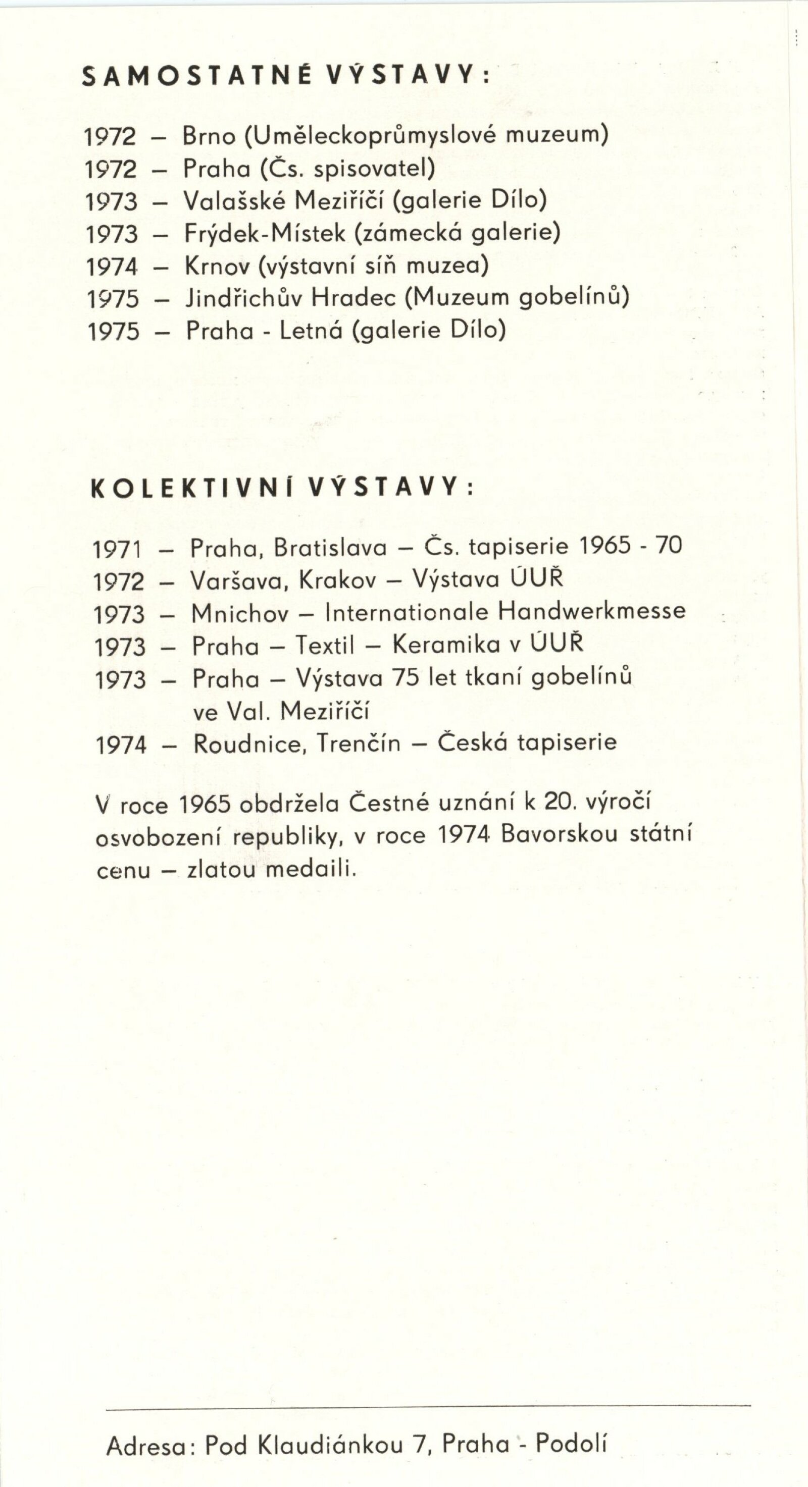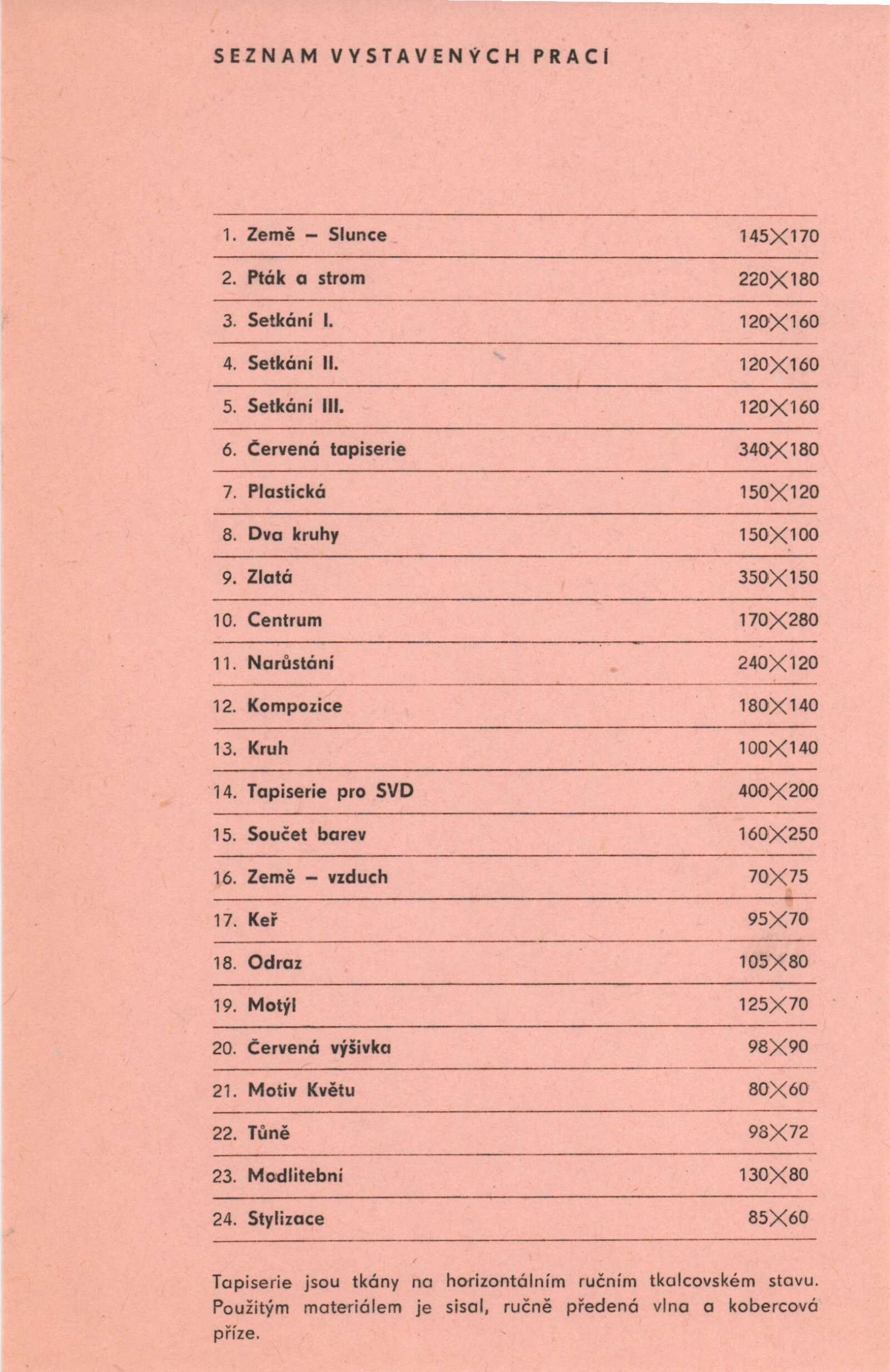 pozvánka, katalog, fotografie děl, provozní korespondence, inspekční zpráva z výstavy, recenze v tisku