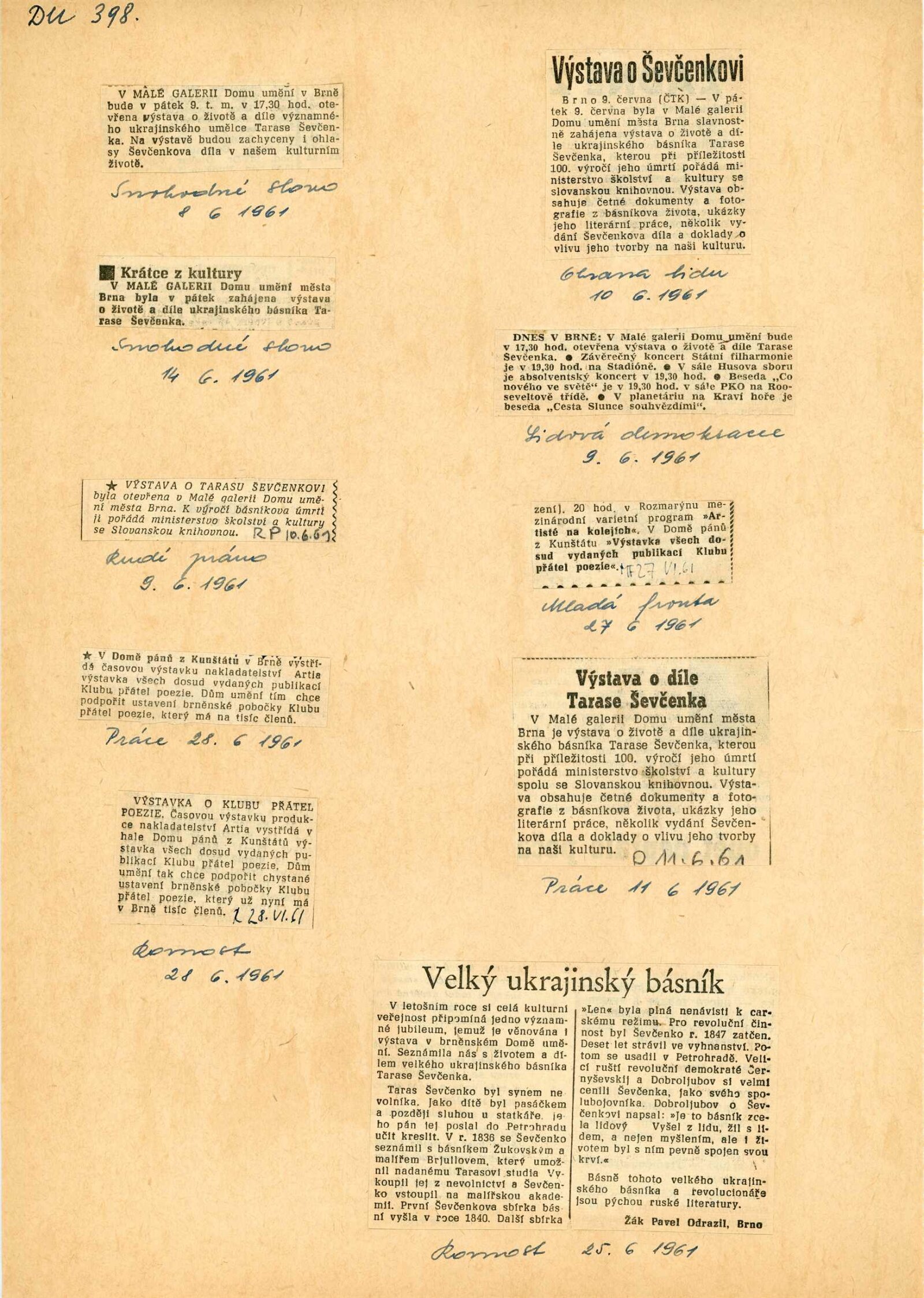 korespondence o realizaci výstavy, protokol o převzetí exponátů, zprávy v tisku, bibliografie
