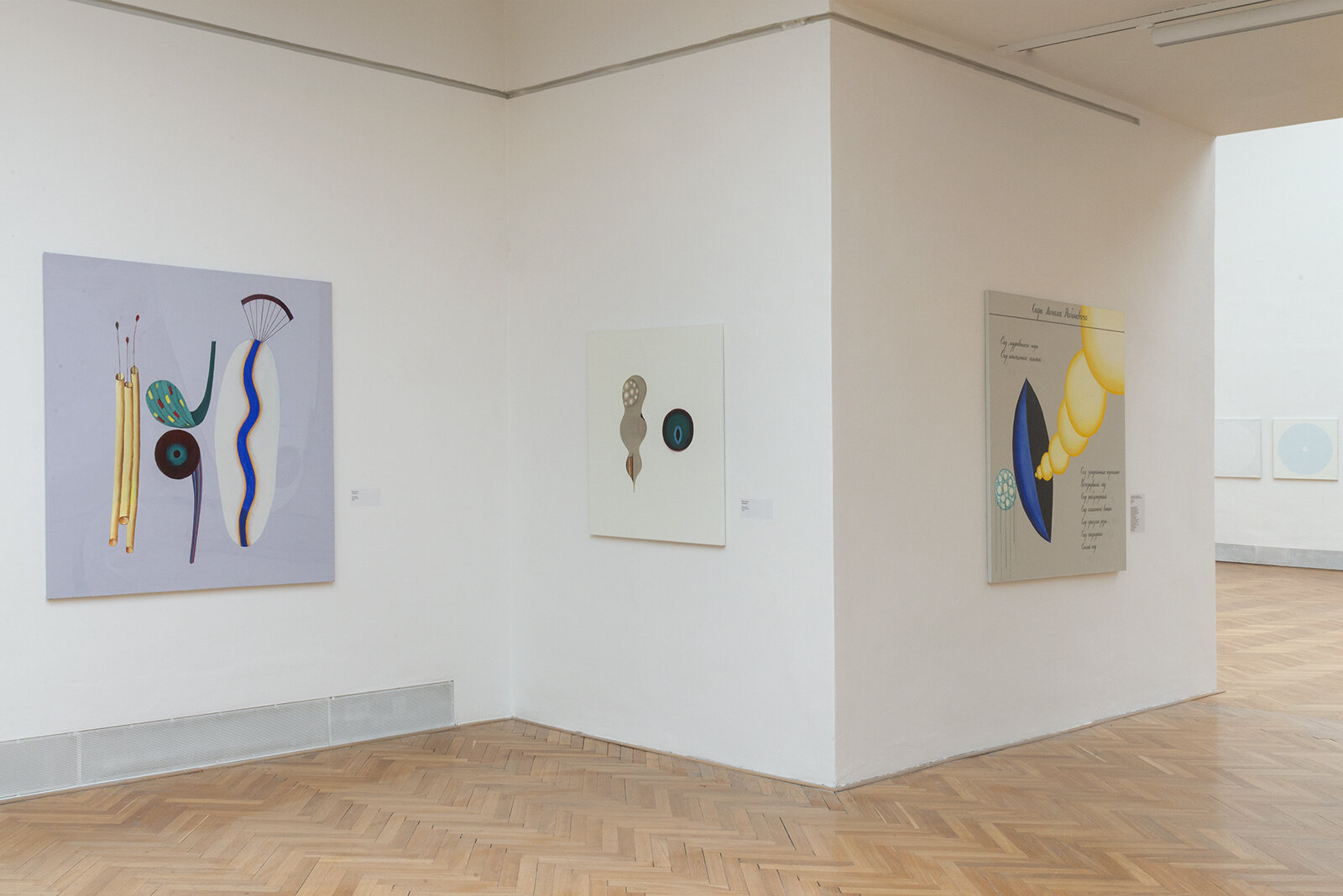 The whole exhibition is conceived as a journey through the various exhibition rooms, which can be perceived as special gardens. We can walk in the musical, yellow, June, eidetic, nocturnal or lost garden. Not to mention The Gardens of the Monk Rabinovich representing a distinctive plant kingdom. Each room-garden shows completely different painting cycles and albums whose common link is a very fragile, original poetics.