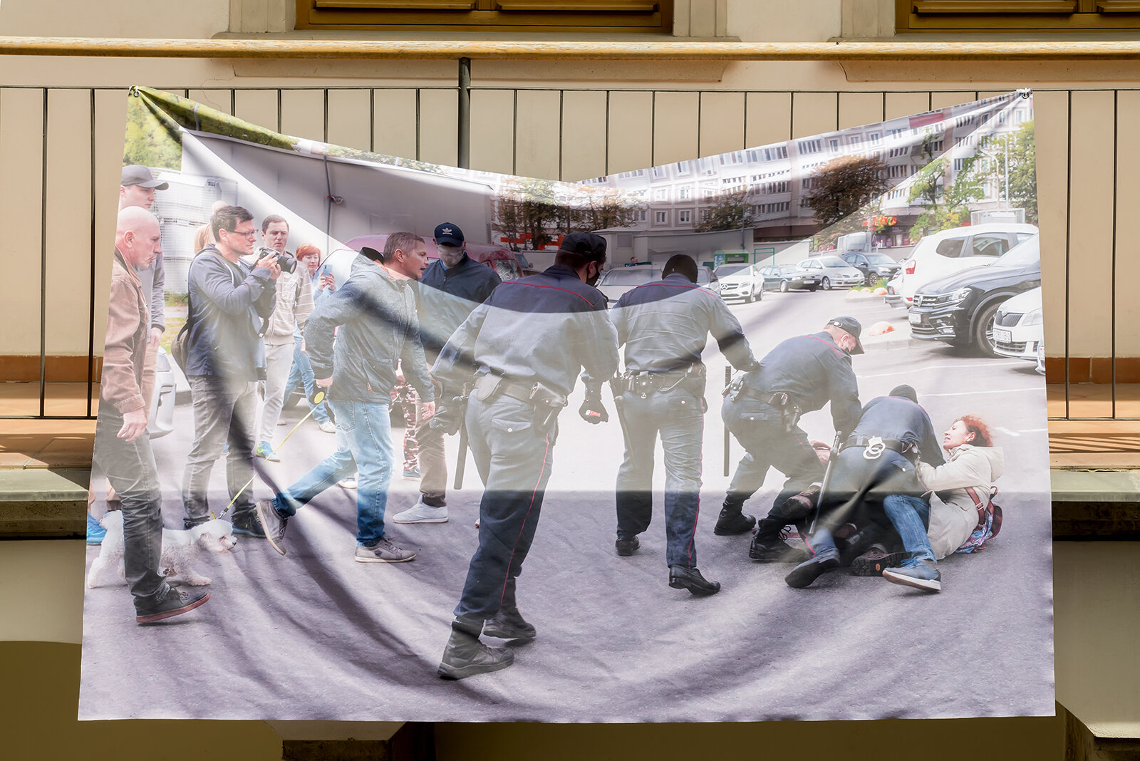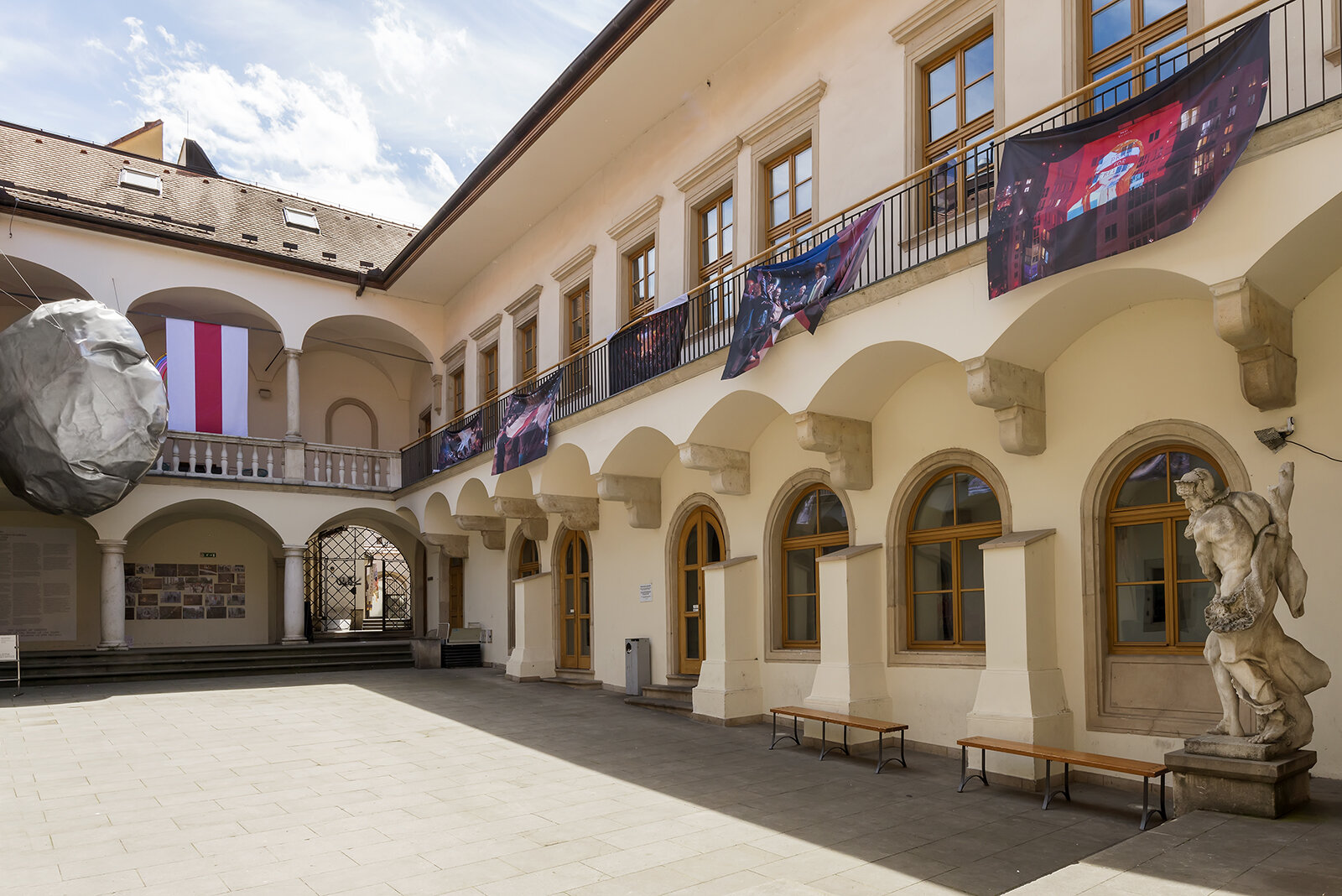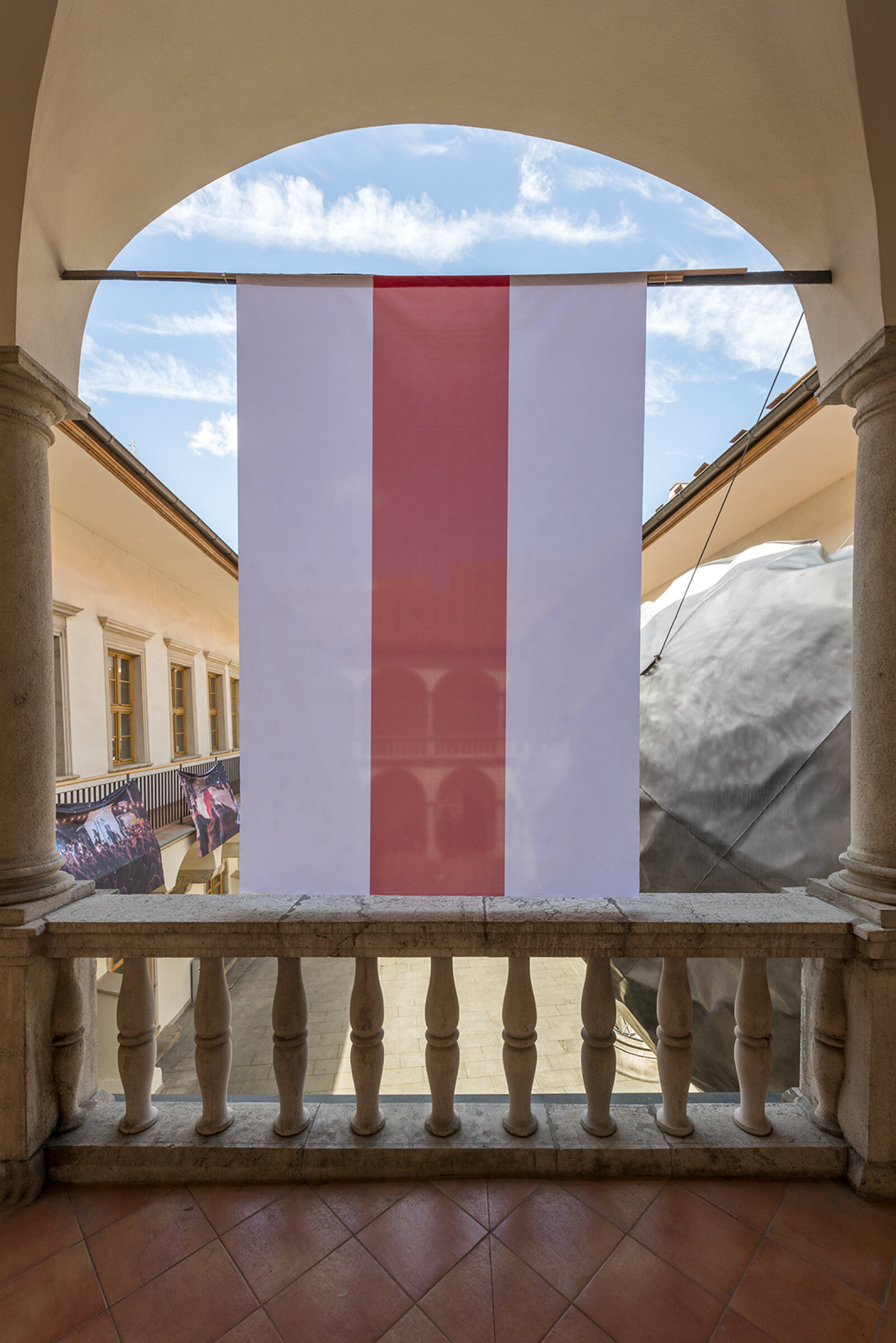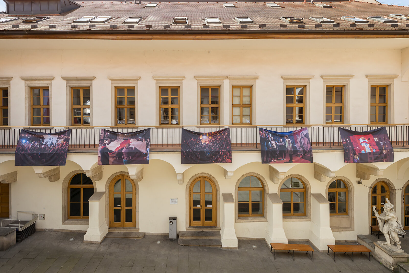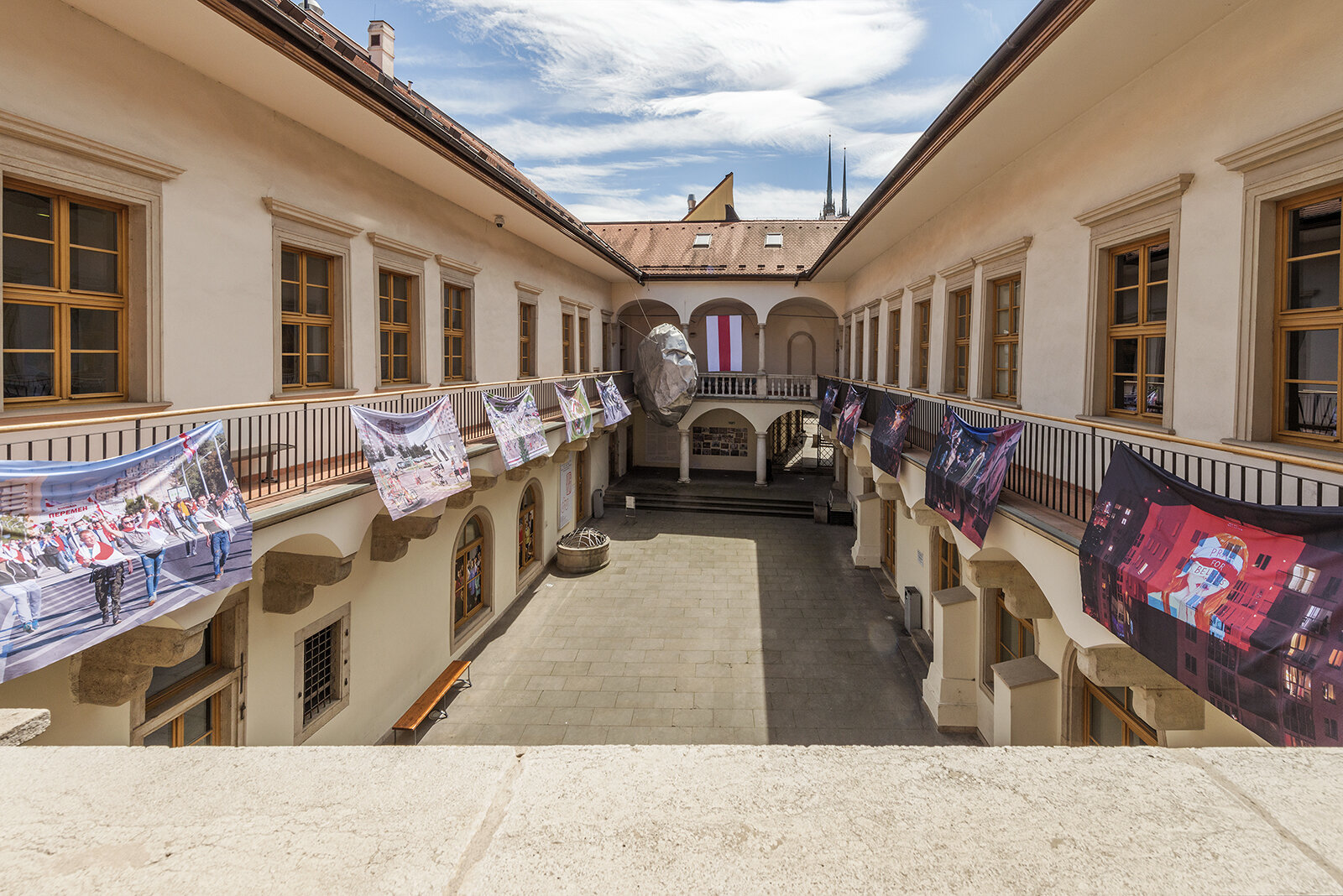 The series of photographs by Yauhen Attsetski was installed in the court of the House of the Lords of Kunštát by architect Ondřej Bělica with the aim of developing the idea of a place of importance for people to meet and express their personal and political attitudes.