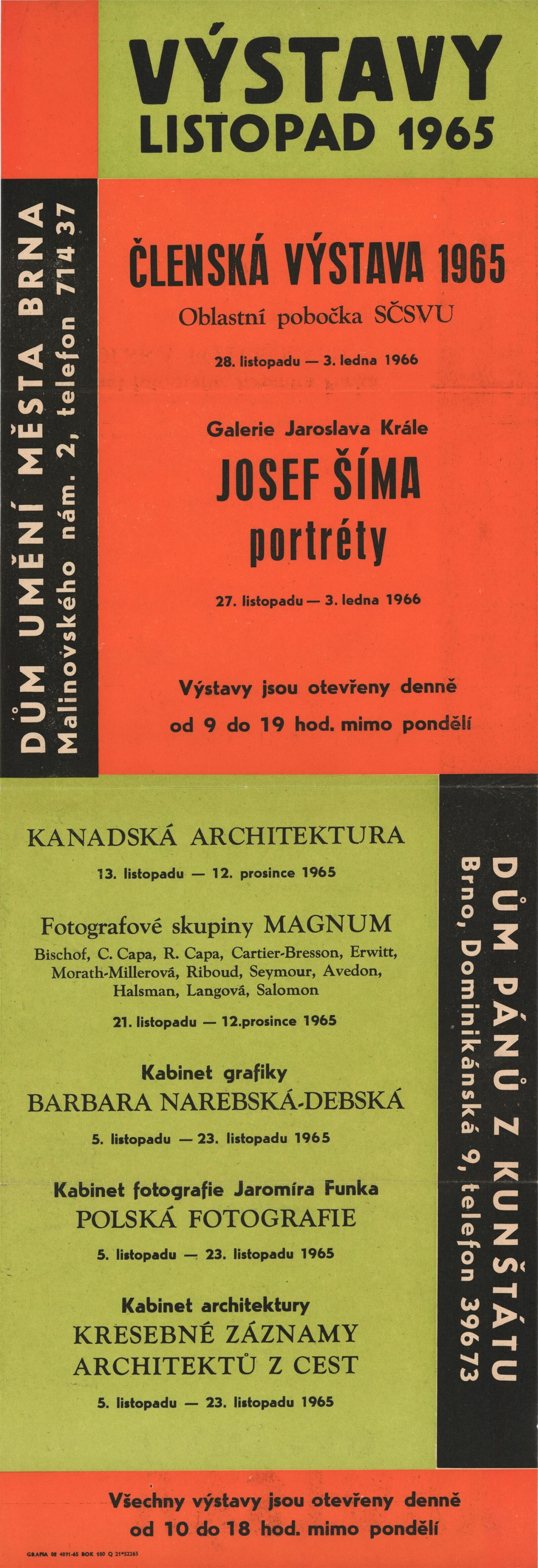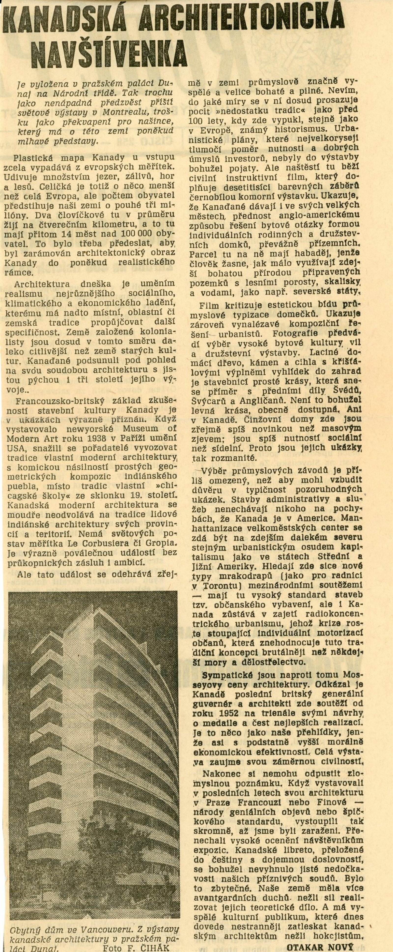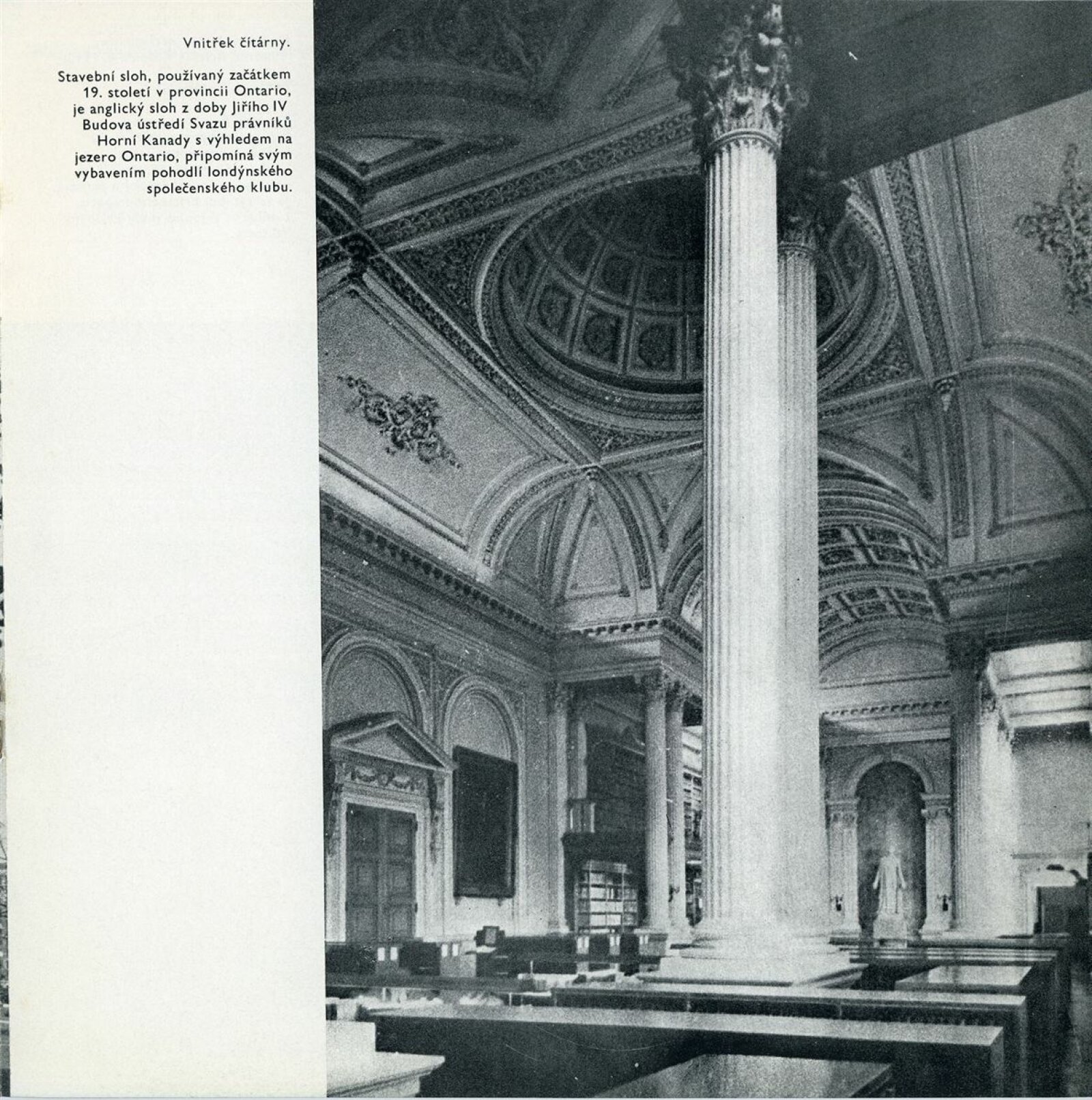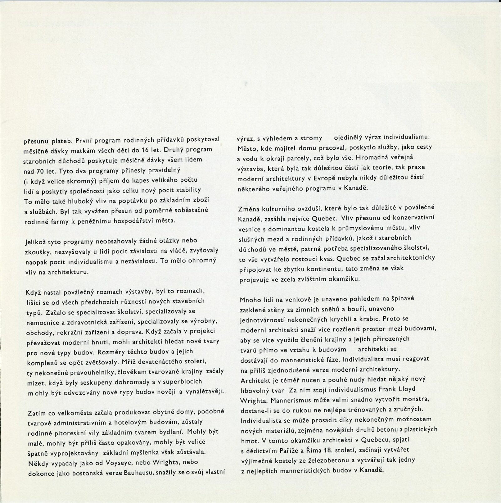 Tři století kanadské architektury: Dům umění města Brna / Dům pánů z Kunštátu, 13. 11. – 12. 12. 1965 / Katalog putovní výstavy. Tři století architektury v Kanadě: Kanadské velvyslanectví, červen / Praha: Kanadské velvyslanectví. – 26 s., obr., stručný přehled vývoje architektury v Kanadě (připravený pro kanadskou vládní výstavu W. S. Gouldingem), DPK 287. – MZK; MG