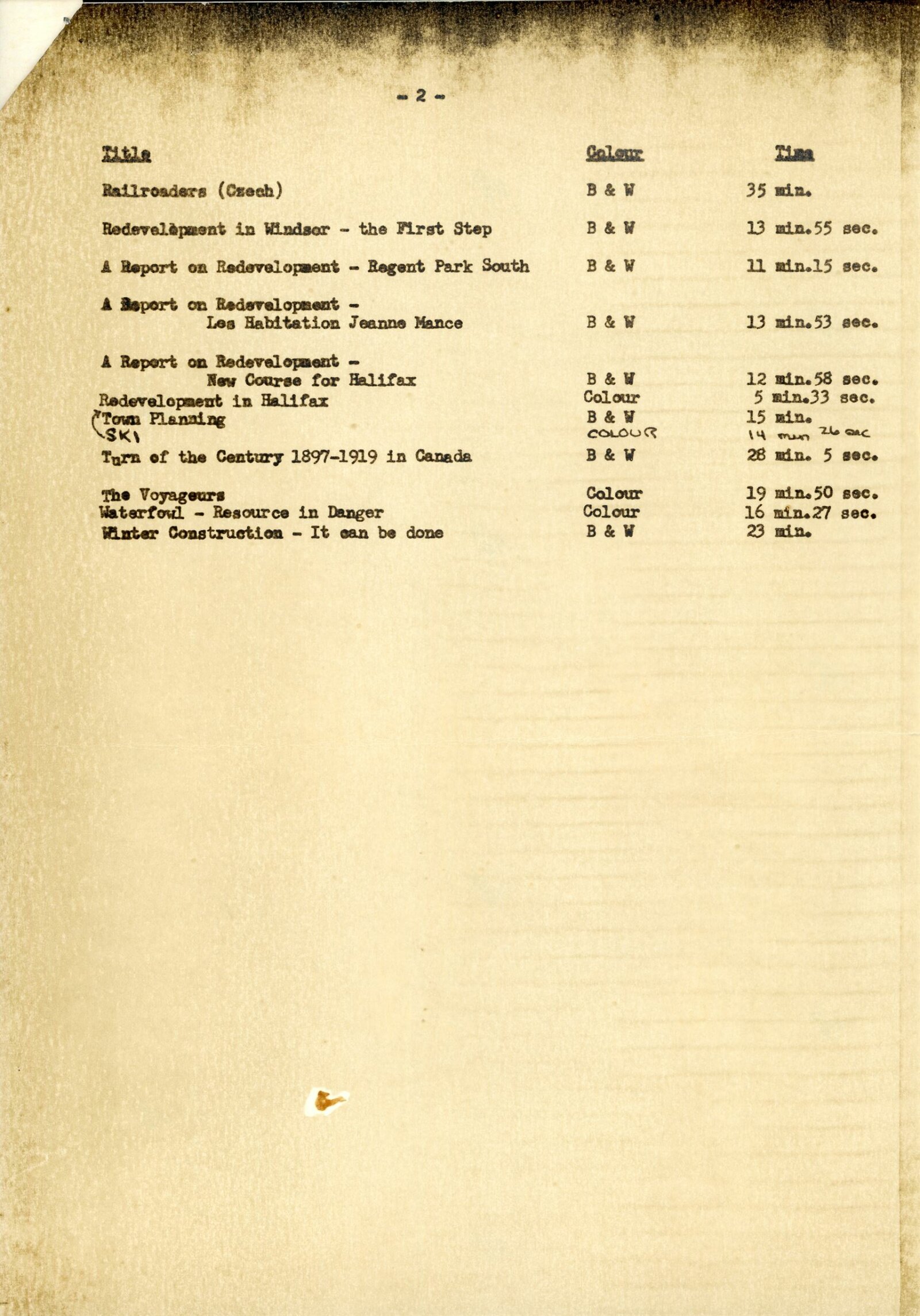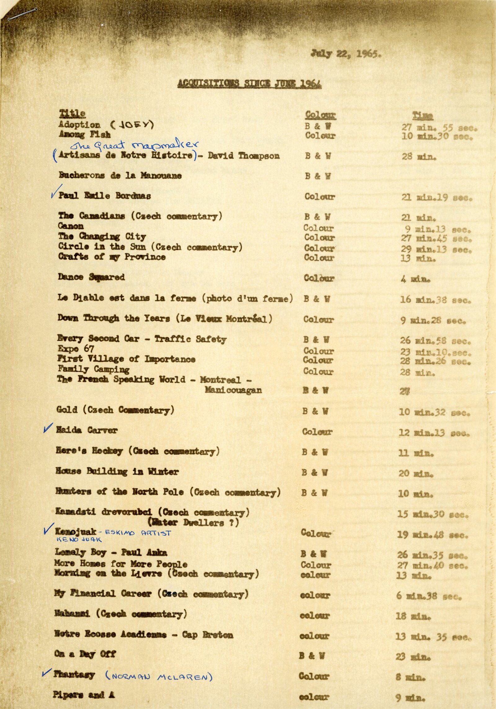pozvánka, katalog, karta k výstavě, společný plakát DPK 284–286, 288 a DU 448, seznam vypůjčených filmů, fotografie z vernisáže, korespondence (DU + Kanadská ambasáda, C. D. Fogerty, provozní korespondence), recenze v tisku, propagační letáky o Kanadě, cizojaz. materiály o Kanadě (Canada from sea to sea, Journal, Habitat), katalog Malebná Kanada