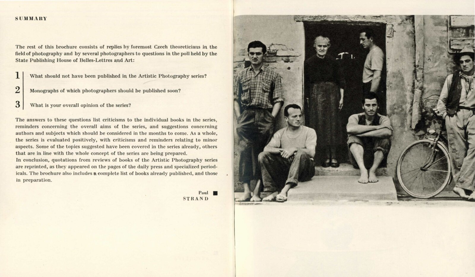 Eugène Atget, Werner Bischof, Brassaï, Robert Capa, Henri Cartier-Bresson, Ján Cifra, František Drtikol, Josef Ehm, Eva Fuková, Jaromír Funke, Karel Hájek, Miroslav Hák, Tibor Honty, Victor M. Chagas dos Santos, Jiří Jeníček, Václav Jírů, Karol Kállay, Karel Ludwig, Jan Lukas, Emila, Medková, László Moholy-Nagy, Nadar, Jan Pařík, Josef Prošek, Man Ray, Vilém Reichmann, Alexandr Rodčenko, Drahomír J. Růžička, Edward Steichen, Alfred Stieglitz, Paul Strand, Josef Sudek, Edward Weston, Eugen Wiškovský