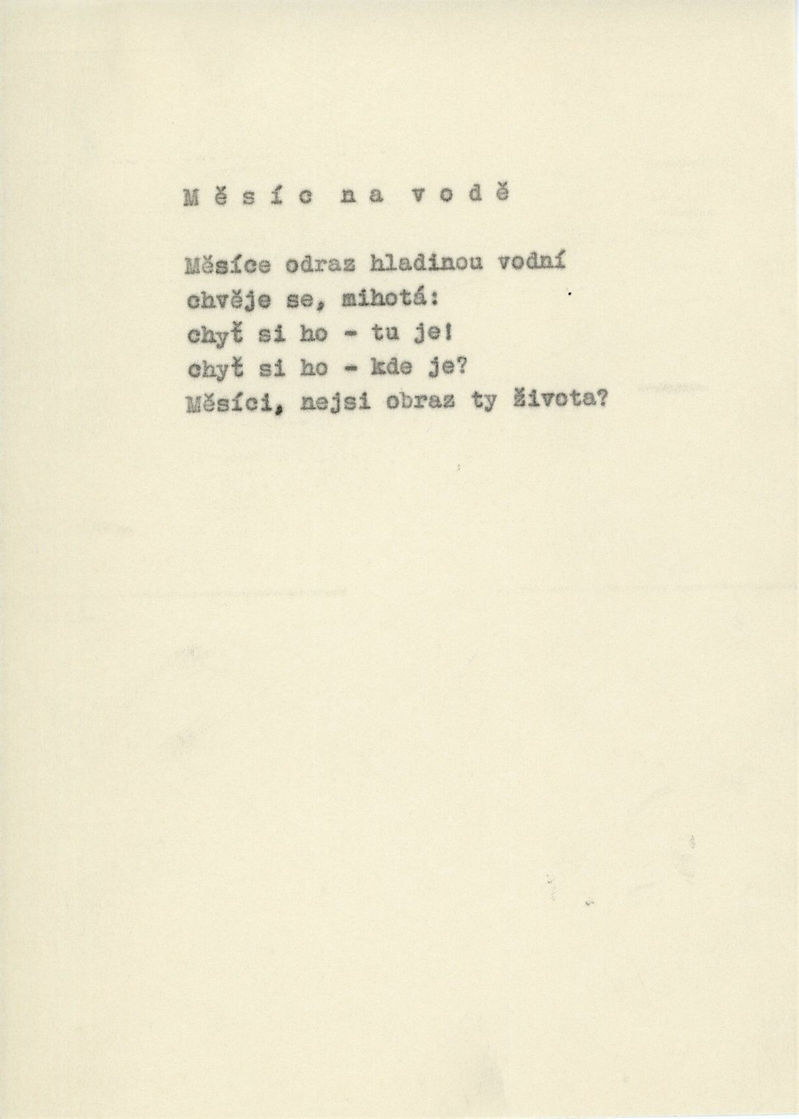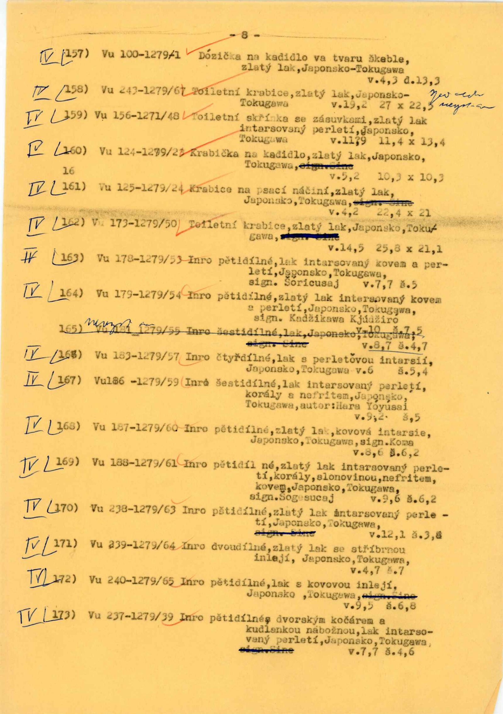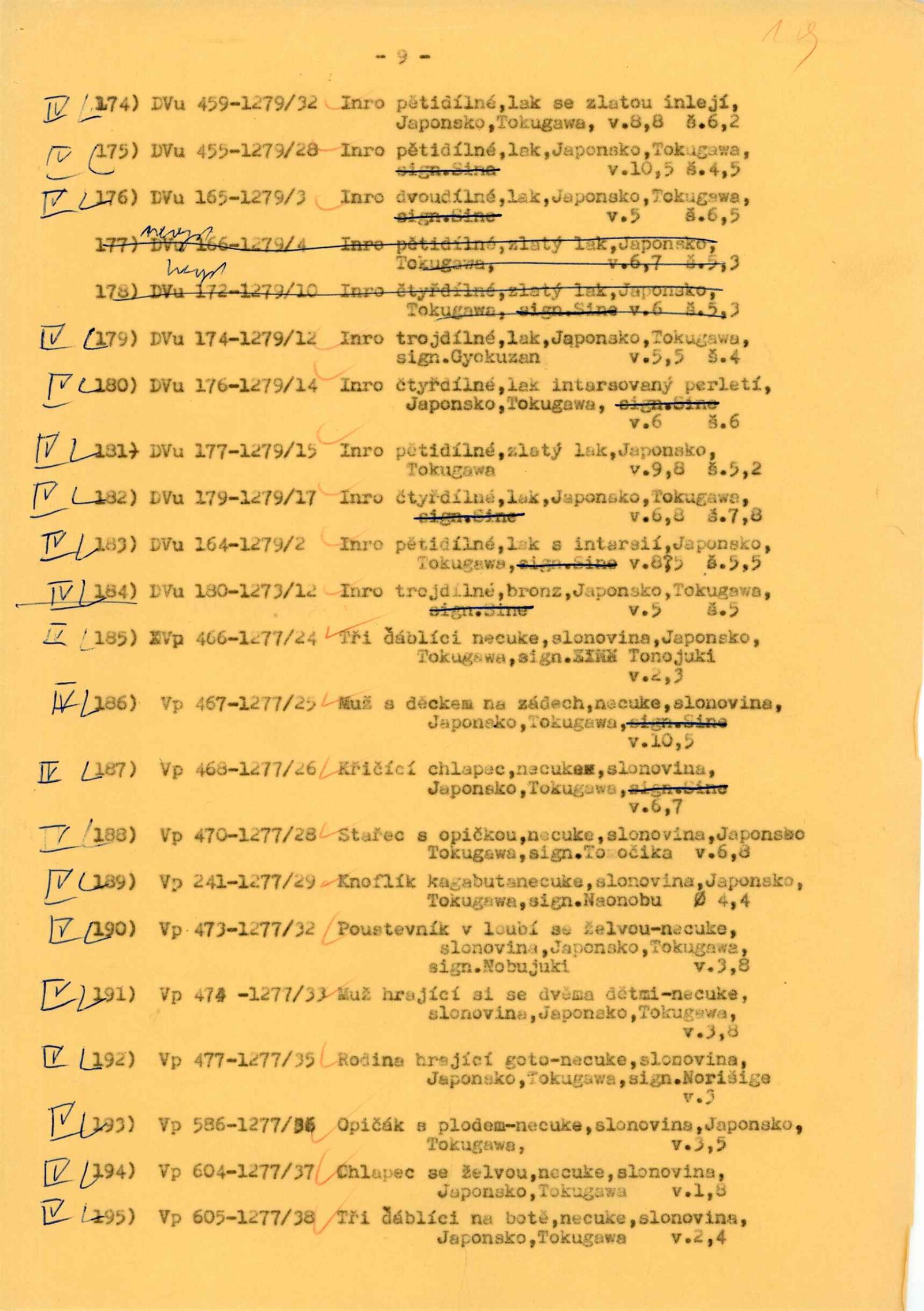 katalog, strojopis Verše psané na vodu, text katalogu, soupis exponátů s rozvržením pro instalaci výstavy, fotografie exponátů a instalace, žádost o povolení výstavy, korespondence (s Náprstkovým muzeem, poděkování řediteli NG J. Kroftovi), seznam pozvaných zemí, dokumentace o instalačním zařízení, reverzy, recenze v tisku