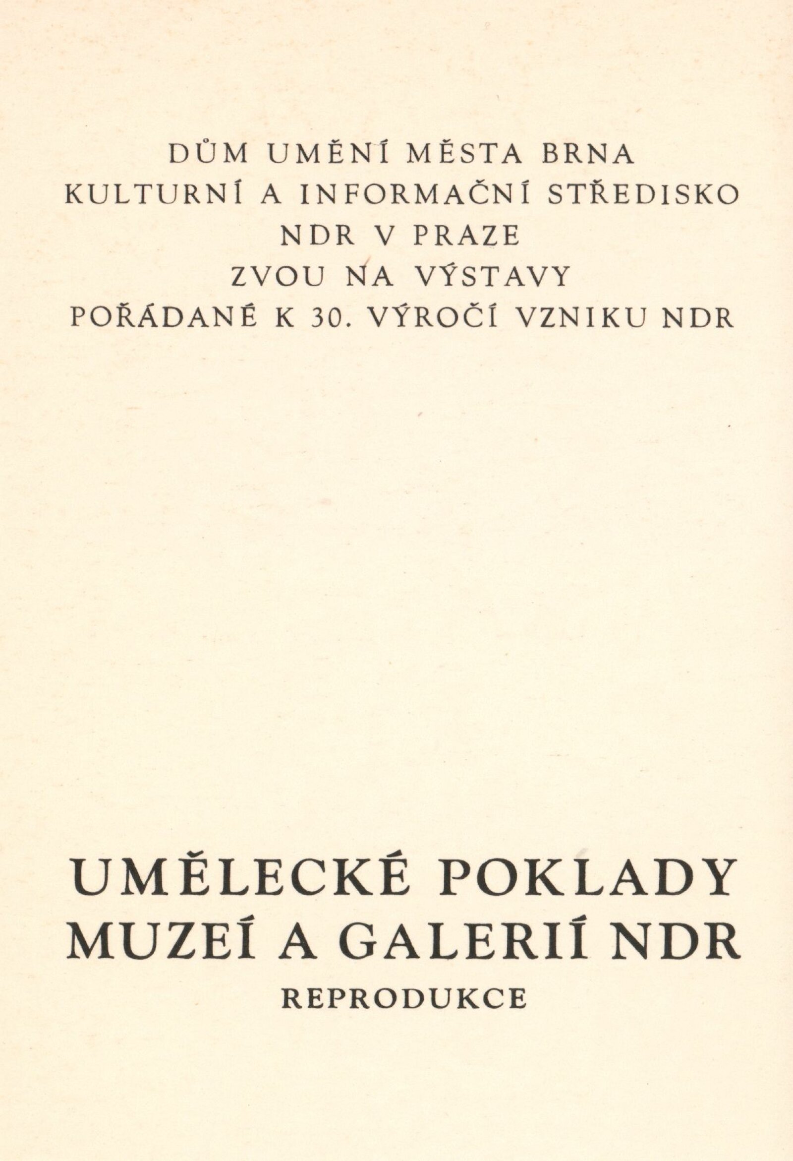 Výstava byla uspořádána k 30. výročí vzniku NDR ve spolupráci s Kulturním a informačním střediskem NDR v Praze.