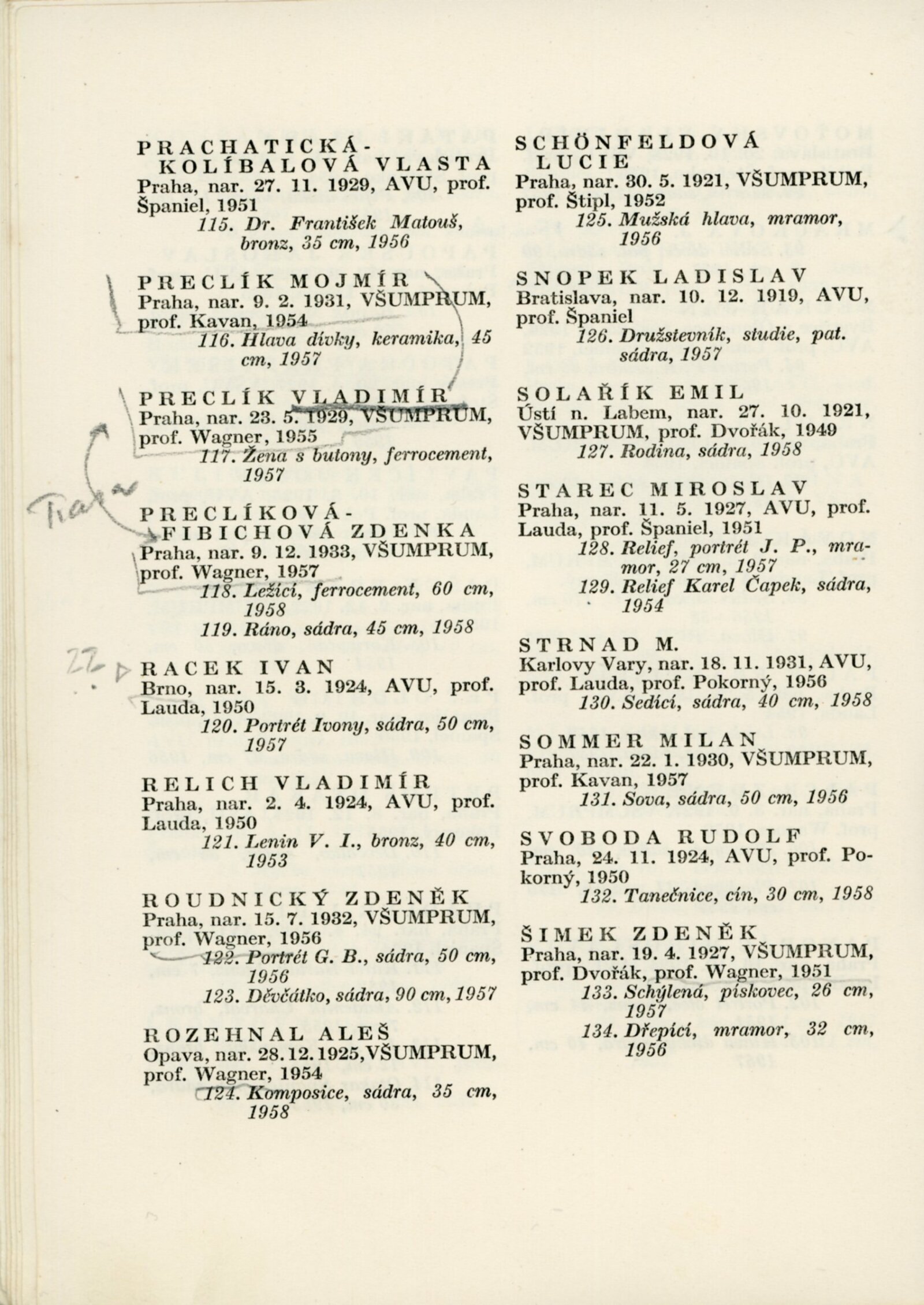 Svetozár Abel, Arno Quido Adamec, Milan Albich, Jaroslav Alt, Alena Antonská, Vojtěch Baďura, Jozef Baláž, Jiří Balcar, Miloš Balcer, Theodor Baník, Andrej Barčík, Igor Bartfaj, Rek Bartoš, Olga Bartošíková, Jana Bartošová-Laštovková, Vladislav Bauer, Věra Bejrová-Růžičková, Karel Beneš, Vlastimil Beneš, Jiří Berger, Vlastimil Berger, František Bič, Vladimír Bidlo, Alexandr Beran, Karel Benedikt, Václav Beránek, Jiří Bíma, Jaroslav Bobek, Svatoslav Böhm, Adolf Born, František Burant, Eva Burešová, Luděk Burianek, Andrej Bělocvětov, Jiří Bradáček, Ladislav Branč, Josef Bravenec, Zdeněk Brdlík, Božena Bruderhansová, Květoslav Bubeník, Zdeněk Budínský, Josef Bulant, František Burant, Eva Burešová, Jitka Buňatová, Otto Cienciala, Jan Cihla, Jiří Corvin, Stanislav Čáp, Vlasta Čančíková, Radoslav Čáslavský, Miloš Čech, lga Čechová, Mojmír Čevela, František Čermák, Běla Čermáková, Stanislava Červenková, Jarmila Čihánková, Marian Čunderlík, Anton Čutek, Olga Daňková, Drahomíra Dařenová, Hugo Demartini, Irena Dědičová, Václav Dlouhý, Milan Dobeš, Čeněk Dobiáš, Vladimír Doležal, Věra Doupníková, Jaroslav Drahokoupil, Oldřich Drahotušský, Vladimír Drápal, R. Dubravec, Rudolf Ducháč, František Dvořák, Ljuba Durďáková, Olga Fejková-Zelinková, Alina Ferdinandyová, Julian Filo, Alena Finková, František Forejt, Vladimír Fortin, Richard Fremund, Václav Frýdecký, Josef Gabánek, Vladislav Gajda, Antonín Gajdušek, Antonín Galko, Anna Galková, Jan Gibek, Aleš Grim, Milan Grygarm, Květa Grygarová, Jiří Hadlač, Daniela Hahnová, Jiří Hájek, Vladimír Hájek, Jiří Hanuš, Jan Hala, Břetislav Hanuš, Jiří Hanzálek, Stanislav Hanzík, Oldřich Hanzl, Marie Havelková-Valentová, Jiří Hejna, Miroslav Hejný, Věra Heřmanská, Květoslav Hísek, Jan Hladík, Jenny Hladíková, Václav Hlavatý, Drahomír Hlobil, Vladimír Hlubuček, Josef Hluchý, Miloslav Hobr, Milada Holanová, Jiří Holý, Alena Honcová, Alena Horáková, Vladimír Hornyak, Jaroslav Hořánek, Bedřich Housa, Juraj Hovorka, Václav Hrbek, Jiří Hruška, Karel Hruška, Věnceslava Hrušková, Otakar Hudeček, Karel Hyliš, Josef Hýsek, Jiří Chadima, Dalibor Chatrný, František Chmelař, Ladislav Chochole, Zdeněk Chotěnovský, Miloslav Chlupáč, Svatopluk Chudara, Jaroslav Chudomel, Jan Ilavský, Ludmila Jamníková, Marie Jančová, Jiří Janeček, František Janula, Michal Jakabčič, Vladimír Janoušek, Věra Janoušková, Vladimír Jarcovják, Oldřich Jelínek, Božena Jelínková, Miroslav Jemelka, Jiří Jílek, Josef Jíra, Miroslav Jirava, Oldřich Jirka, Vladimír Joachimsthal, Jiří John, Břetislav Jüngling, František Jurík, Václav Kabát, Dmitrij Kadrnožka, Zdeňka Kadrnožková-Turková, Čestmír Kafka, Jana Kalinová, Jiří Kalousek, Petr Kameníček, Věra Kanczucká-Tošenovská, Arnošt Karásek, Olga Karlíková, Ladislav Karoušek, Dagmar Kašparová, Tibor Kavecký, Jaroslav Kellar, Jiří Kemr, Václav Kiml, Osvald Klapper, Jaroslav Klápště, Josef Klimeš, Miroslav Klomínek, Sibyla Klumparová, Eva Kmentová-Zoubková, Bohuslav Knobloch, Milan Knobloch, Jiří Kodym, Jindřich Kohout, Miroslav Kolář, Radomír Kolář, Zdeněk Kolářský, Stanislav Kolíbal, Karel Kolumek, Jaroslav Koliha, Jitka Kolínská, Vladimír Komárek, Vladimír Kompánek, Pavel Kopáček, Bohdan Kopecký, Jaroslav Kopecký, Jiří Korec, Ludvík Korkoš, Slavoj Kovařík, Věra Kraicová, Ladislav Krám, Josef Krejčiřík, Rudolf Krivoš, Jaroslav Krouz, Karel Kryl, Eva Křížová-Brýdová, Dagmar Křováková, Jánuš Kubíček, Jan Kubíček, Josef Kulička, Jan Kulich, Radoslav Kutra, Václav Kyselka, Milan Lahoda, Milan Laluha, Bohuslav Lamač, Zdeňka Landová, Jiří Lang, Jan Lebiš, Josef Lehoučka, Jiří Lendr, Marie Leotovyčová, Jan Lhota, Zdeněk Linka, Libuše Loskotová, Ivan Lošák, Miroslav Ludvíček, Josef Luňák, Zdeněk Majzner, Radim Malát, Karel Malich, Jiří Malý, Miroslav Marček, Jindřich Marek, Erna Masarovičová, Bohumír Matal, Bohumil Matějíček, Dalibor Matouš, Josef Meduna, Milan Mejstřík, Josef Menš, Zdeněk Menšík, Václav Menšík, Věra Mervartová, Anastazie Miertušová, Jiří Michálek, Olga Michálková-Pavelková, Bohumil Míra, Miroslav Mirkovič, Věra Mlezivová, Jana Moravcová-Modlová, Luboš Moravec, Jiří Morávek, Vladimír Moťovský, Jaroslava Mozerová, J. Mráčková, Jiří Mrázek, Daisy Mrázková, Jaroslav Mrva, Helena Müllerová-Bubeníková, Leopold Musil, Pavel Navrátil, Jan Neckař, František Nedvěd, Slavoj Nejdl, Miroslav Netík, Jiří Nikolovský-Pavlata, Jindřich Novák, Jiří Novák, Oldřich Oplt, František Pacík, Zdeněk Palcr, Miroslav Pangrác, Jaroslav Papoušek, Milan Paštéka, Josef Paleček, Karel Paták, Klara Pataki, Jiří Patera, František Patočka, Josef Pavlíček, František Pašek, Jarmila Pavlíčková, Josef Peca, Oldřich Peč, Miroslav Pečínka, František Peterka, Pavel Petráž, Otakar Petroš, Robert Piesen, Radomír Pilař, Stanislav Podhrázský, Dalibor Pokorný, Imrich Polakovič, Břetislav Polišenský, Přemysl Pospíšil, Miloš Pošar, Jiří Prádler, Vlasta Prachatická-Kolíbalová, Mojmír Preclík, Vladimír Preclík, Zdenka Preclíková-Fibichová, Otakar Procházka, Ladislav Pros, Miroslav Prošek, Ivan Racek, Jiří Rada, Ladislav Rada, Miroslav Rada, Vladimír Relich, Dan Richter, Eva Richterová-Hanušová, Vladimír Rocman, Přemysl Rolčík, Vladimír Románek, Zdena Roubalová, Zdeněk Roudnický, Aleš Rozehnal, V. B. Růžička, Jan Sedláček, Václav Sedláček, Dagmar Sedláčková, Zdeněk Sigmund, Ivo Sedlinský, Zbyněk Sekal, Lucie Schönfeldová, Karel Slabý-Kareš, Otakar Slavík, Oldřich Smutný, Jan Solovjev, Lubomír Schneider, Gabriela Schillerová, Zdeněk Skřivan, Ladislav Snopek, Emil Solařík, Jan Solov