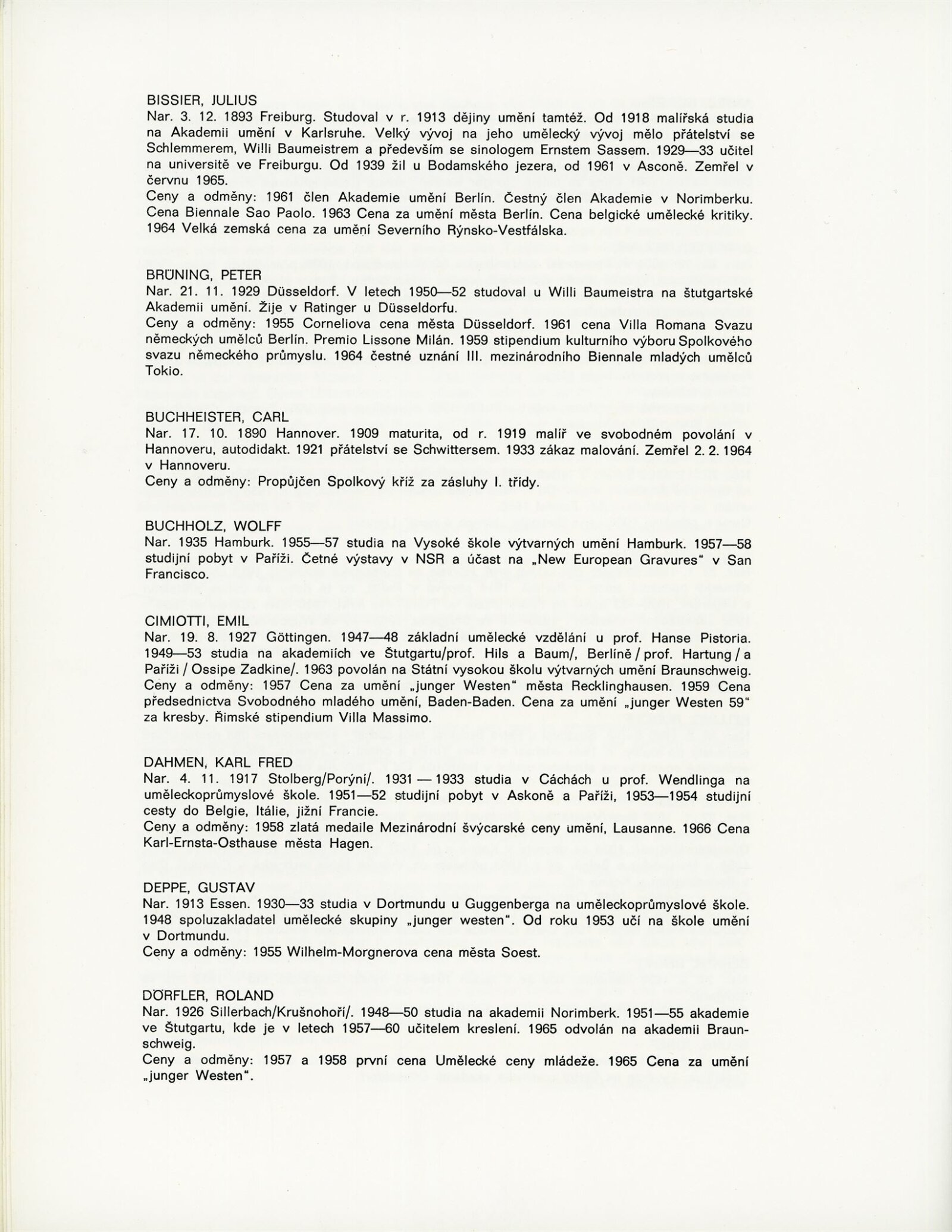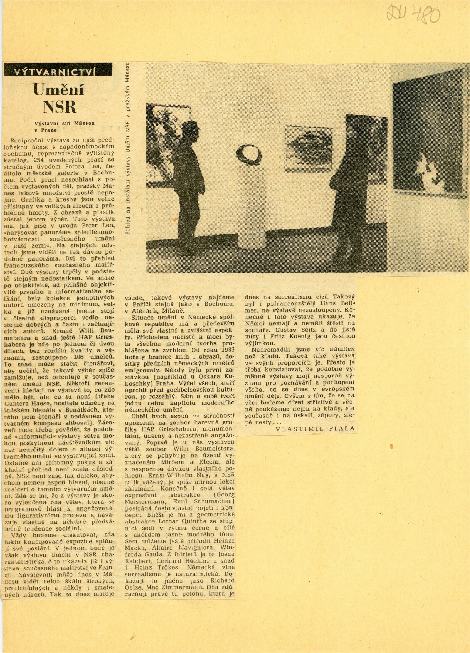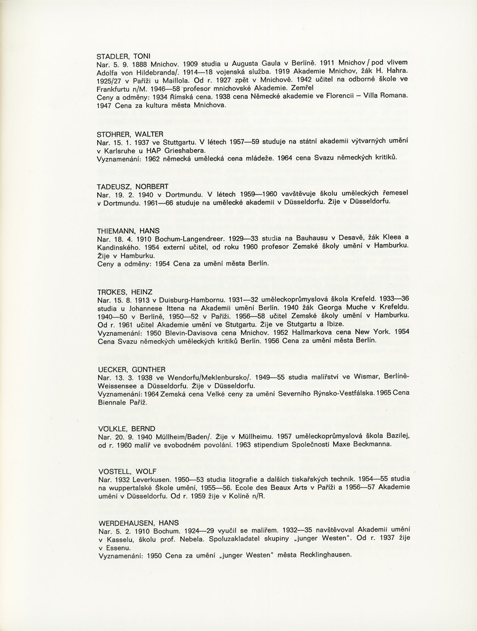 Umění Německé spolkové republiky. Kunst der Bundesrepublik Deutschland: Dům umění, 1. patro, 30. 3. – 30. 4. 1967 / Text: Petr Leo. – Bochum: Städtische Kunstgalerie, 1967. – 42 s., 92 s. obr. příl., DU 480