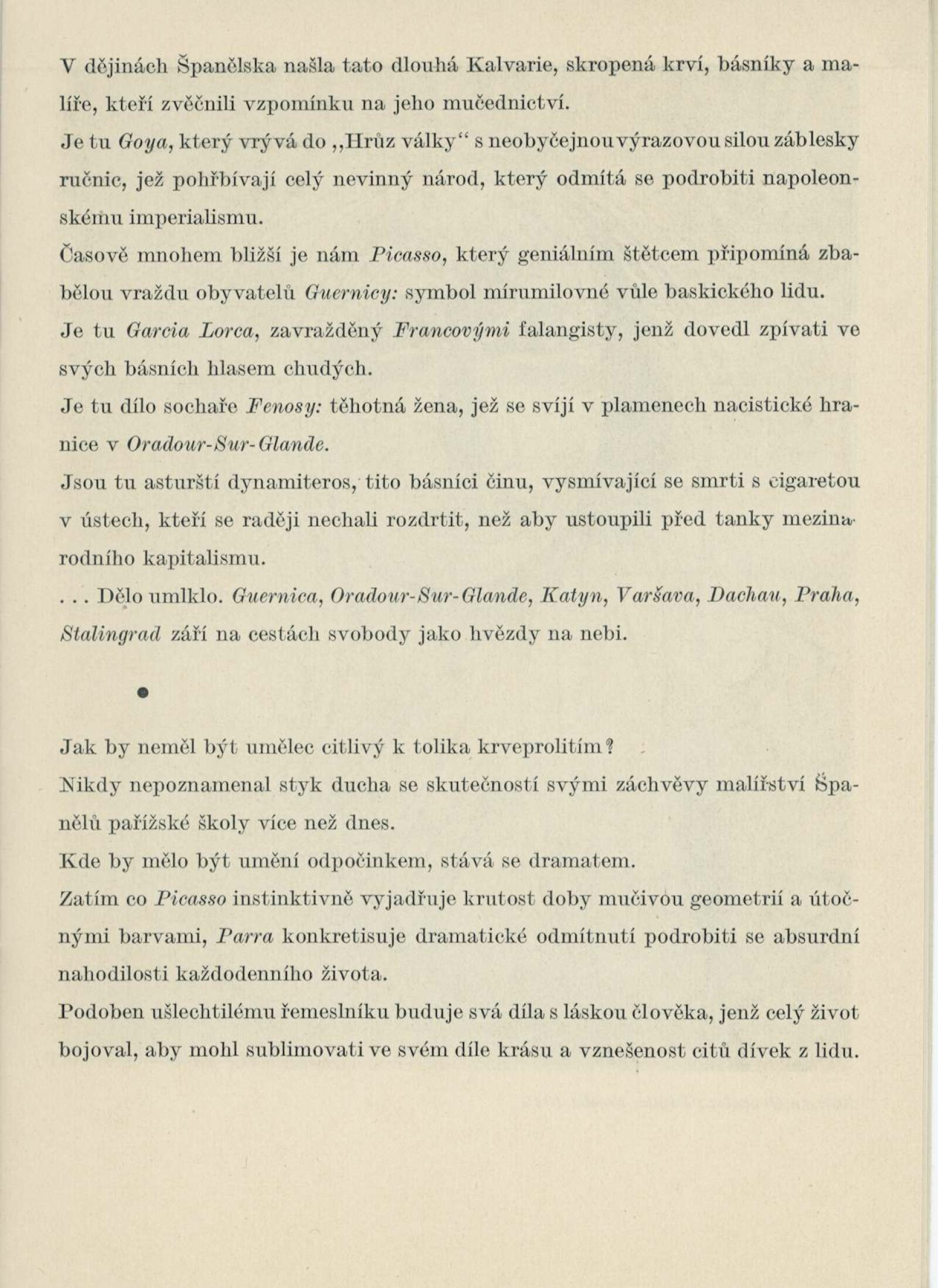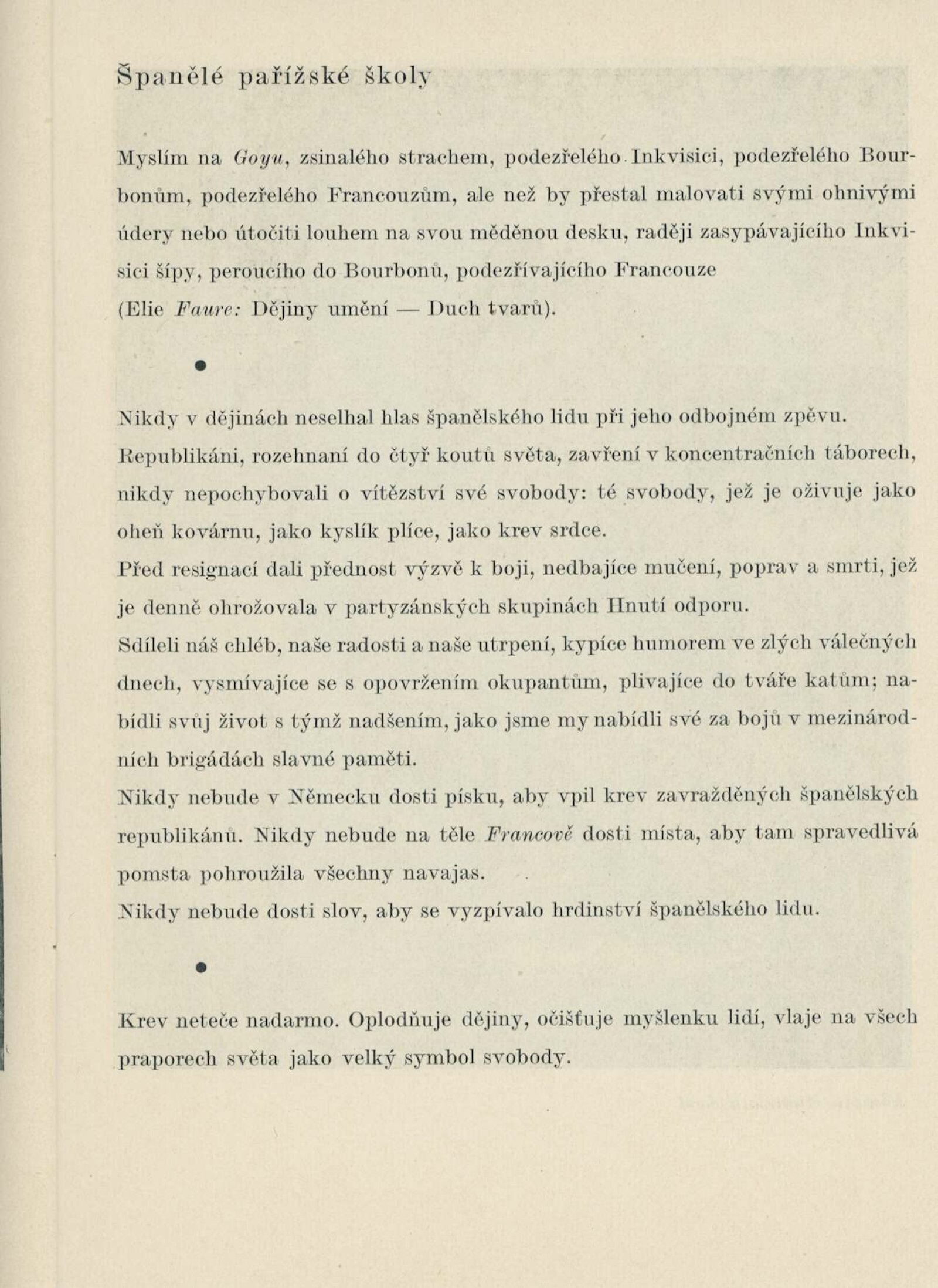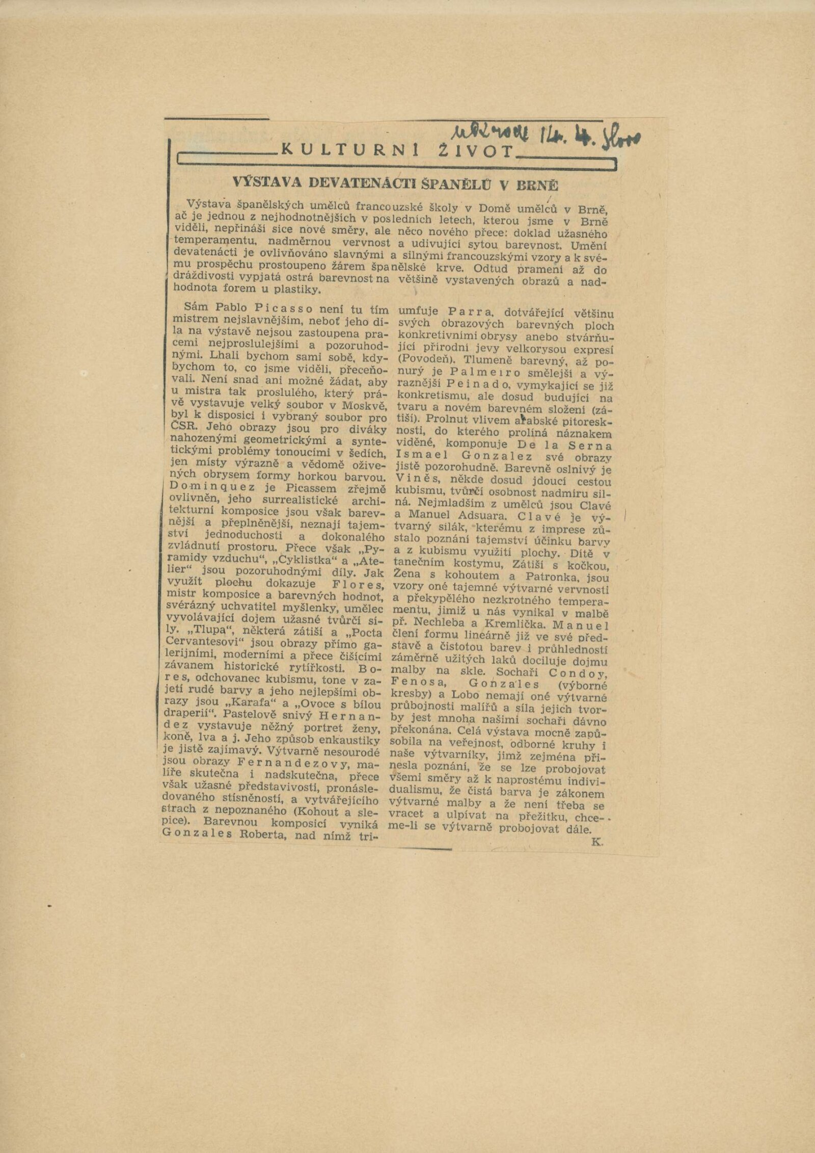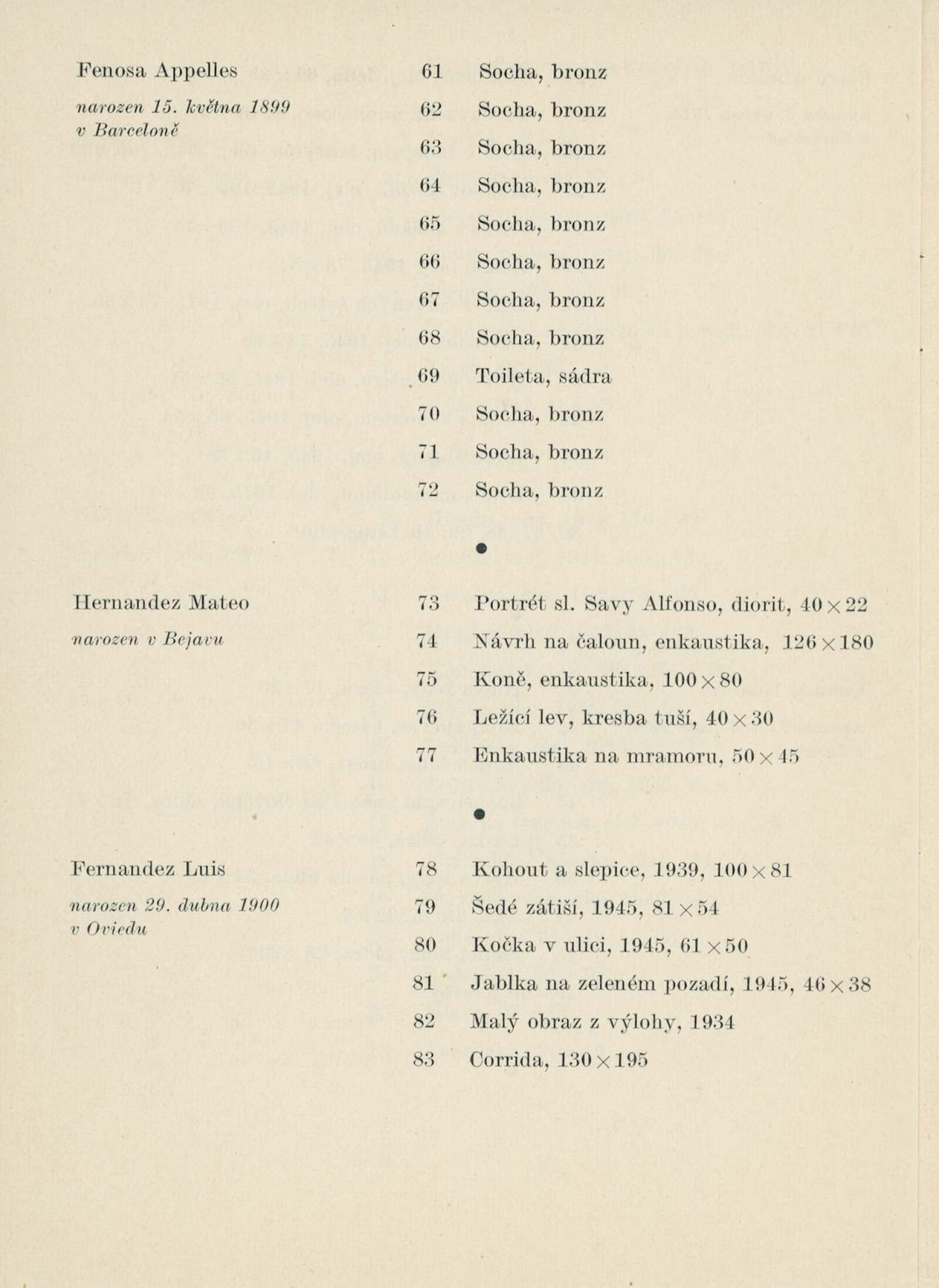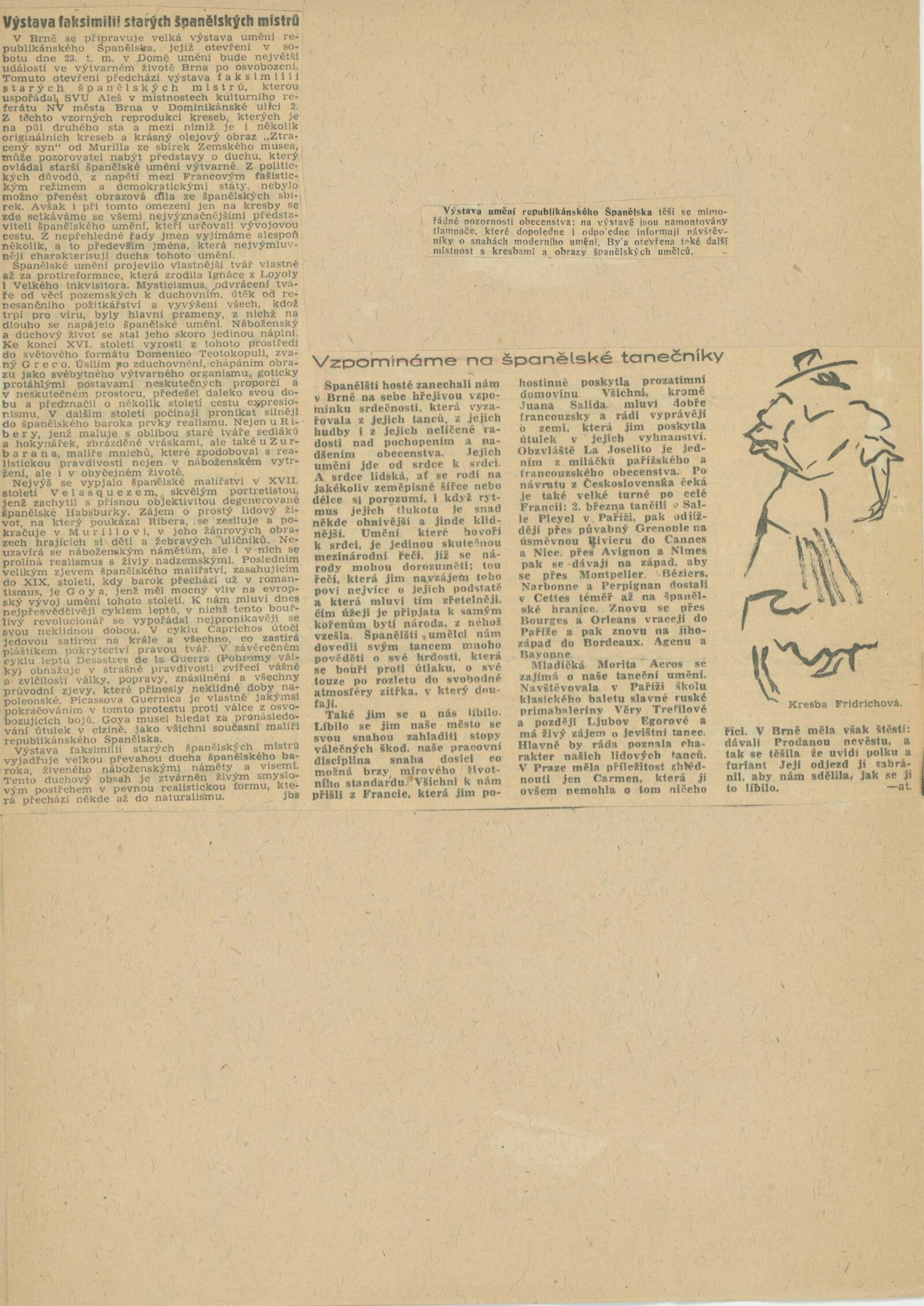 Umění republikánského Španělska. Španělští umělci pařížské školy. Druhá výstava Bloku: Dům umění, 23. 3. – 14. 4. 1946 / Text: Frédéric Delanglade. – Brno: Blok, 1946. – 32 s., obr., básně Paula Éluarda, Tristana Tzary, životní data vystavujících, DU 12. – MG; AMB; MMB