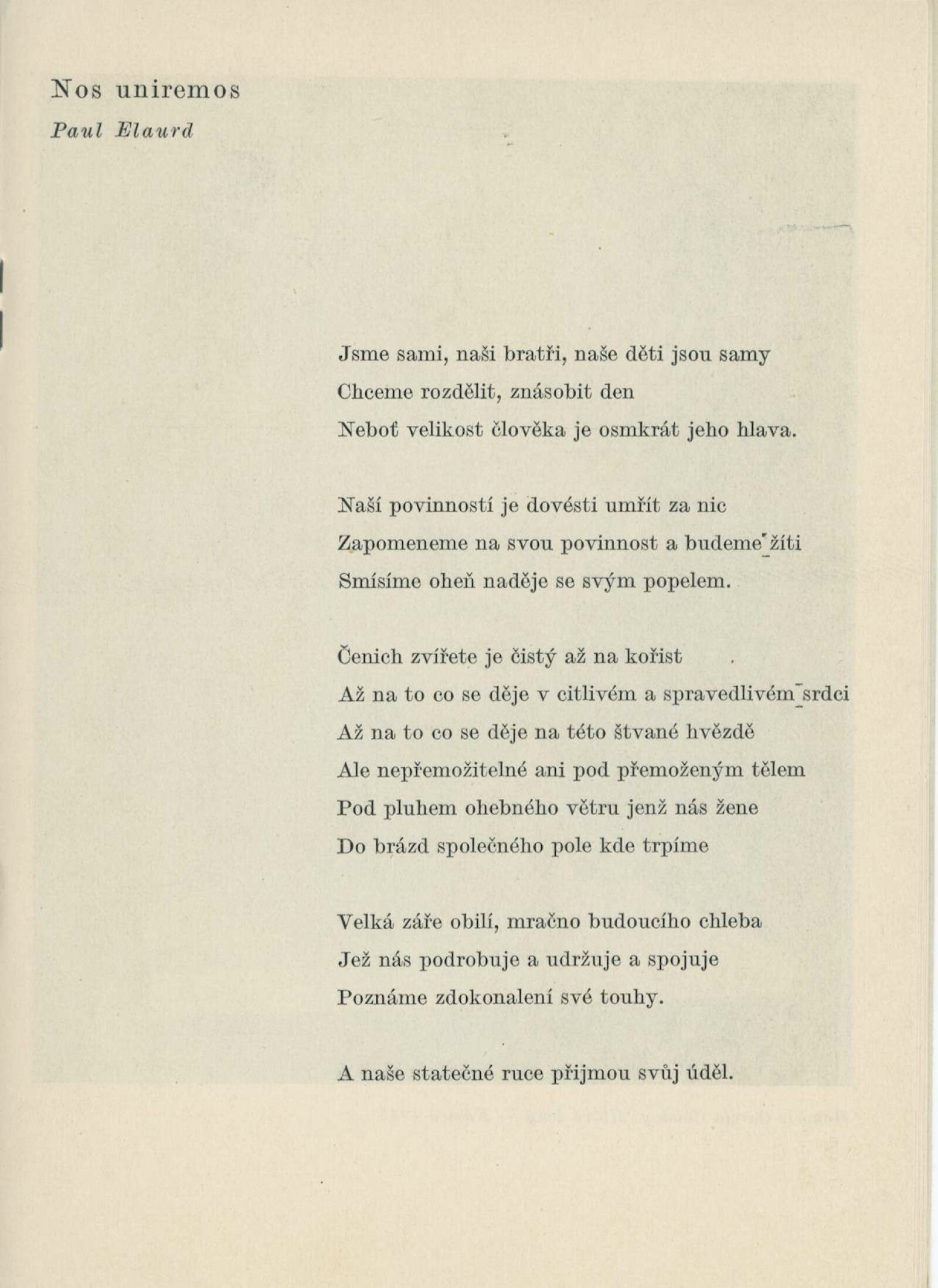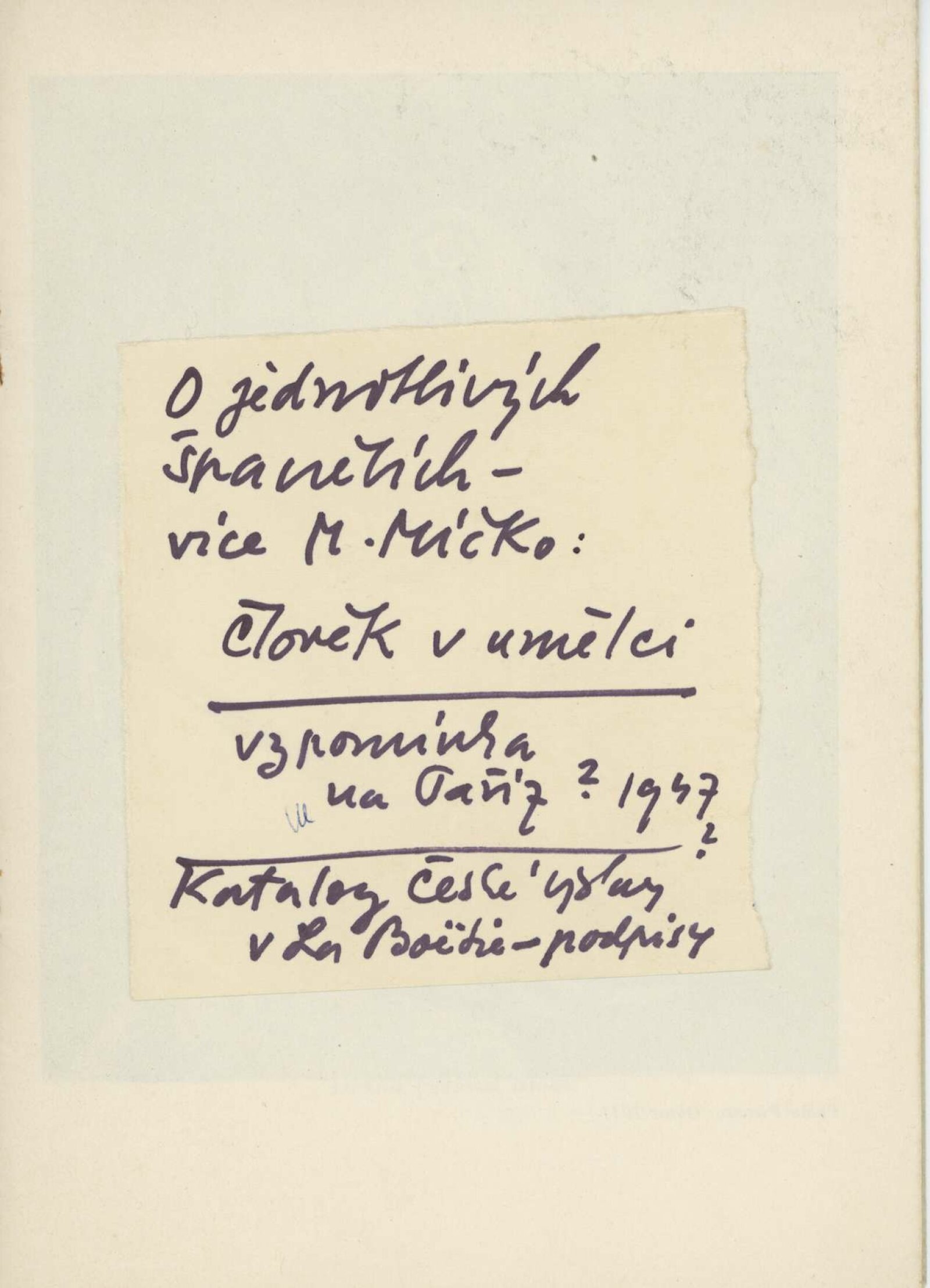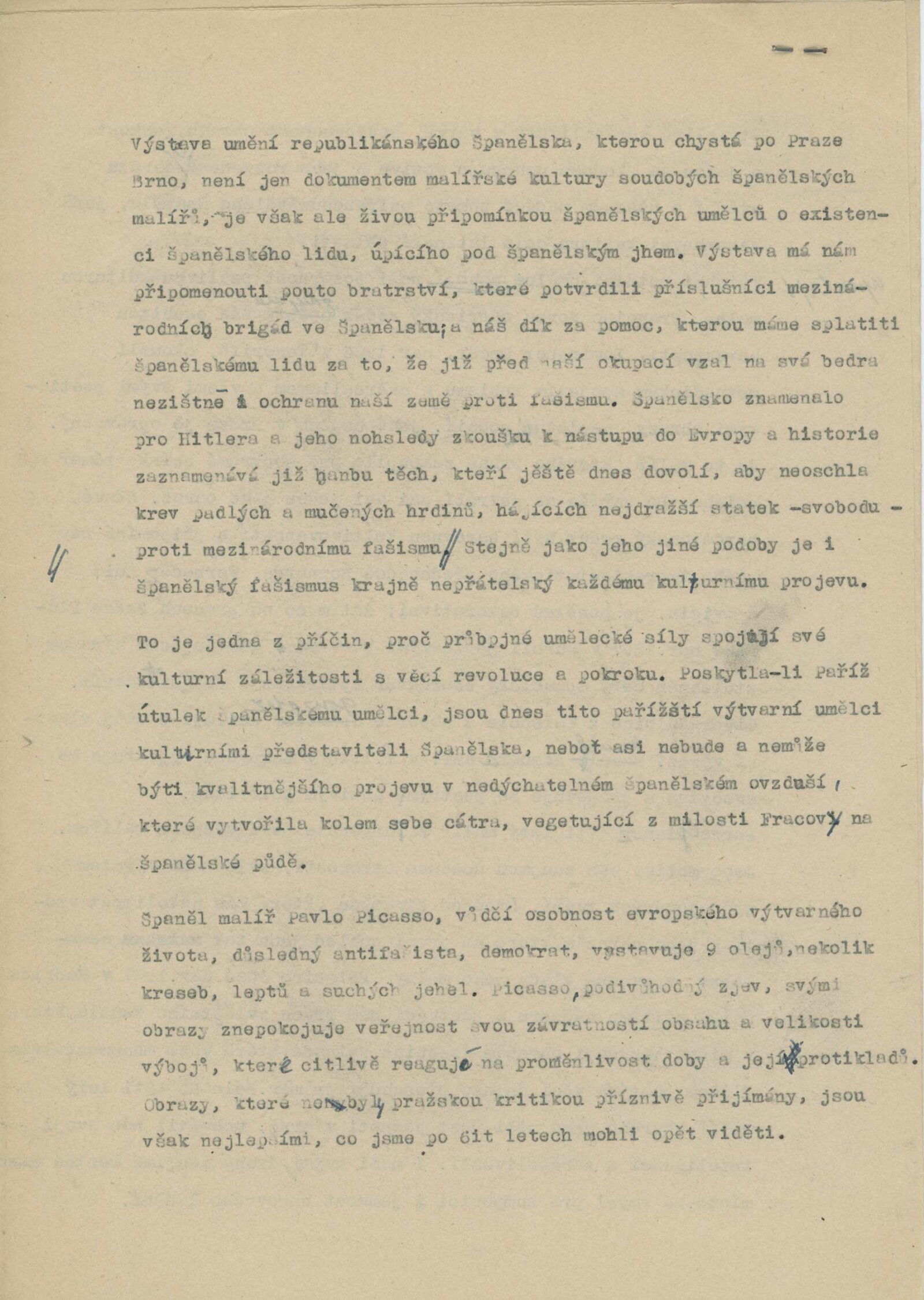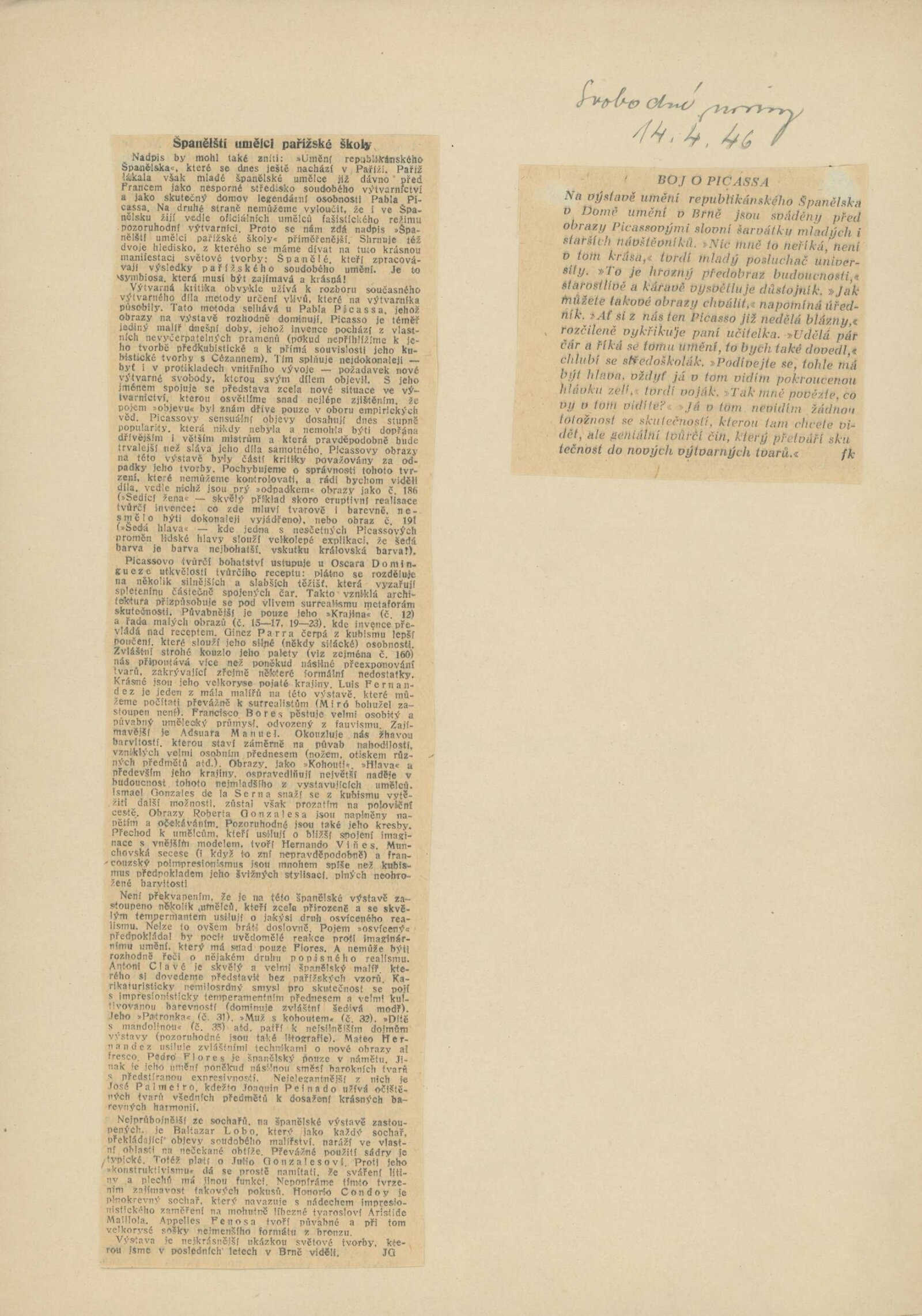Umění republikánského Španělska. Španělští umělci pařížské školy. Druhá výstava Bloku: Dům umění, 23. 3. – 14. 4. 1946 / Text: Frédéric Delanglade. – Brno: Blok, 1946. – 32 s., obr., básně Paula Éluarda, Tristana Tzary, životní data vystavujících, DU 12. – MG; AMB; MMB