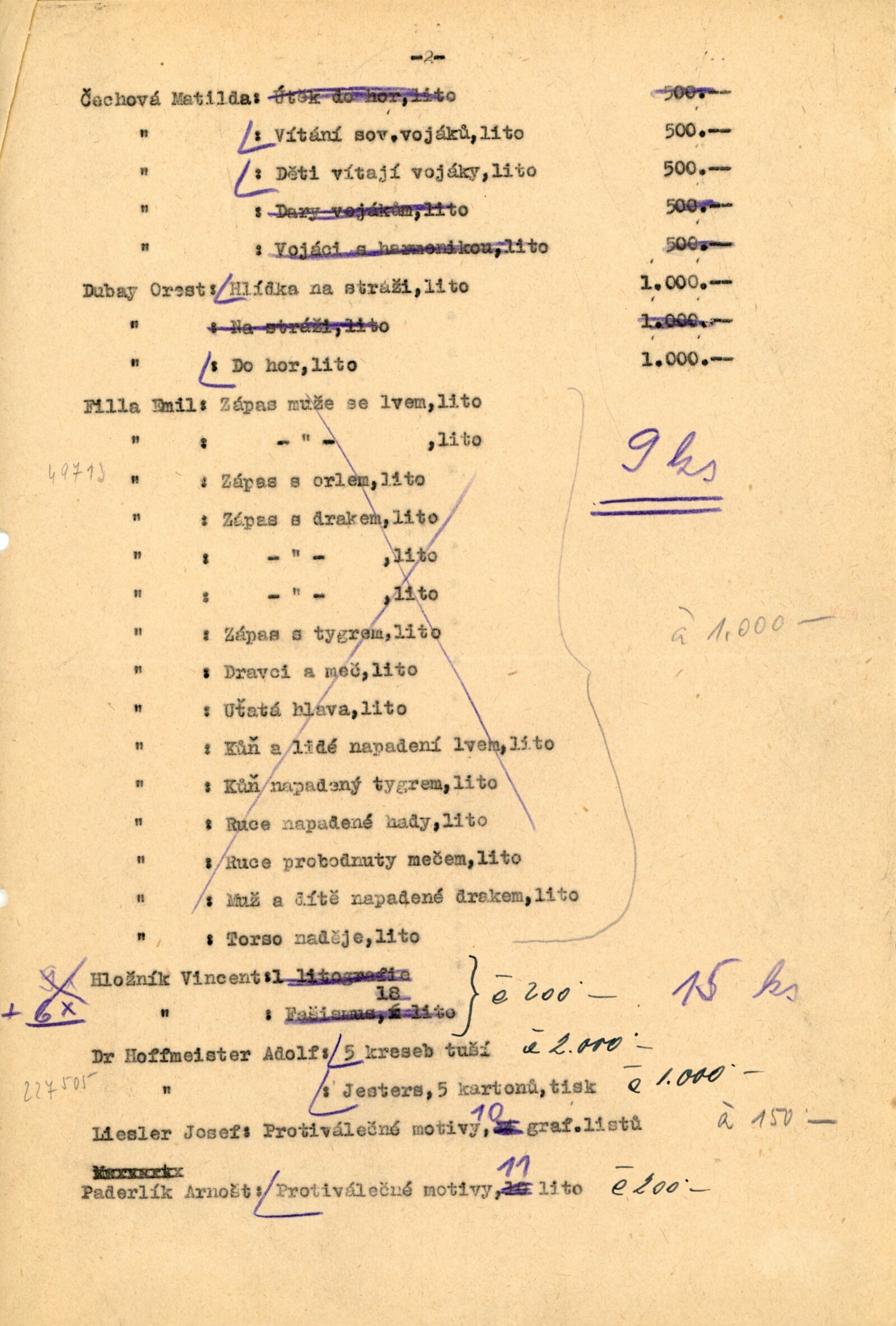 Josef Baláž, Jan Bauch, Ctibor Belan, František Bídlo, Josef Brož, Josef Čapek, Matilda Čechová, František David, Orest Dubay, Karel Dvořák, Emil Filla, Vincent Hložík, Adolf Hoffmeister, František Jiroudek, Antonín Kalvoda, Jozef Kostka, Josef Liesler, Cyprián Majerník, Vincenc Makovský, Otakar Mrkvička, Arnošt Panderlík, Antonín Pelc, Karel Pokorný, Rudolf Pribiš, Vladimír Sychra, Ruda Šváb, Vojtěch Tittelbach, Josef Wagner, Otakar Zemina